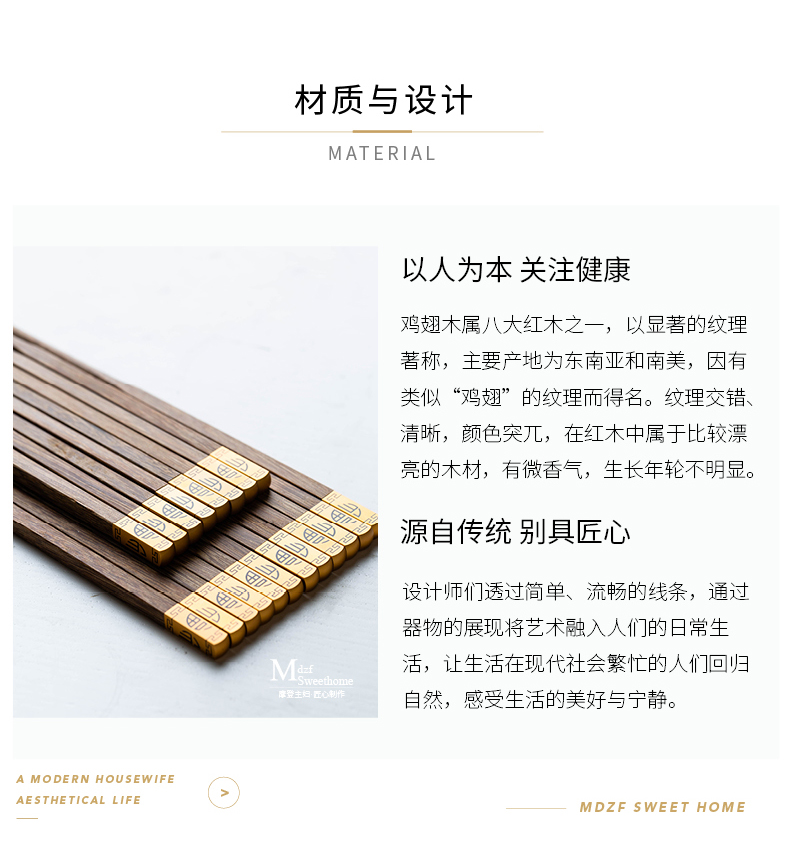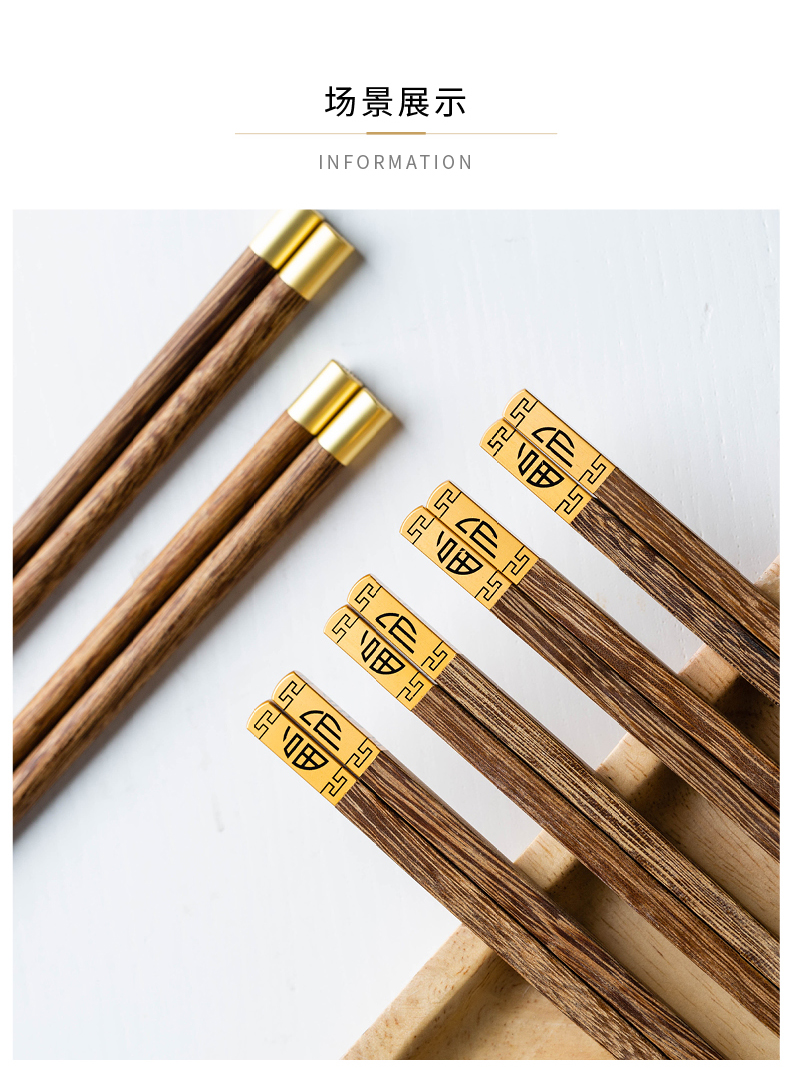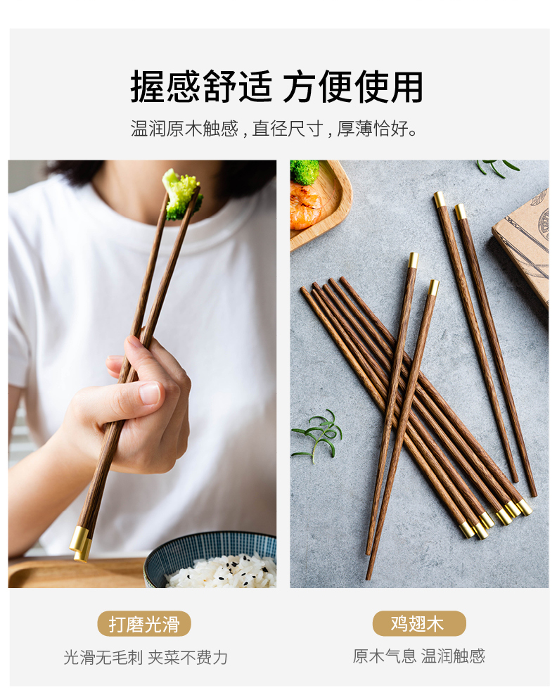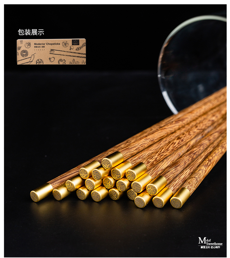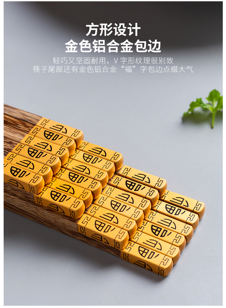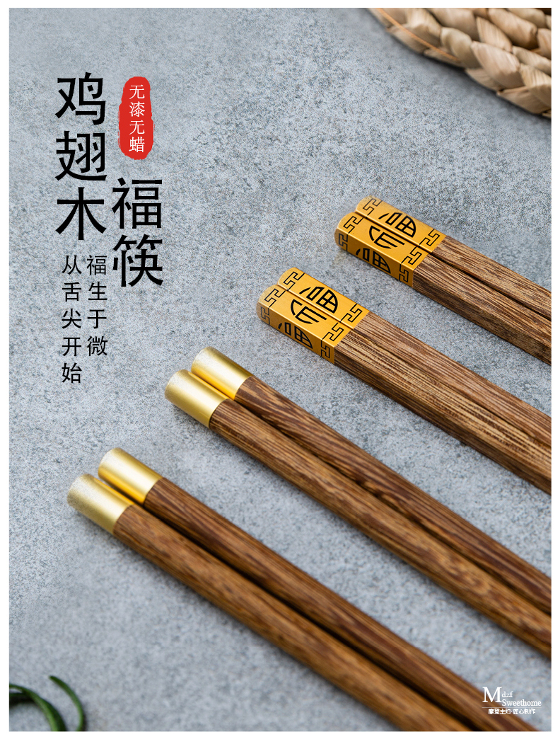 摩登主妇中式家用防滑耐高温鸡翅木筷子10双套装福字实木公筷