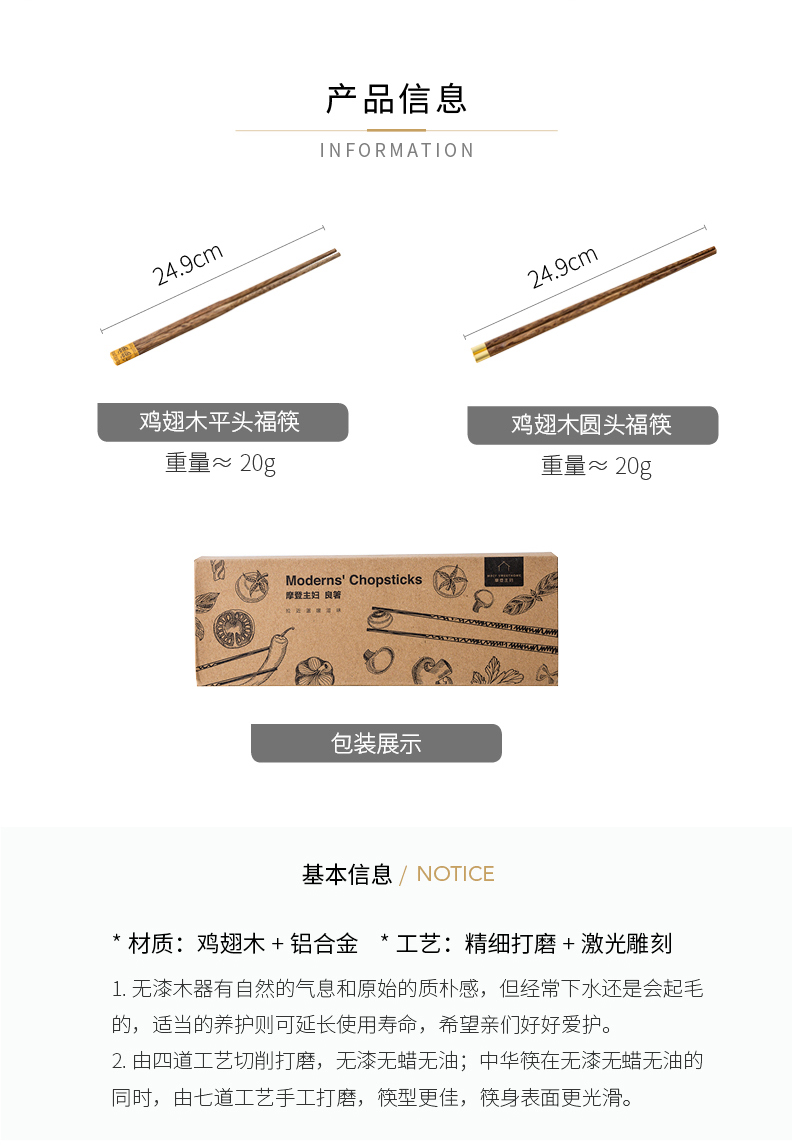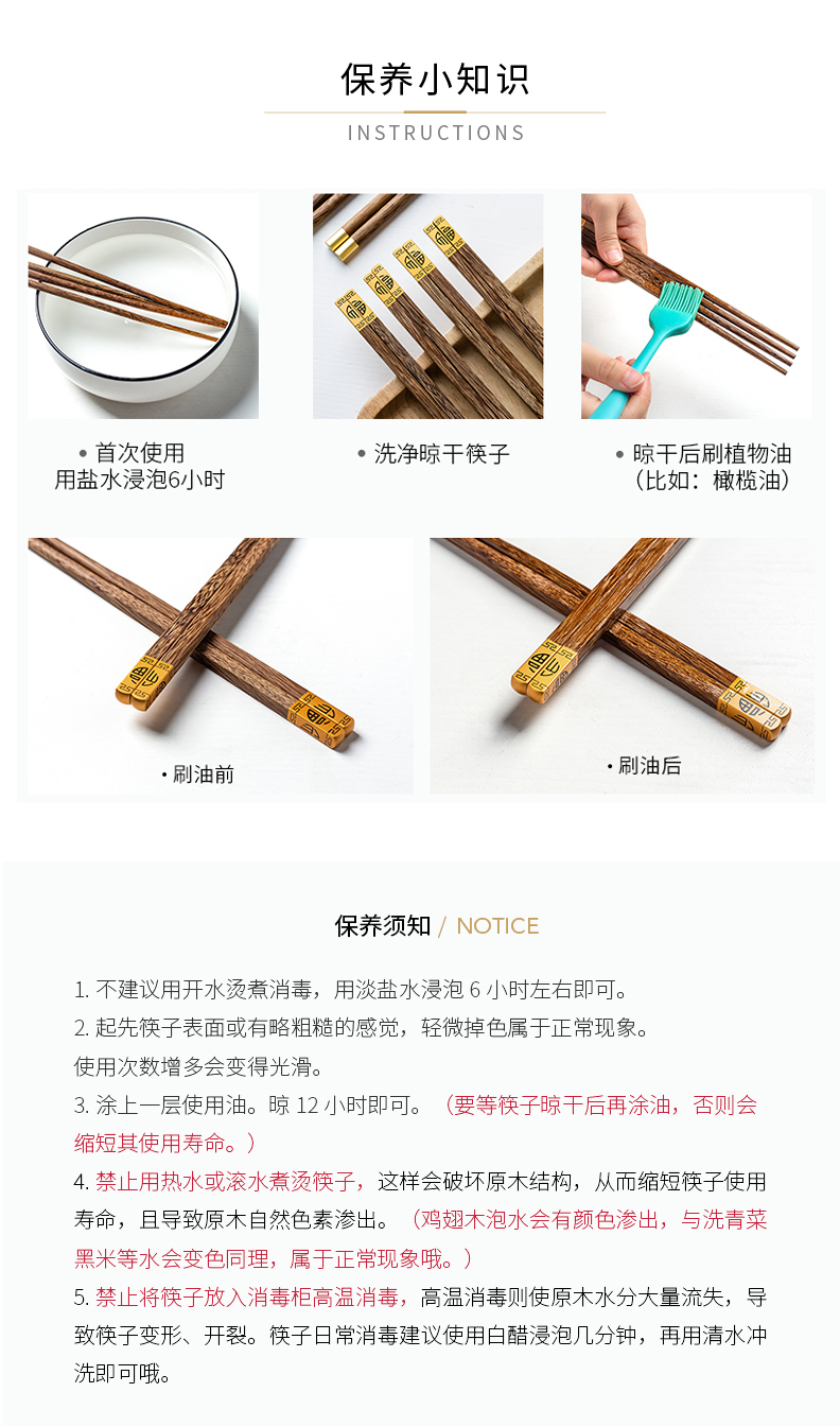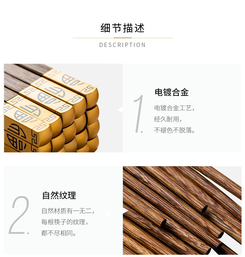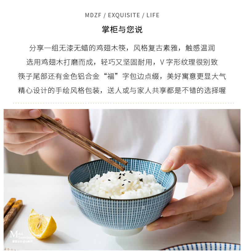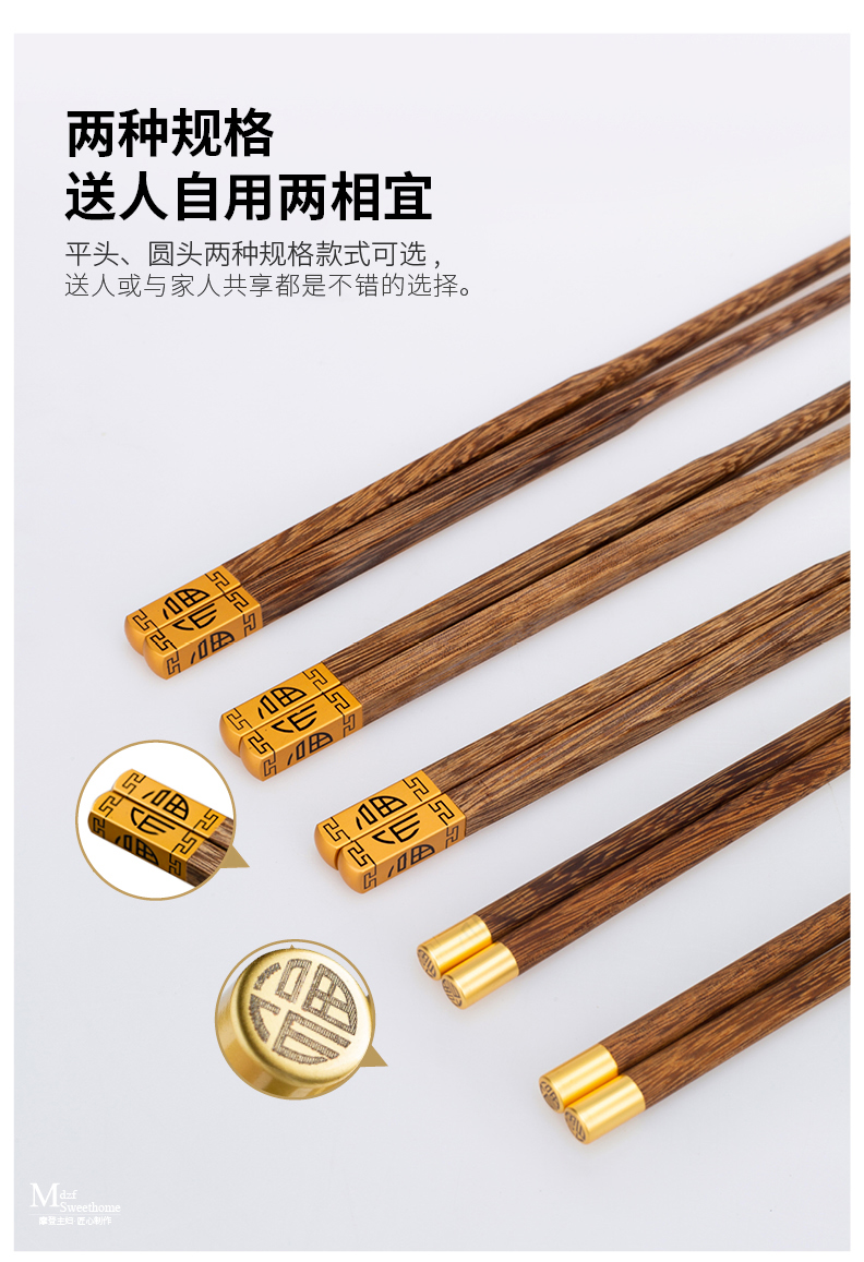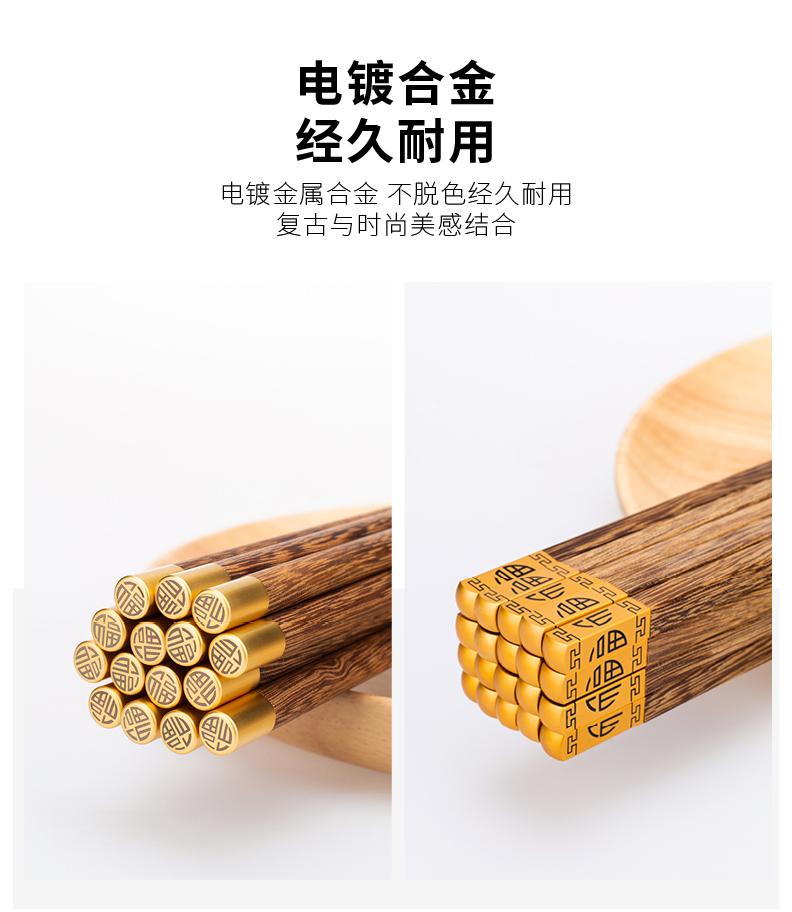 摩登主妇中式家用防滑耐高温鸡翅木筷子10双套装福字实木公筷