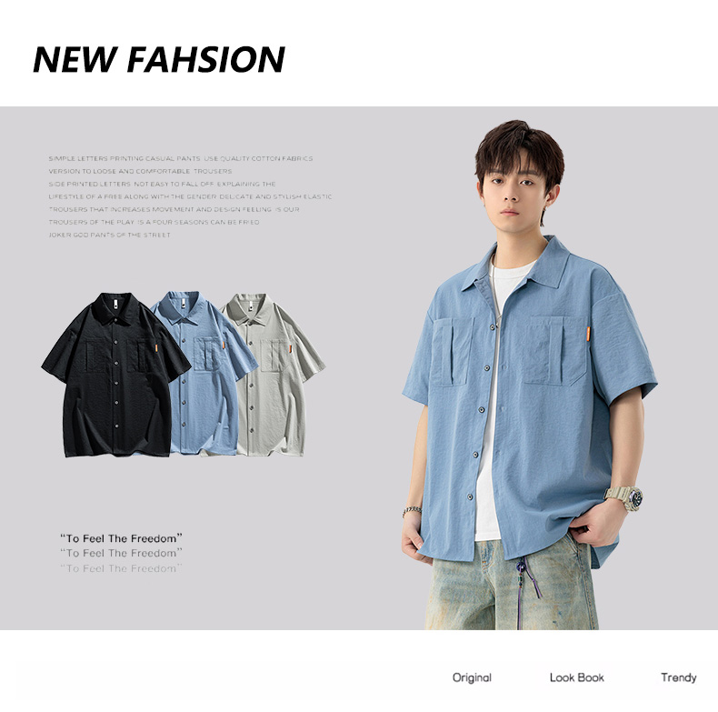 【DSL】大依优型大码翻领短袖衬衫夏季加肥加大肥佬休闲宽松透气弹力男装上衣潮款 商品图0