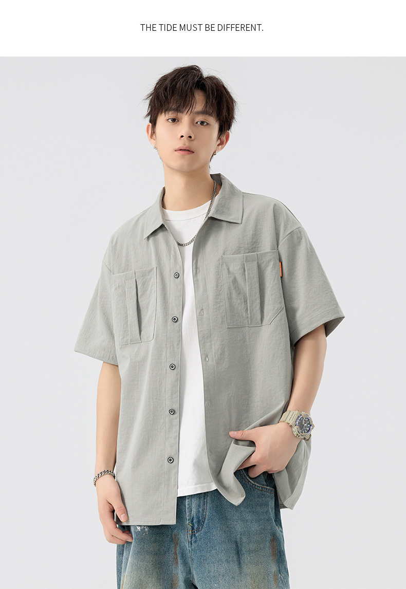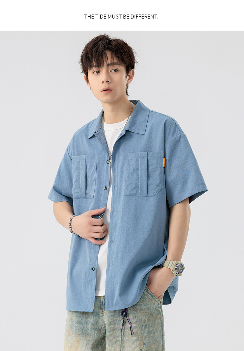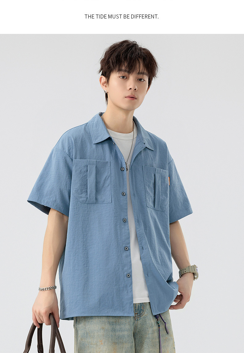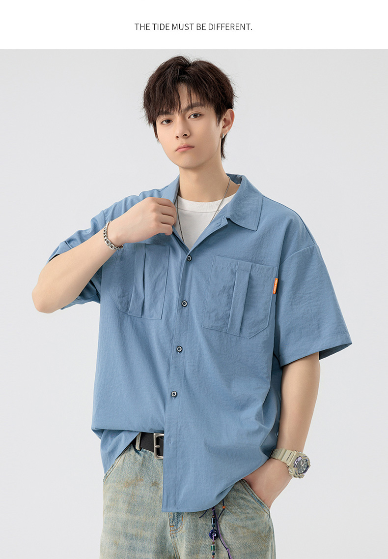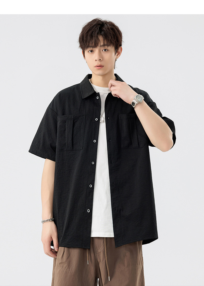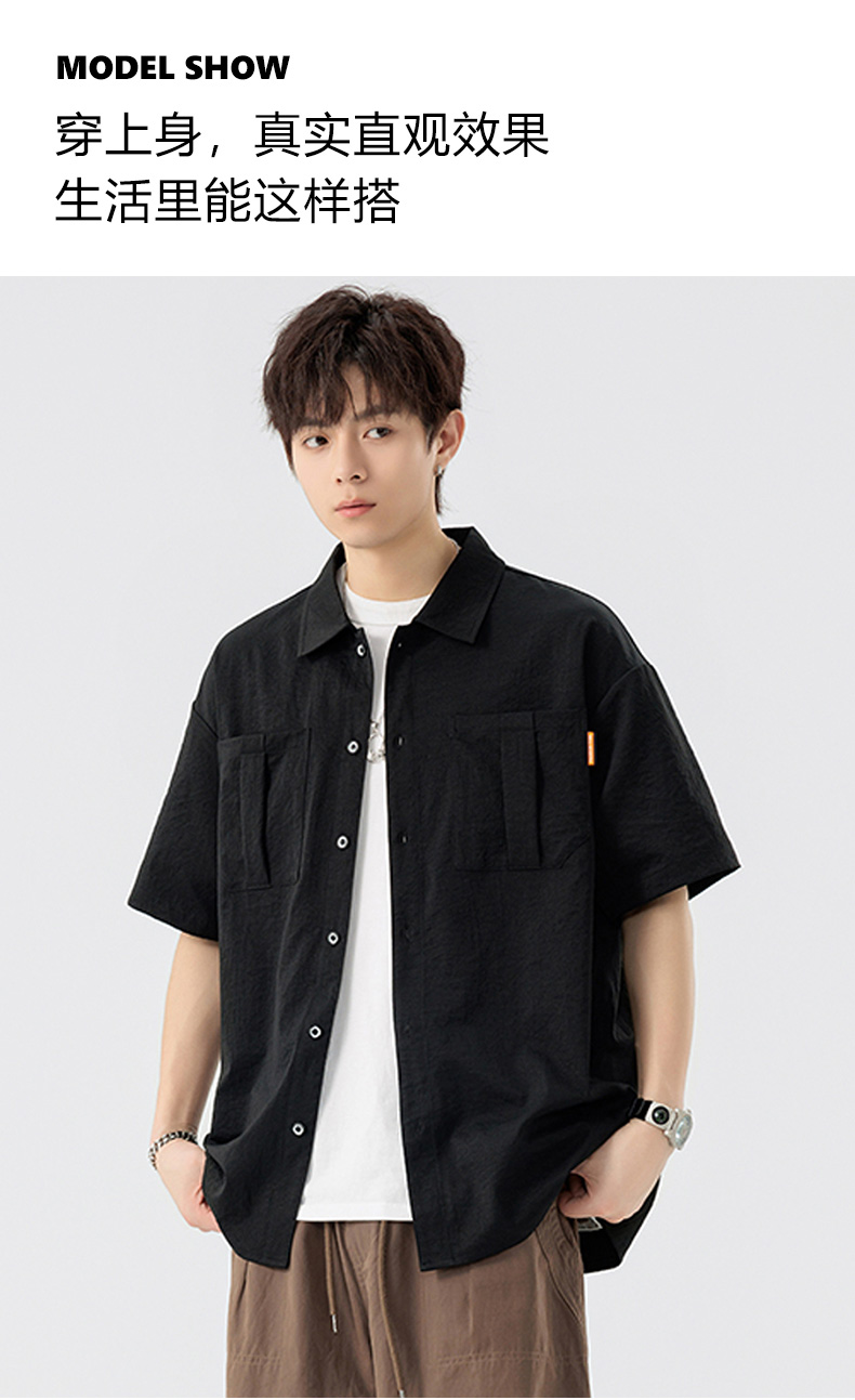 【DSL】大依优型大码翻领短袖衬衫夏季加肥加大肥佬休闲宽松透气弹力男装上衣潮款 商品图9