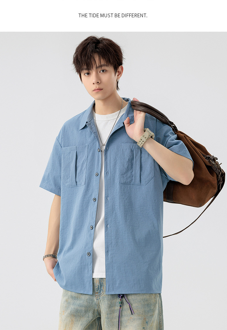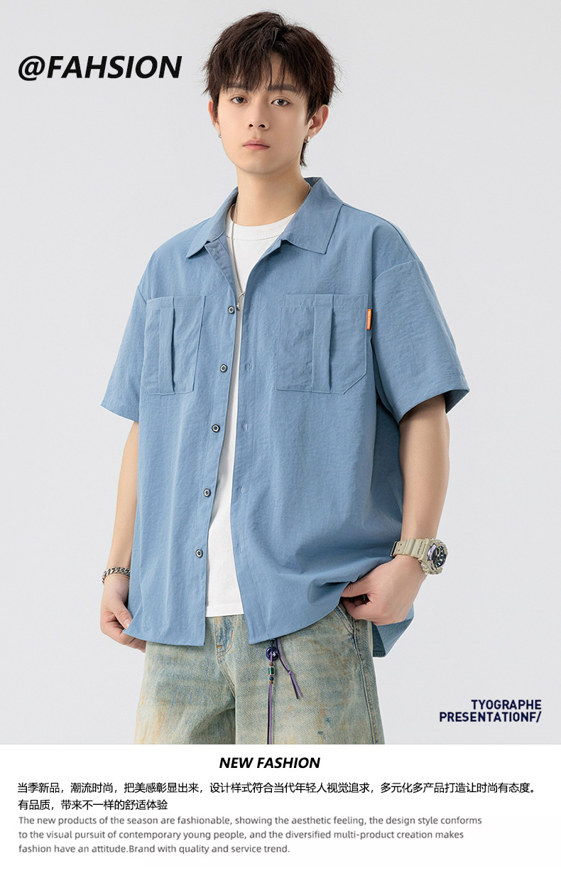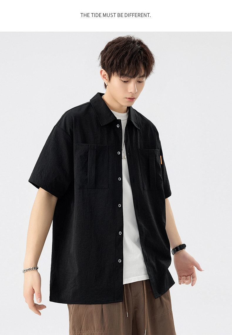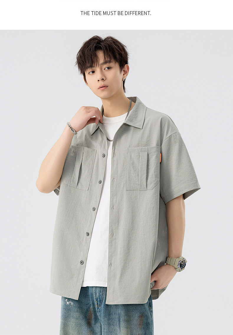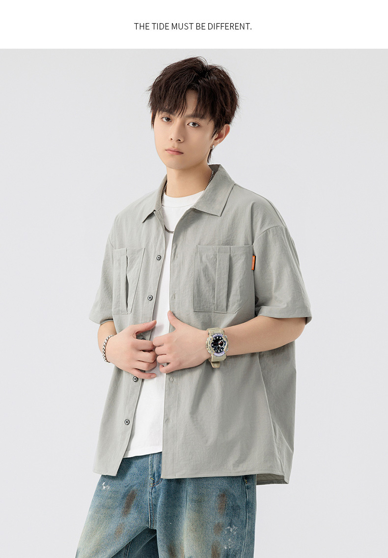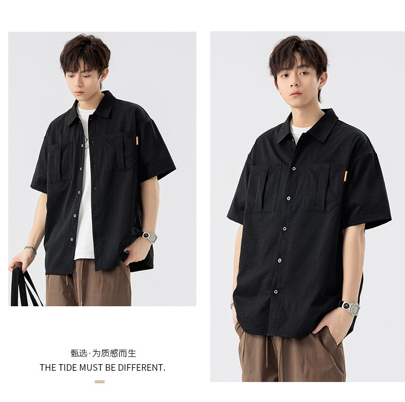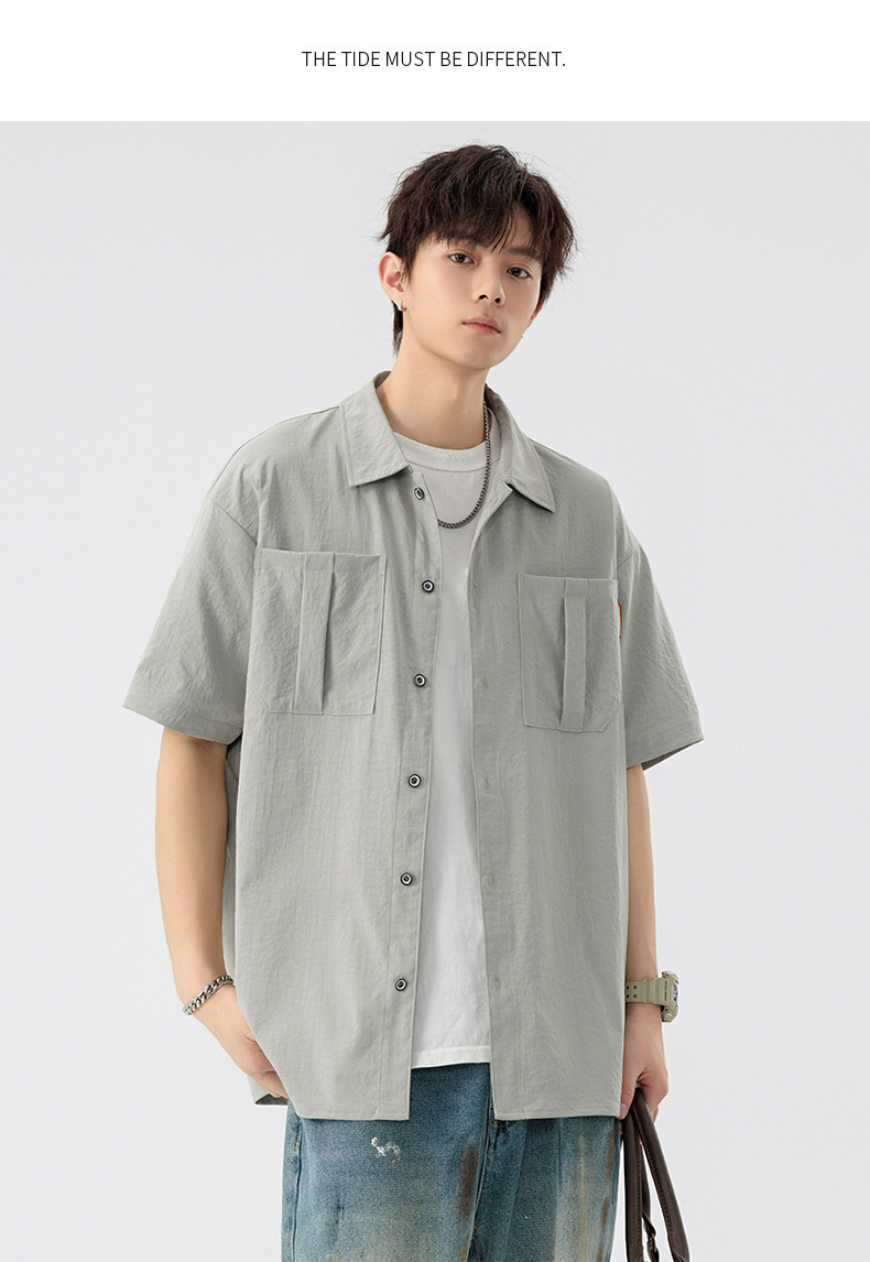 【DSL】大依优型大码翻领短袖衬衫夏季加肥加大肥佬休闲宽松透气弹力男装上衣潮款 商品图9