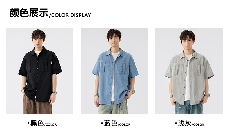 【DSL】大依优型大码翻领短袖衬衫夏季加肥加大肥佬休闲宽松透气弹力男装上衣潮款 商品图4