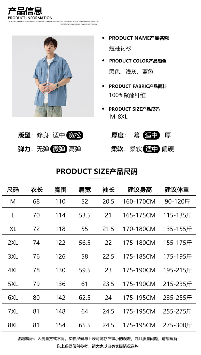 【DSL】大依优型大码翻领短袖衬衫夏季加肥加大肥佬休闲宽松透气弹力男装上衣潮款 商品图8