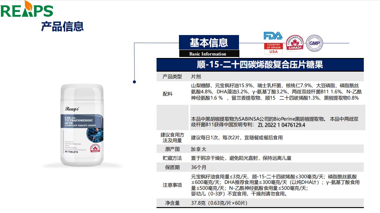 REAPS神经酸顺15-24碳烯酸复合压片糖果