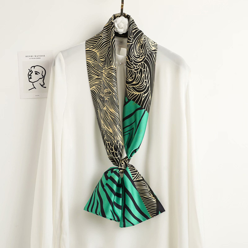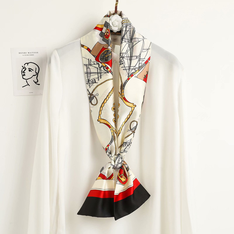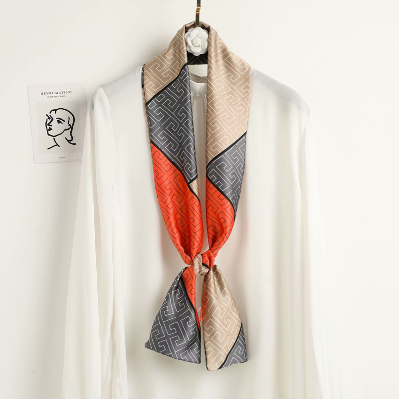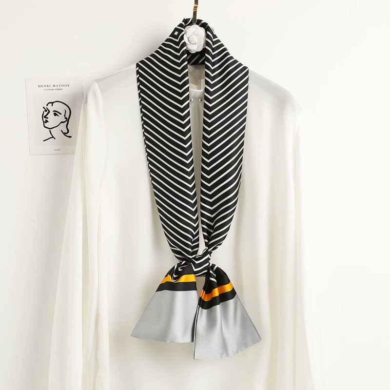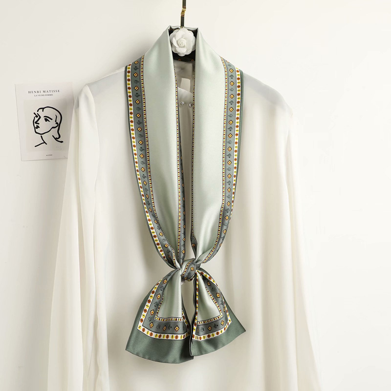 新款长条丝巾韩版佰搭职业装饰小领巾印花绸丝缎围巾