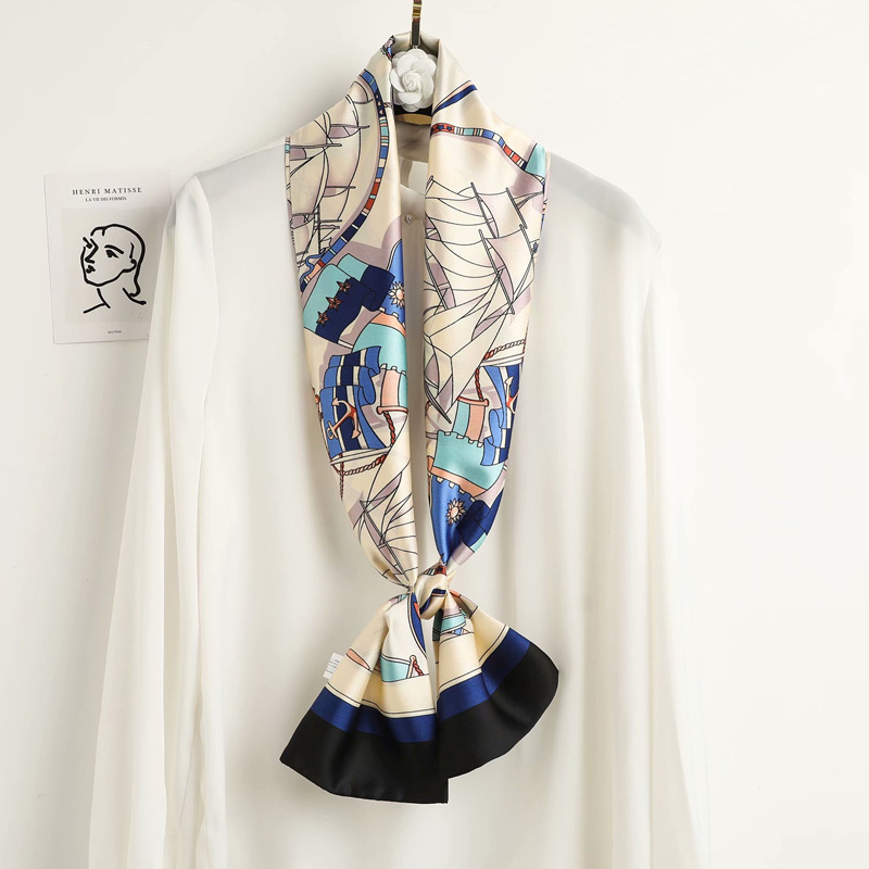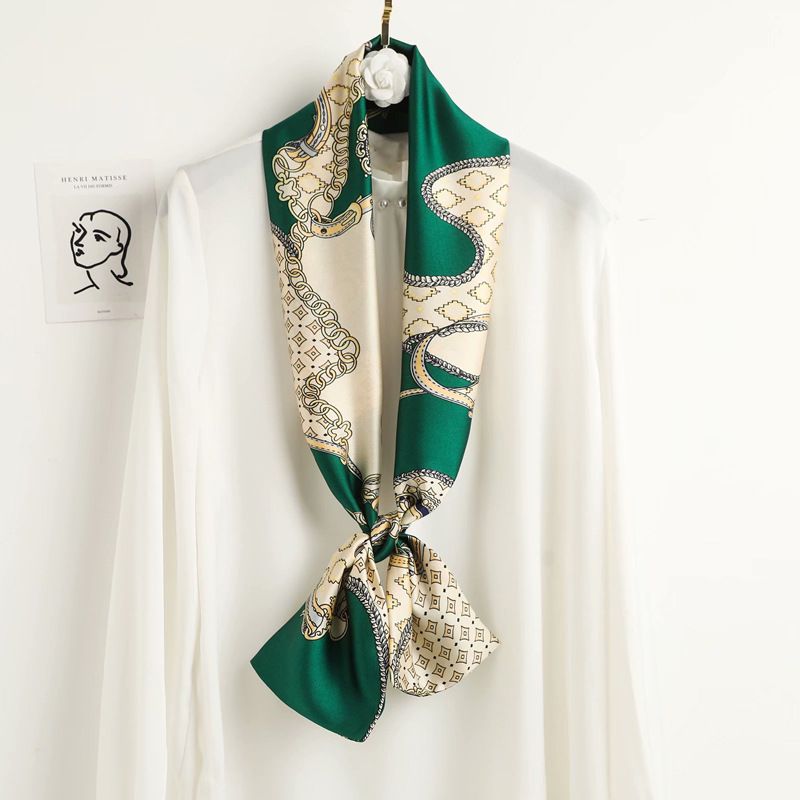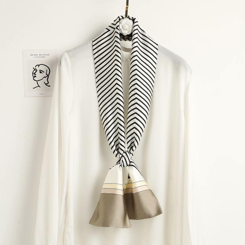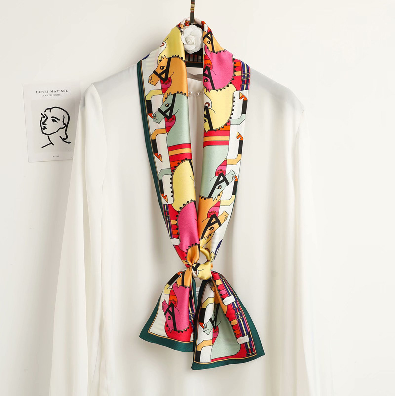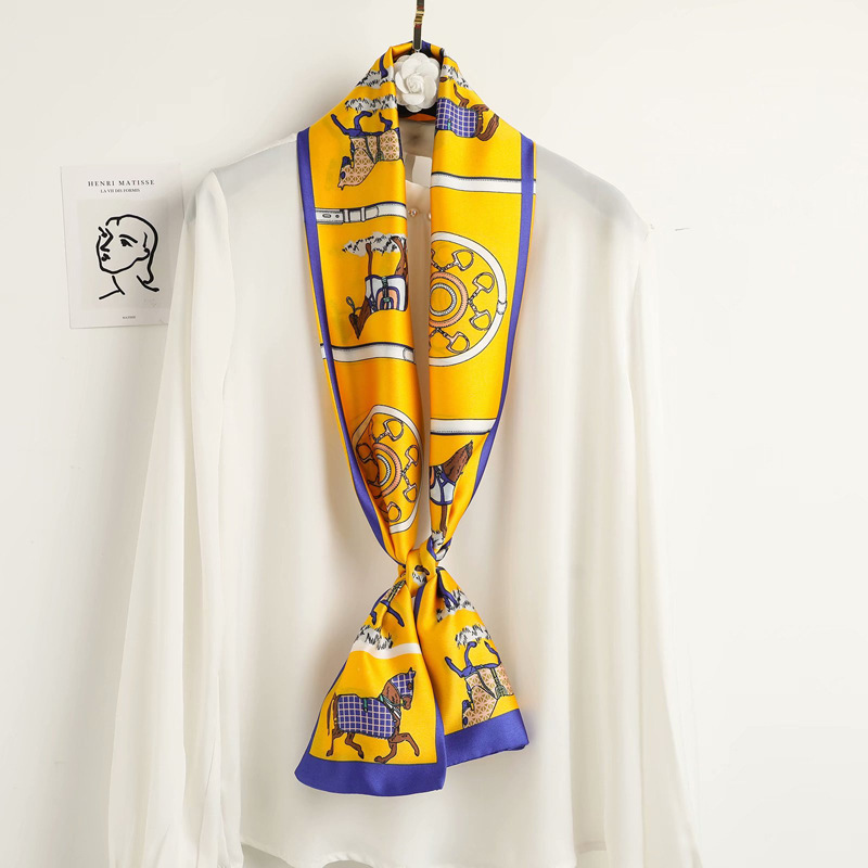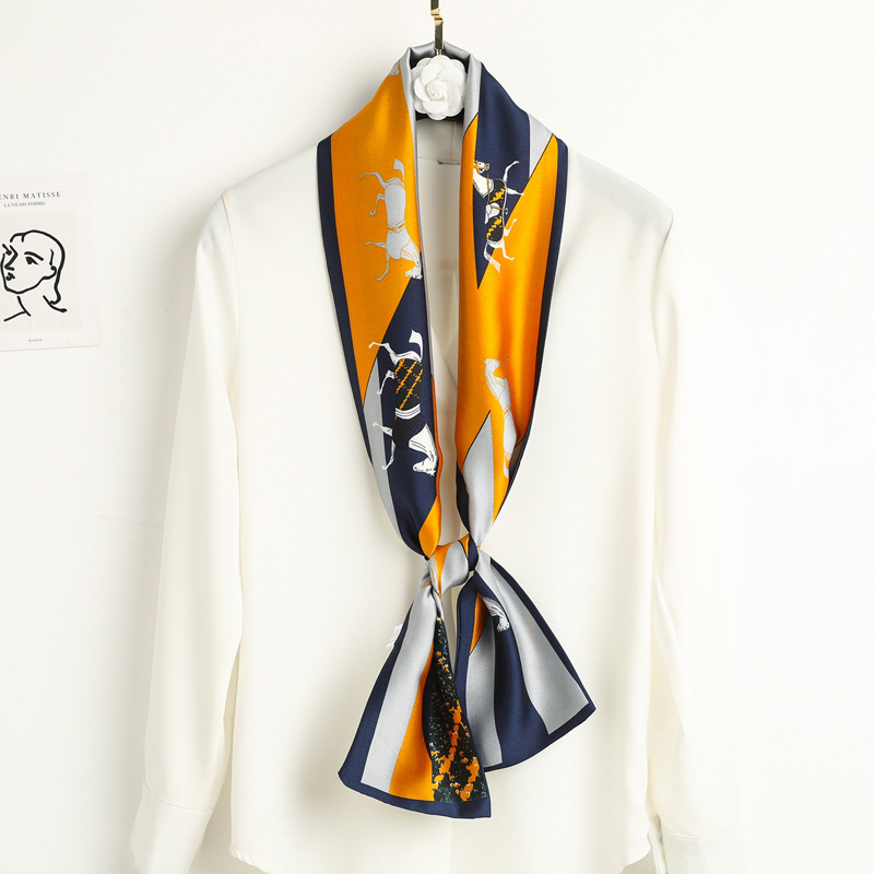 新款长条丝巾韩版佰搭职业装饰小领巾印花绸丝缎围巾
