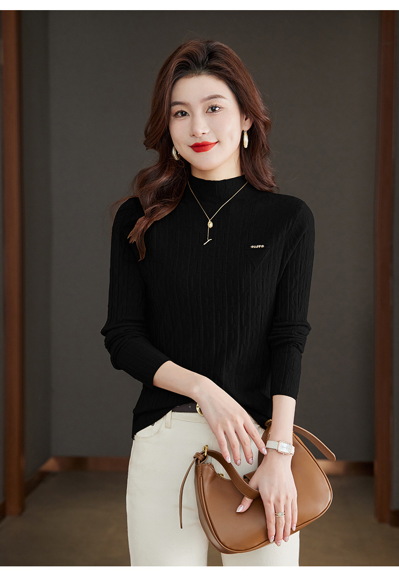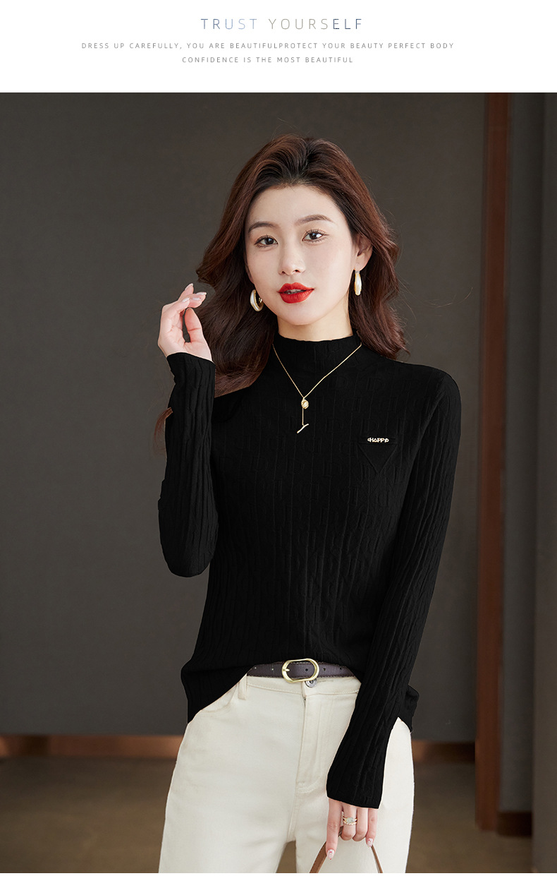 CC-QL-W8375半高领年轻针织打底衫女秋冬慵懒风修身毛衣内搭好看短款上衣