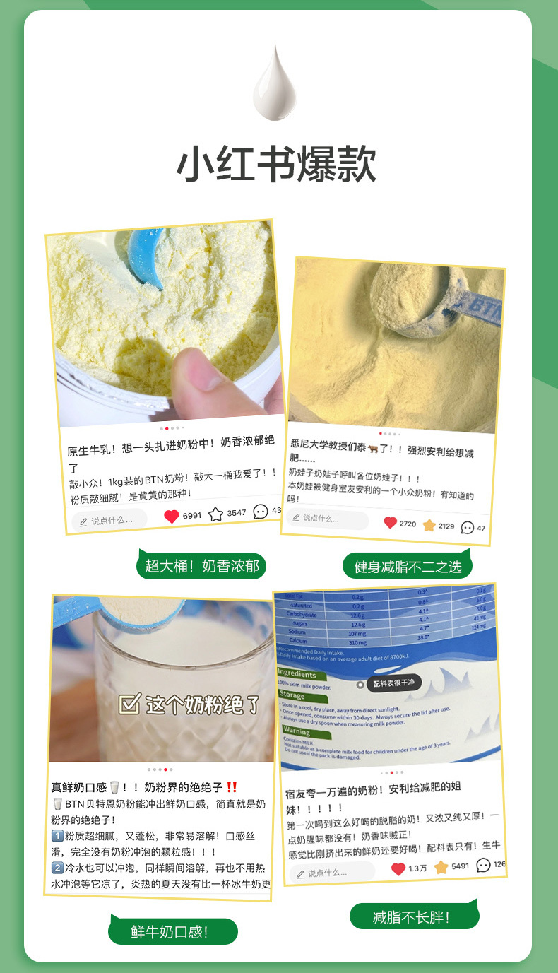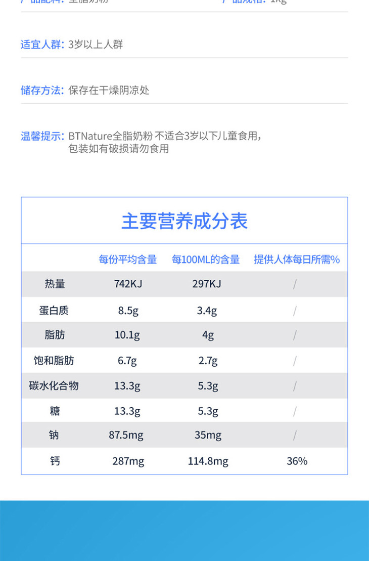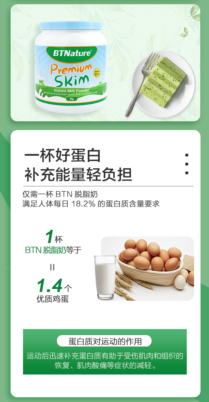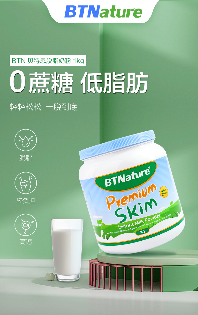 【零食相伴】1kg贝特恩全脂/脱脂奶粉 跨境原装 原生乳蛋白