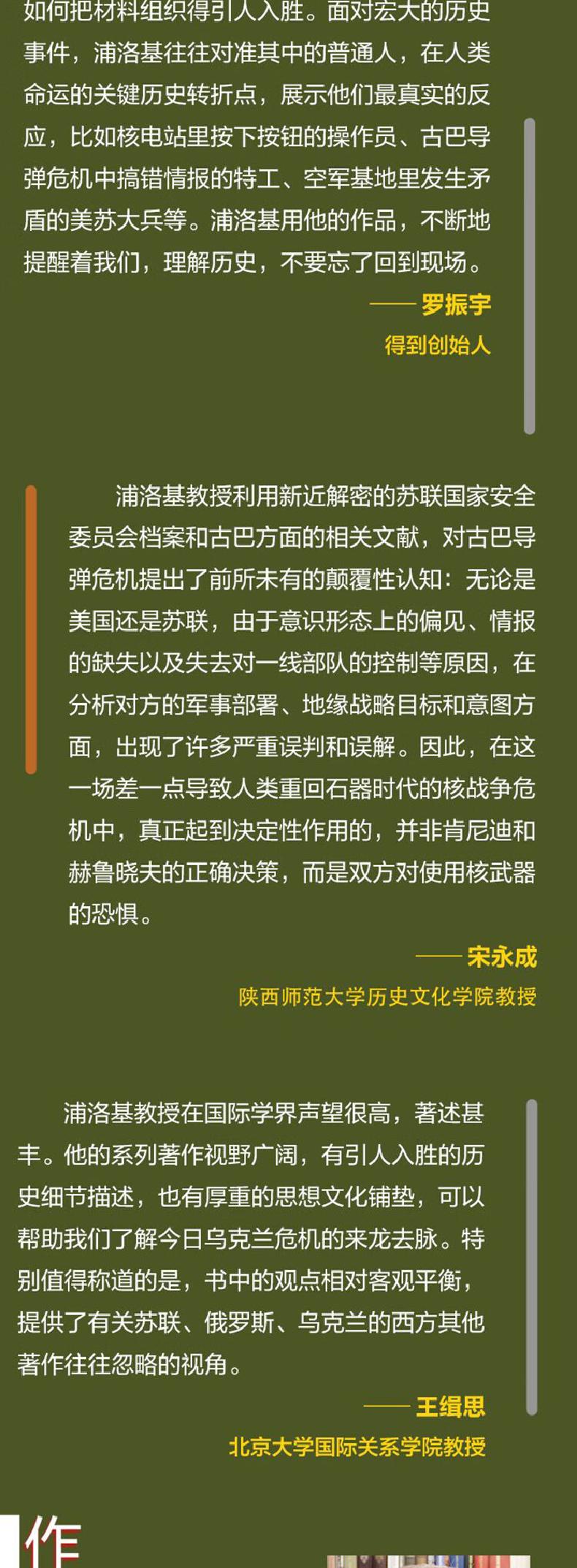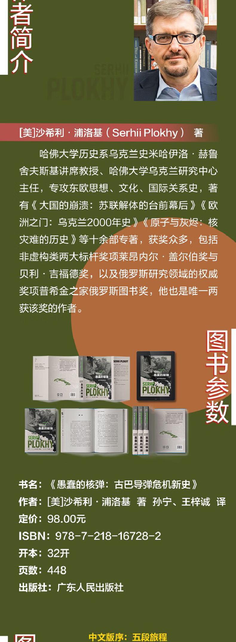 沙希利·浦洛基,著,[美]沙希利·浦洛基(Serhii Plokhy) 哈佛大学历史系乌克兰史米哈伊洛·赫鲁舍夫斯基讲席教授、哈佛大学乌克兰研究中心主任,专攻东欧思想、文化、国际关系史,著有《大国的崩溃:苏联解体的台前幕后》《欧洲之门:乌克兰2000年史》《切尔诺贝利:一部悲剧史》等十余部专著,获奖众多,包括非虚构类两大标杆奖项莱昂内尔·盖尔伯奖与贝利·吉福德奖,以及俄罗斯研究领域的威奖项普希金之家俄罗斯图书奖,他也是一两获该奖的作者。