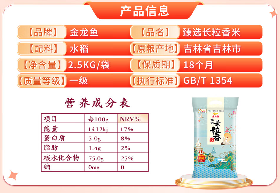金龙鱼 长粒香大米 东北大米 臻选长粒香大米2.5kg