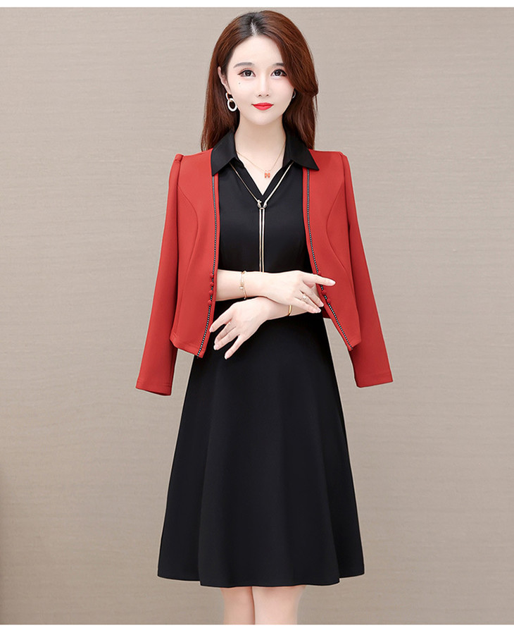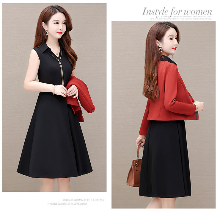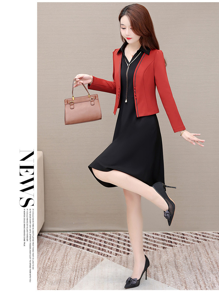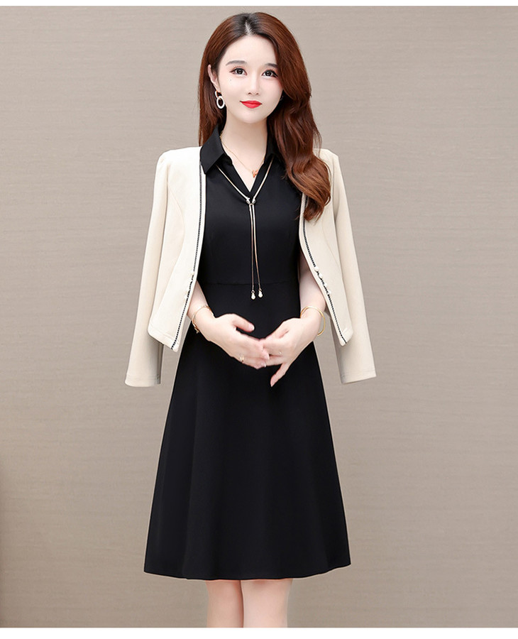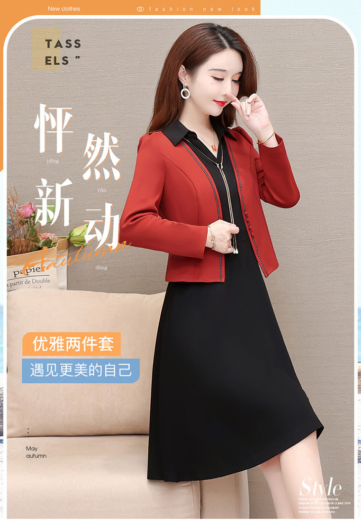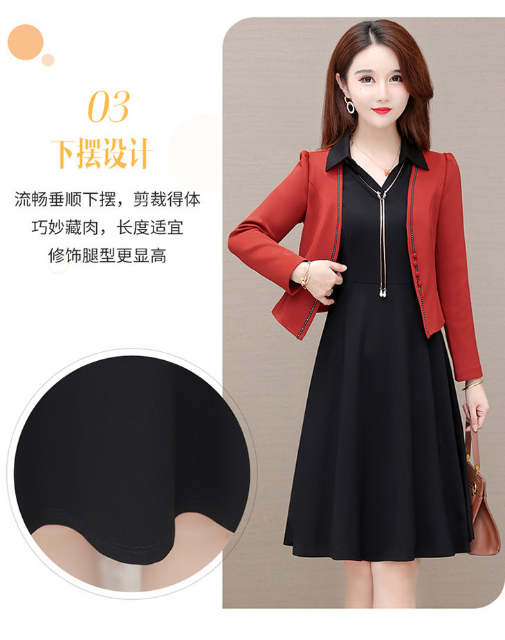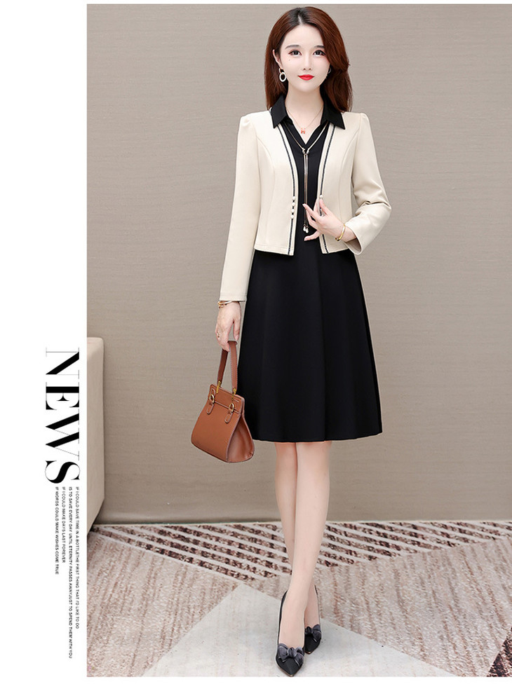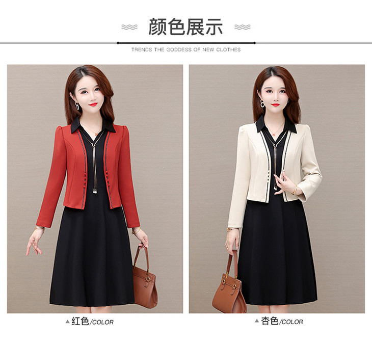 YWE-21831秋新款气质中长款空气层外套裙子两件套