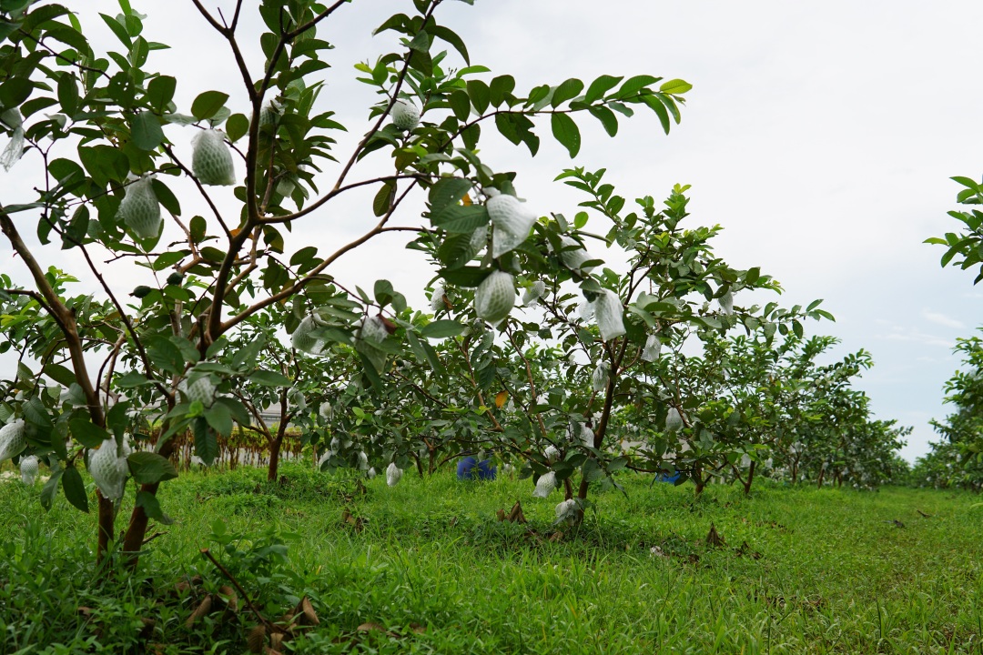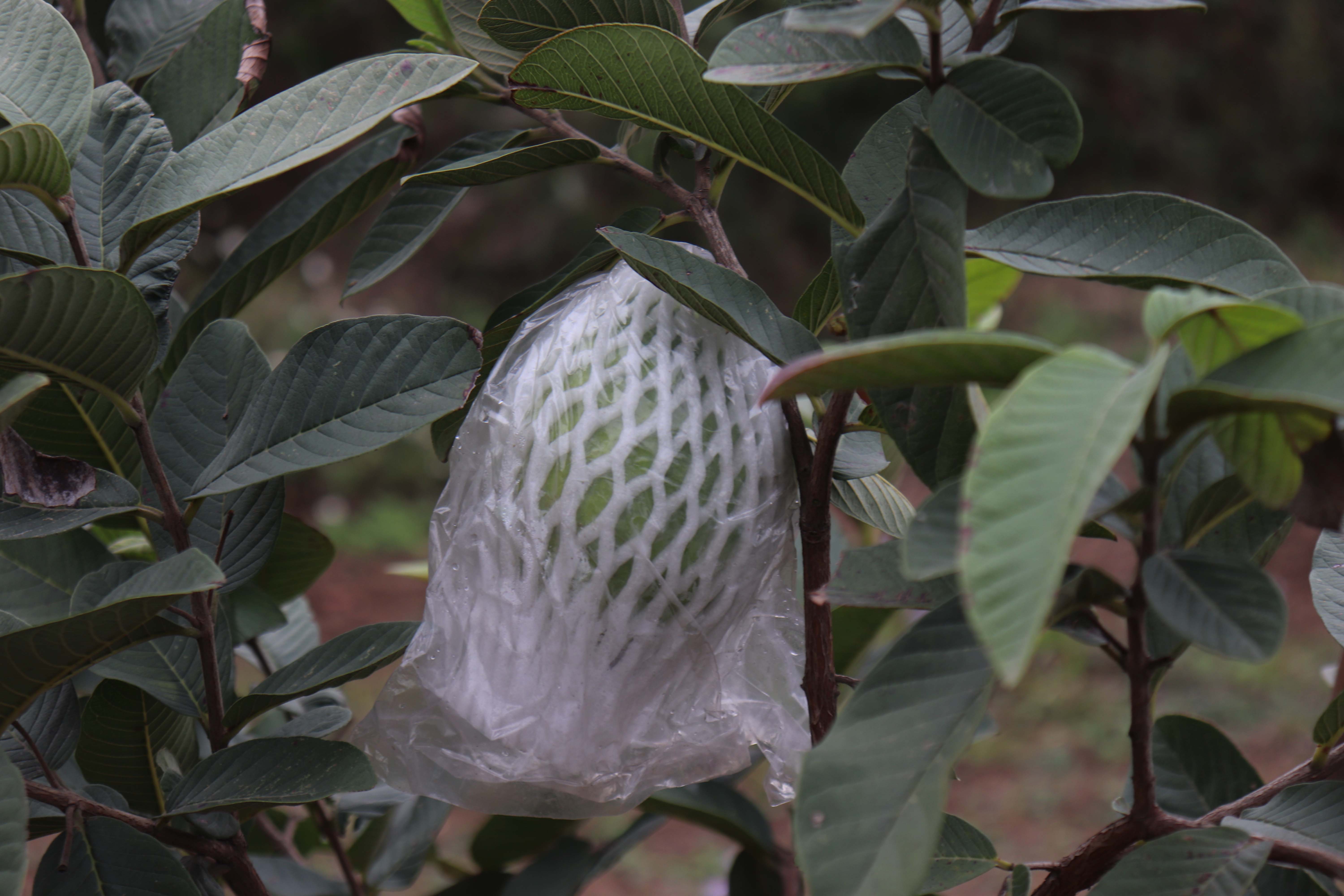 病虫害防治主要以套袋为主,还会施用苦参碱、除虫菊等生物制剂。结果期的胭脂红番石榴,根据枝条的茁壮程度疏果控制产量,保证每一颗果的营养与风味。