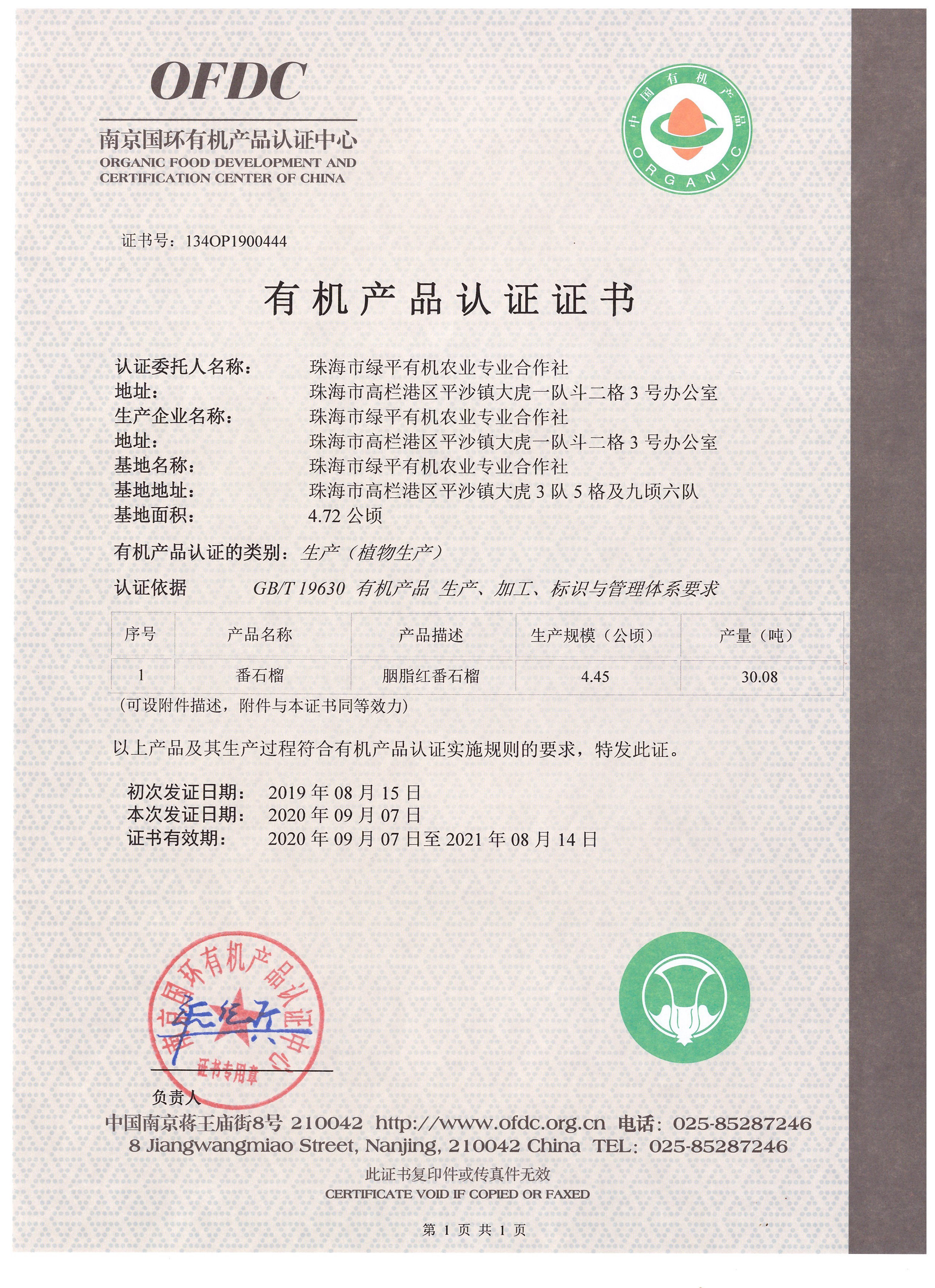 有机种植,果子获得三国有机认证