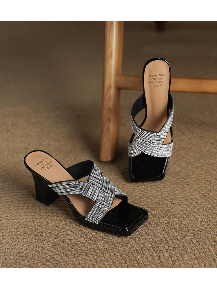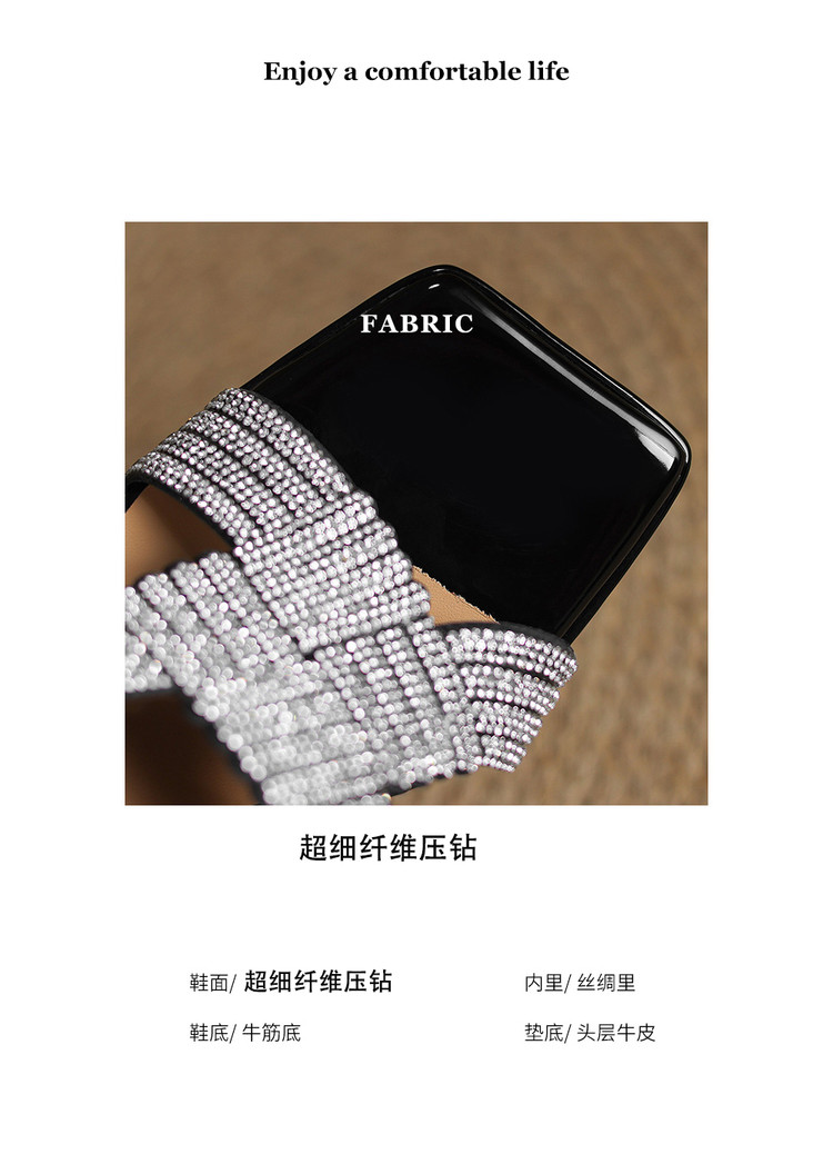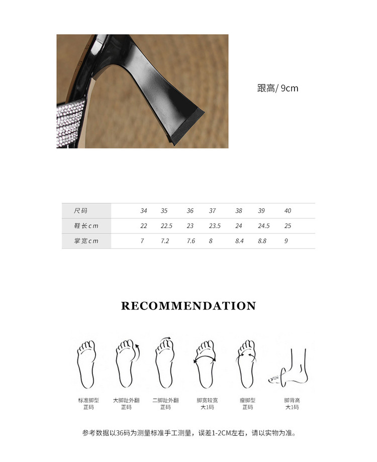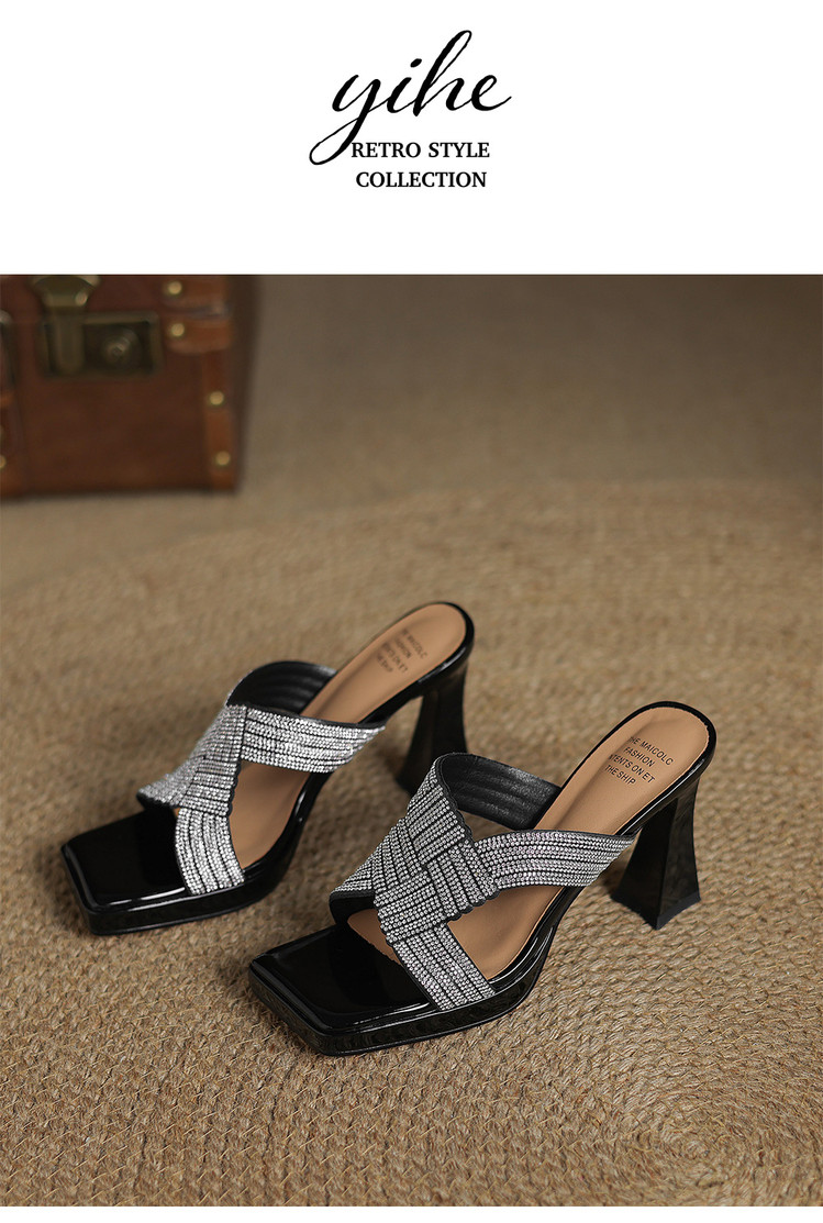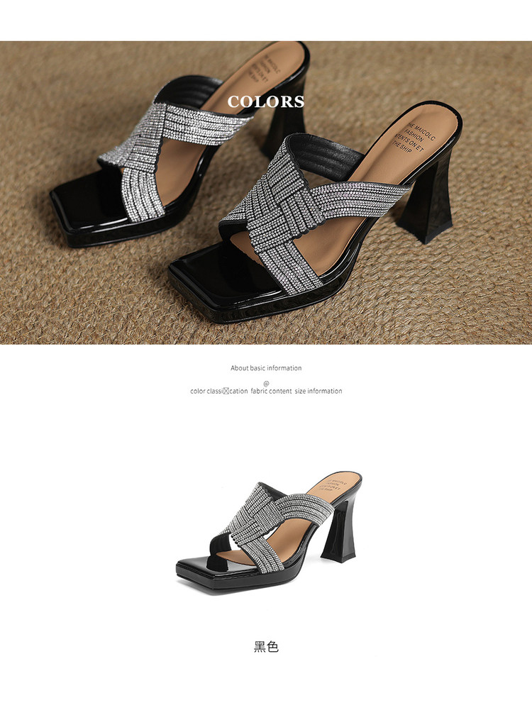 【预售5天】高跟9cm水钻拖鞋女外穿夏季性感时尚厚底方头粗跟凉拖鞋露趾凉鞋DSFG&1832