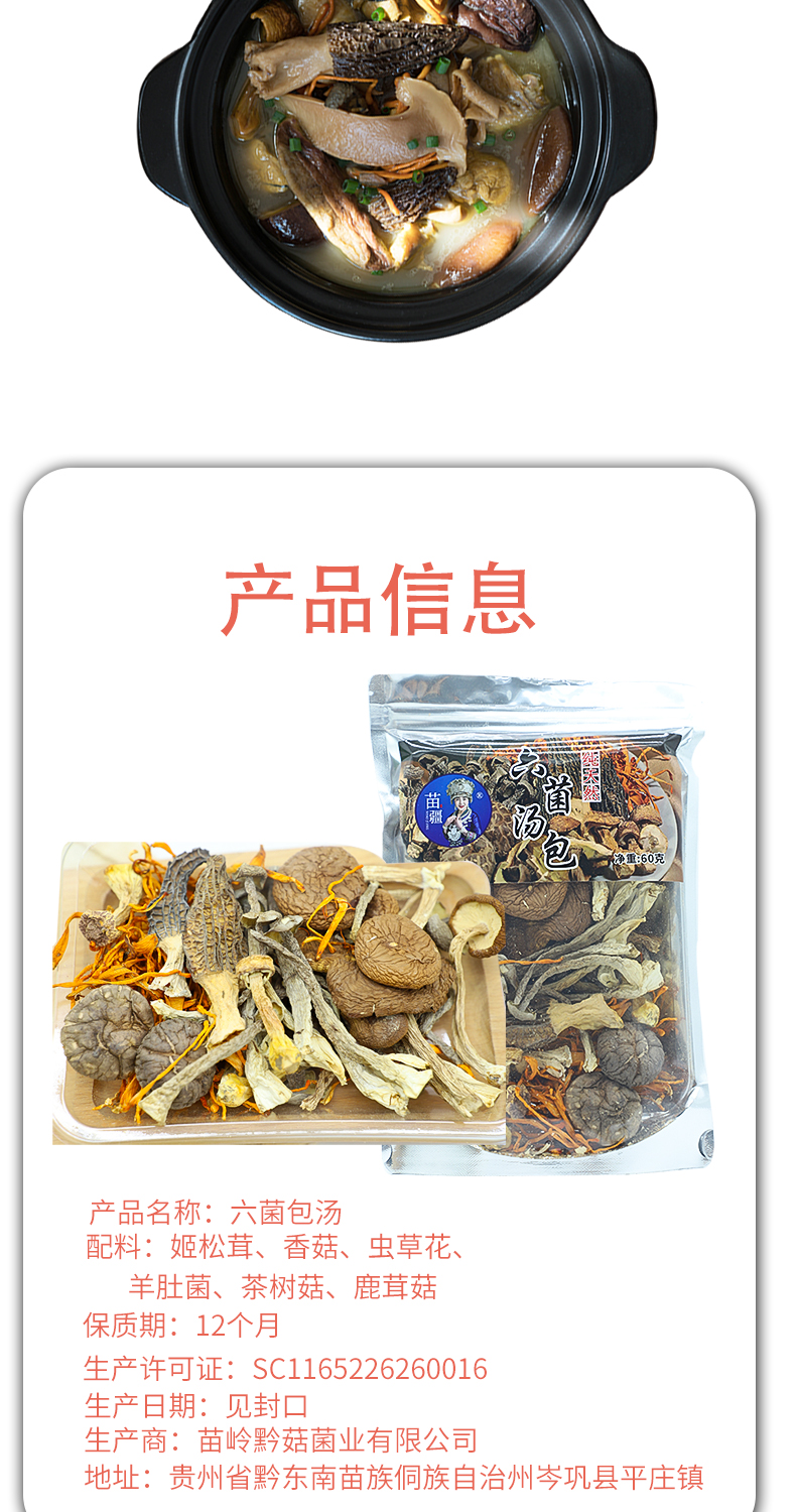 黔东南岑巩【六菌汤包】60g装 六种菌类完美搭配 全国包邮 部分地区不发货