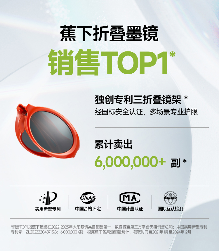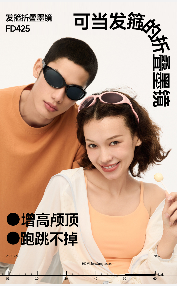 【25年新品】蕉下发箍折叠墨镜FD425可折叠个性小框高级太阳眼镜