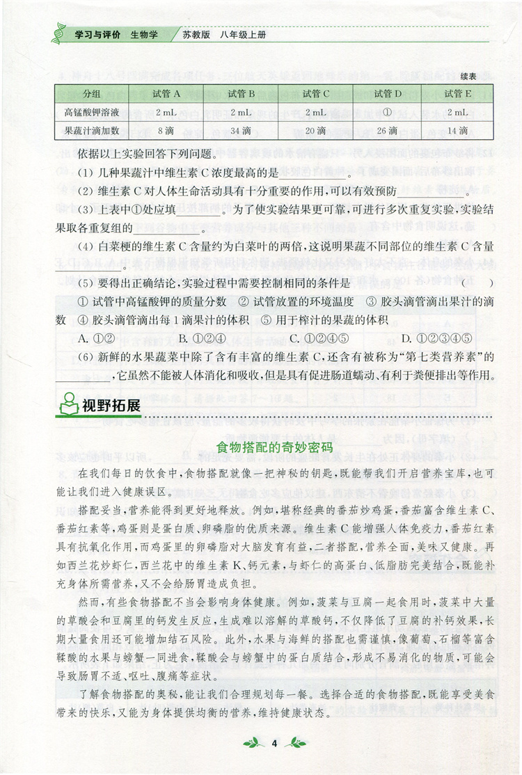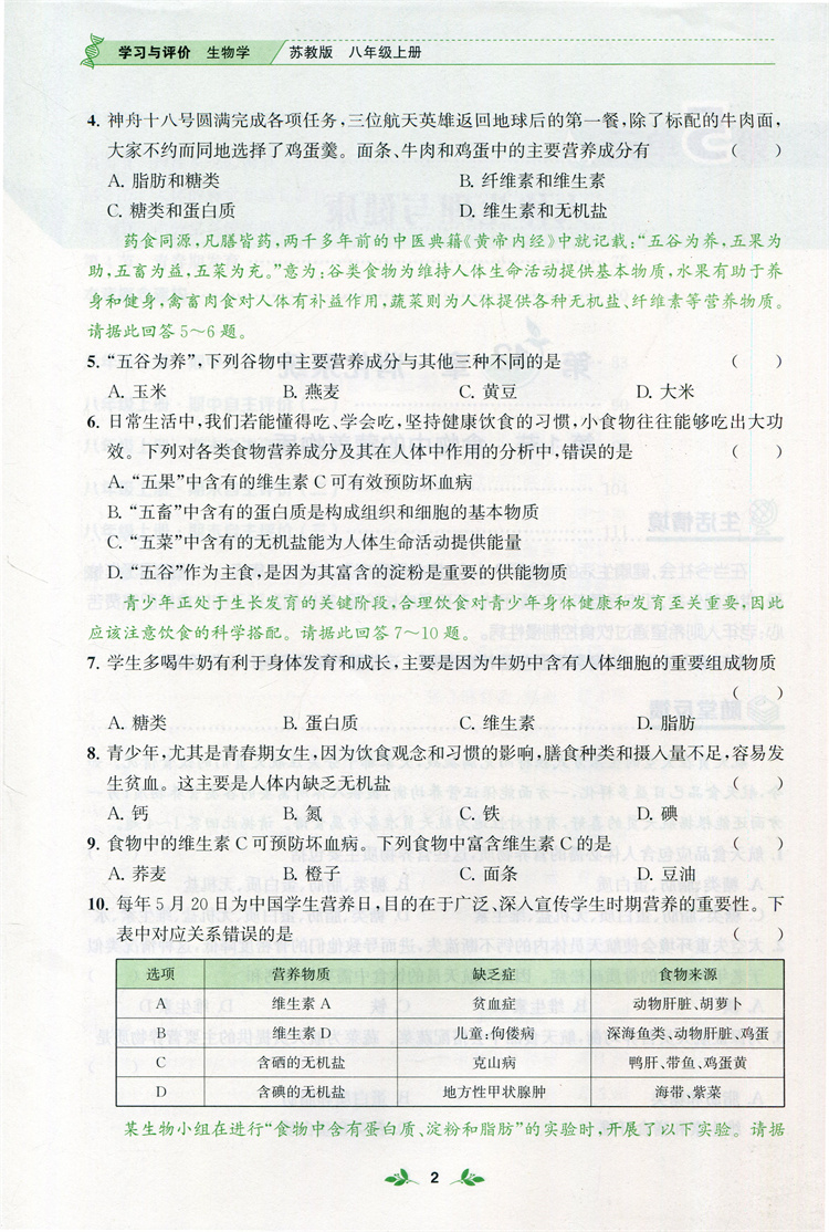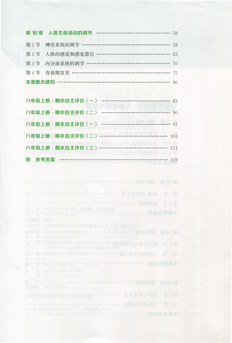 2025年 学习与评价 初中生物学8上 苏教版 八年级上册 8年级上册 同步教辅 学生习题集 江苏凤凰教育出版社XGS