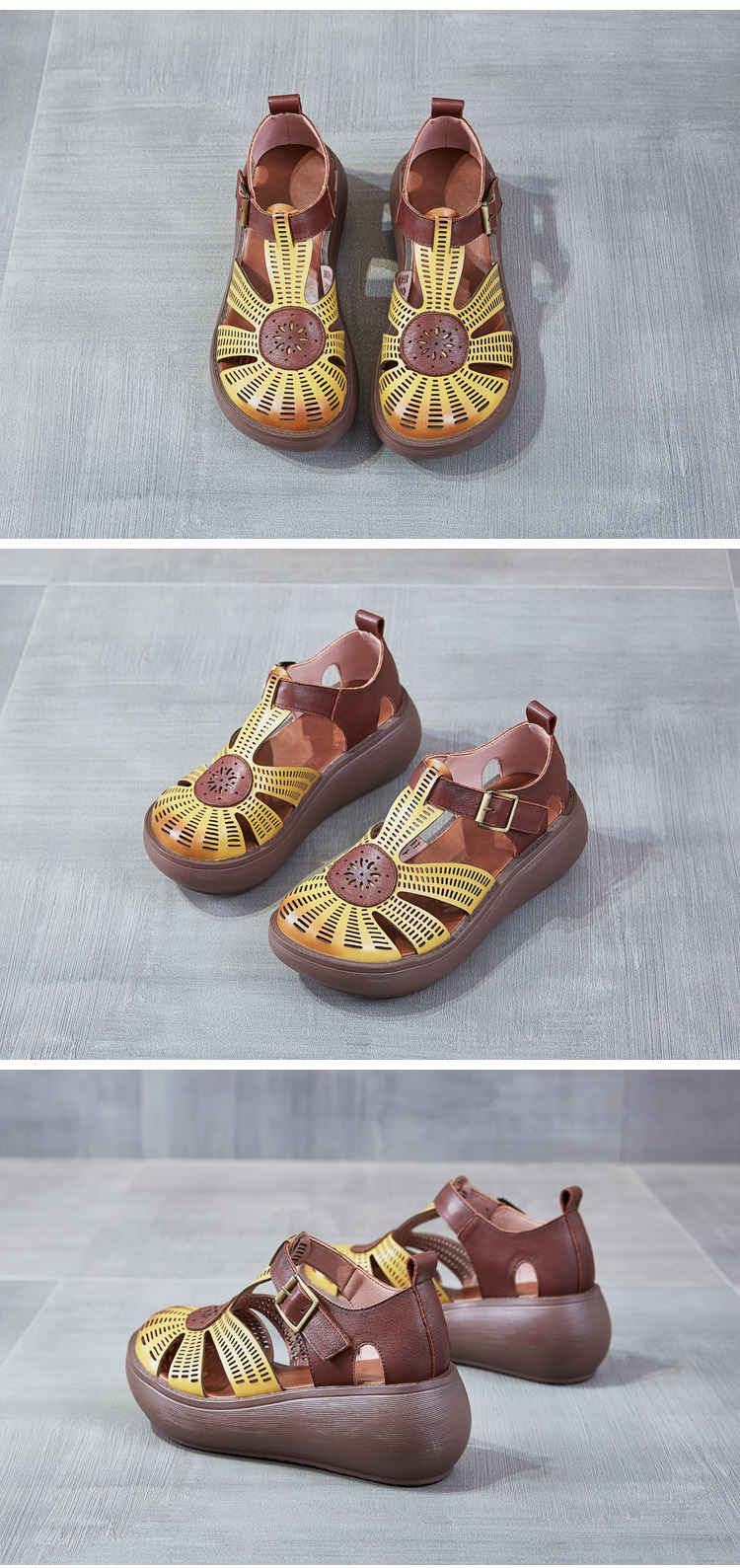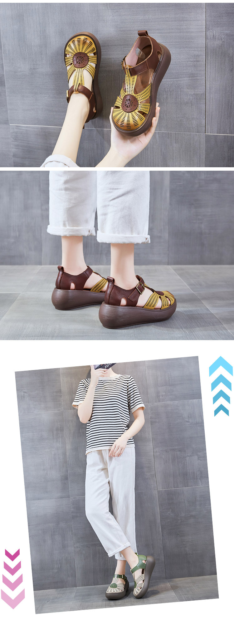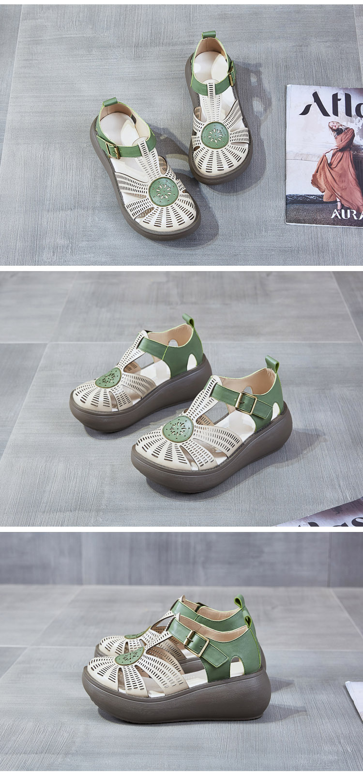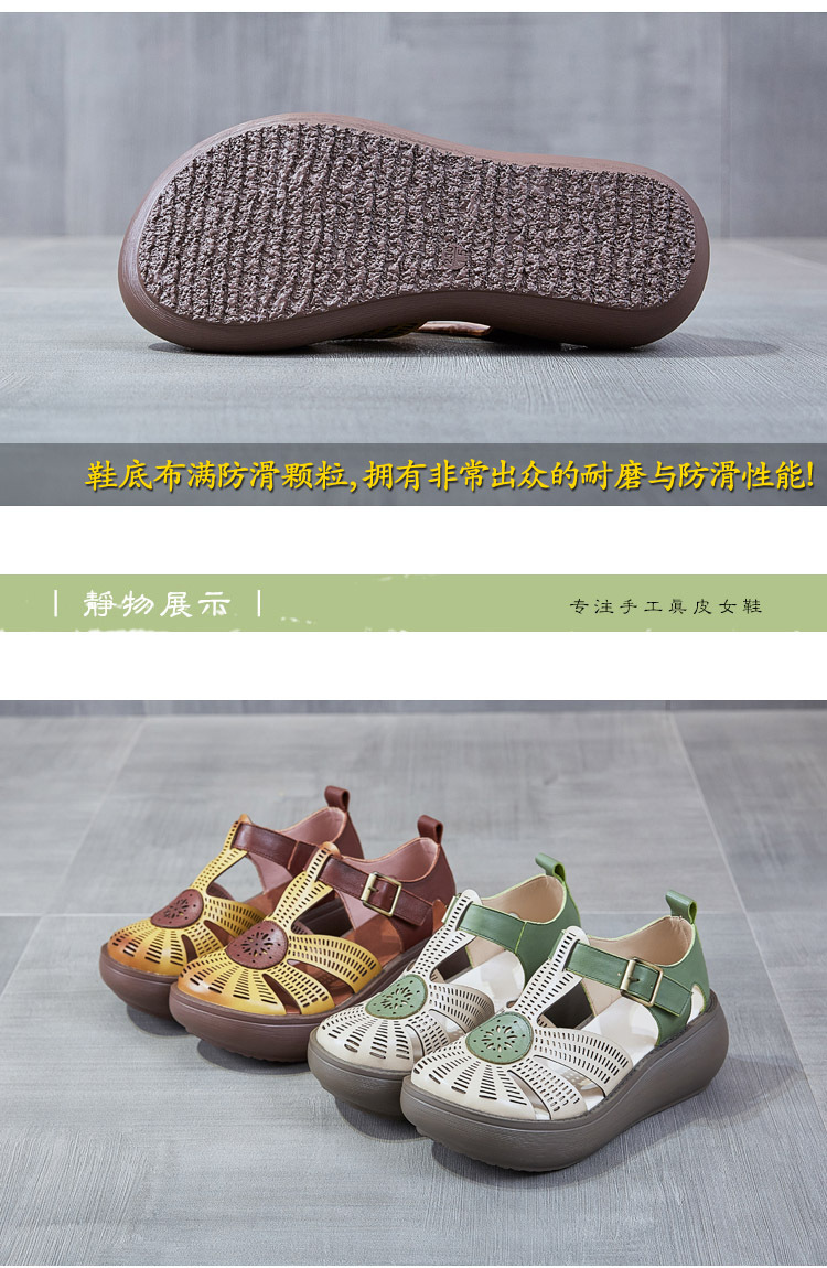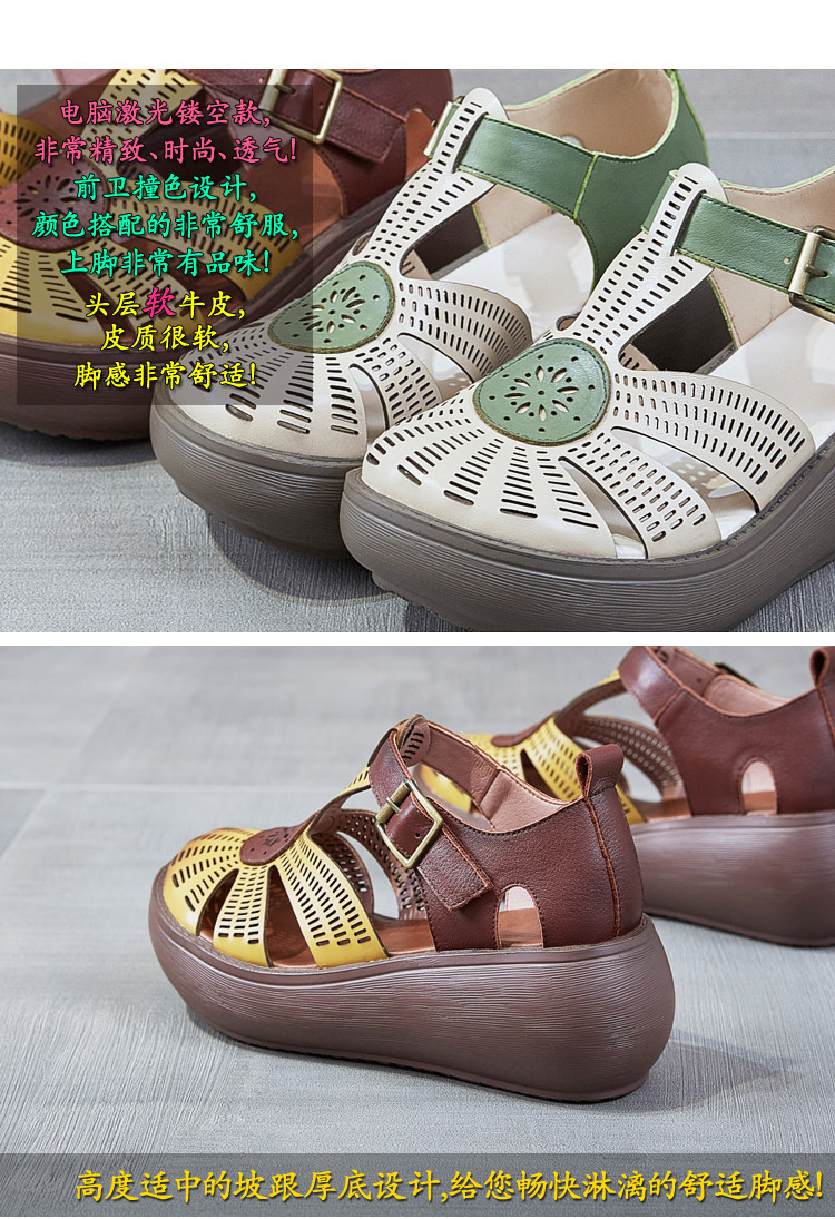 夏季镂空洞洞鞋拼色民族风厚底罗马鞋 YWQ