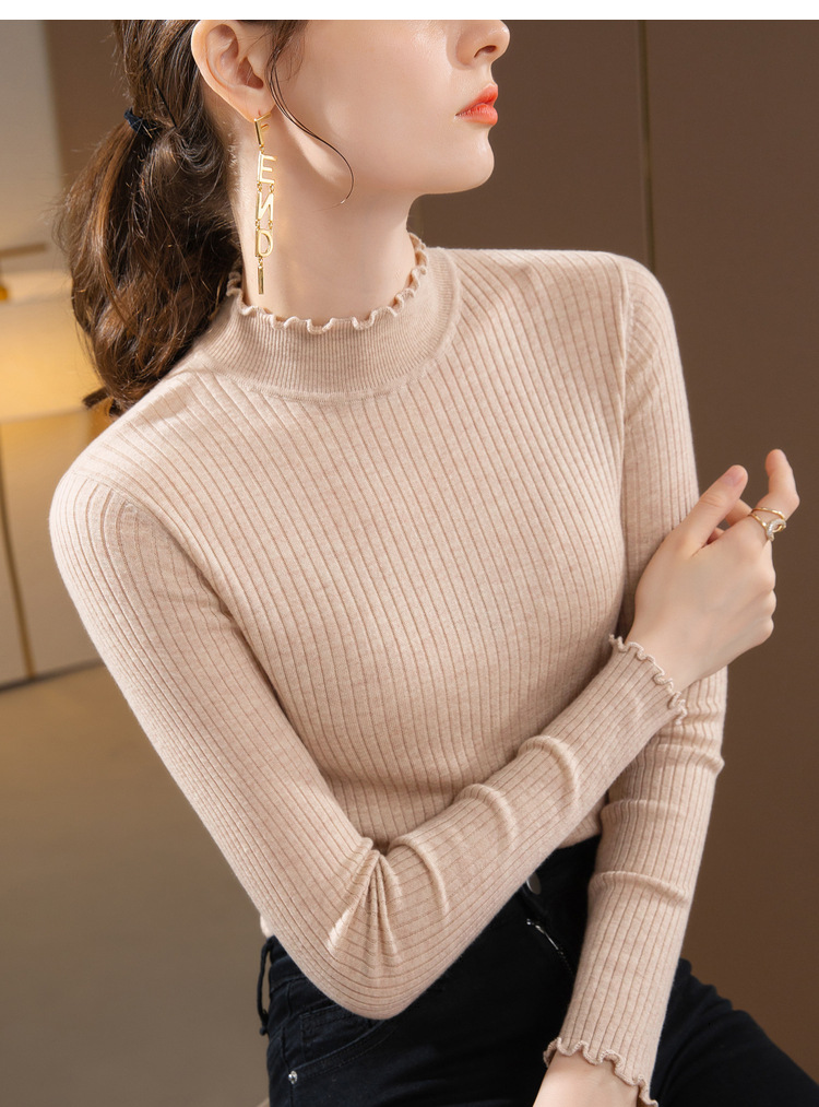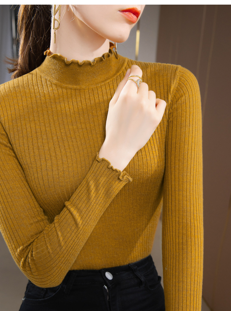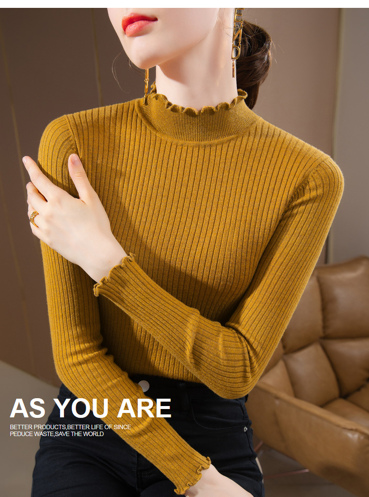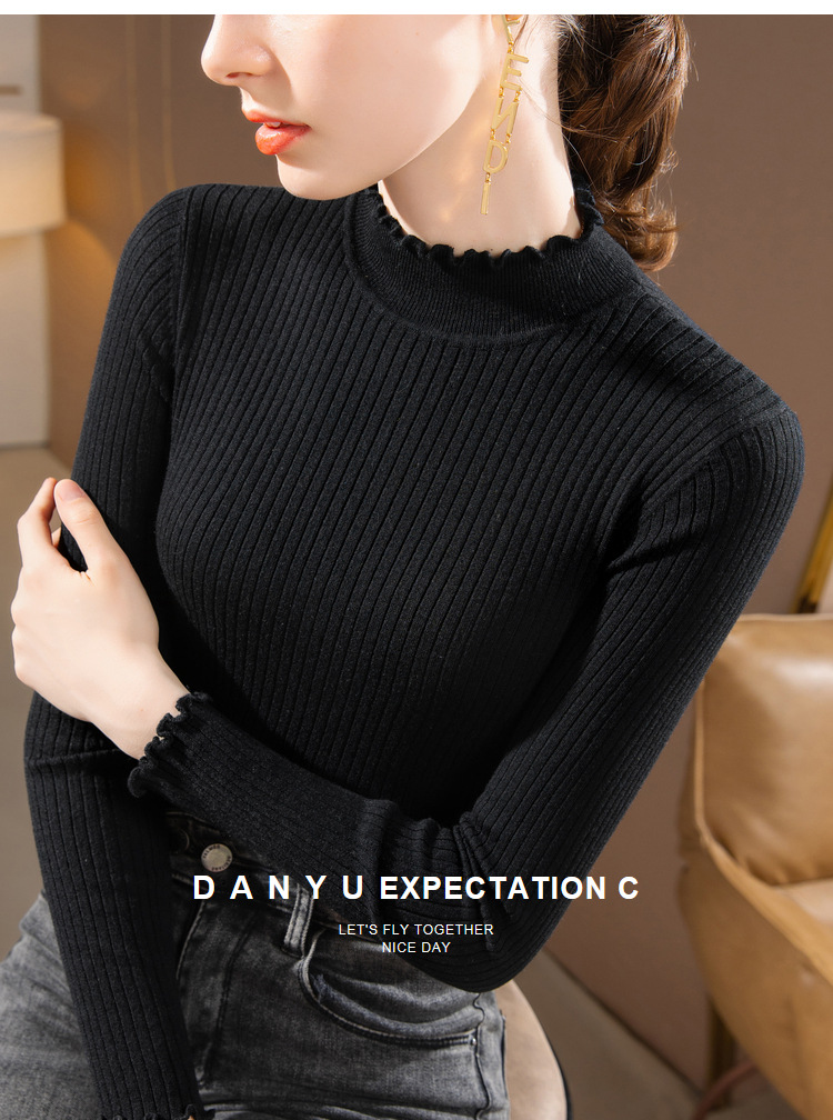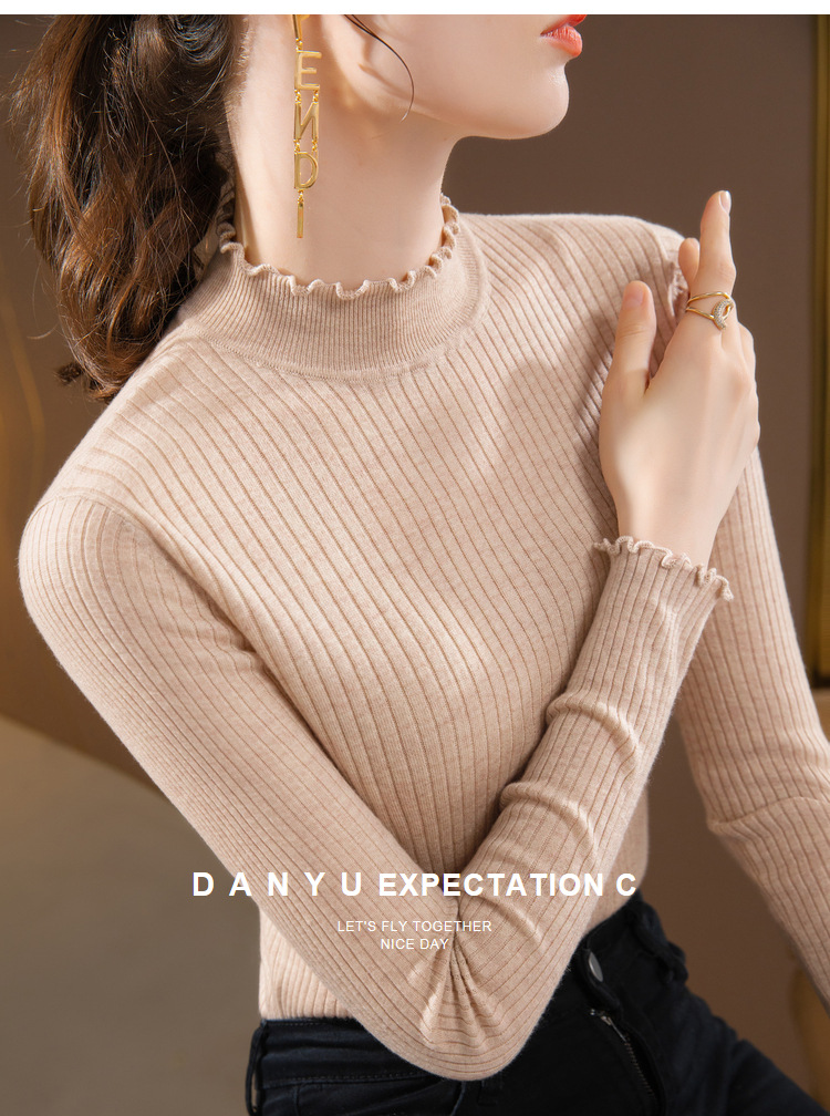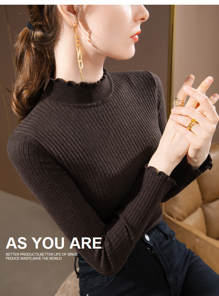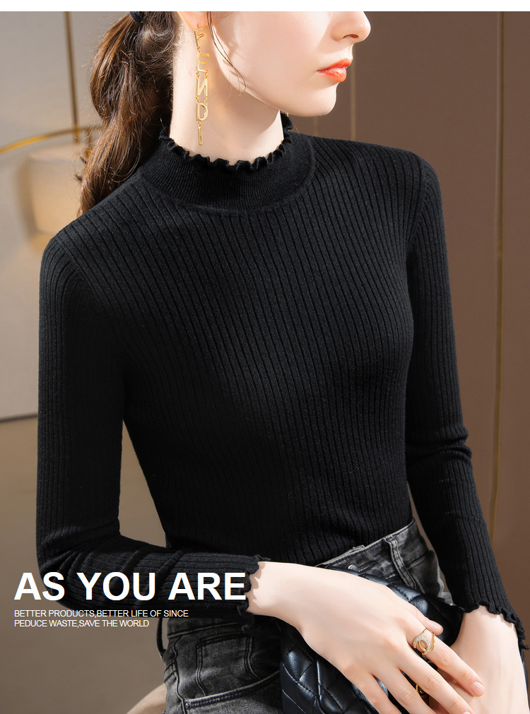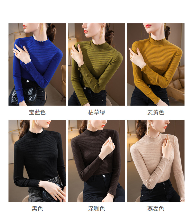 半高领针织打底衫新款木耳边套头羊毛衫保暖内搭上衣SG-I2D3165