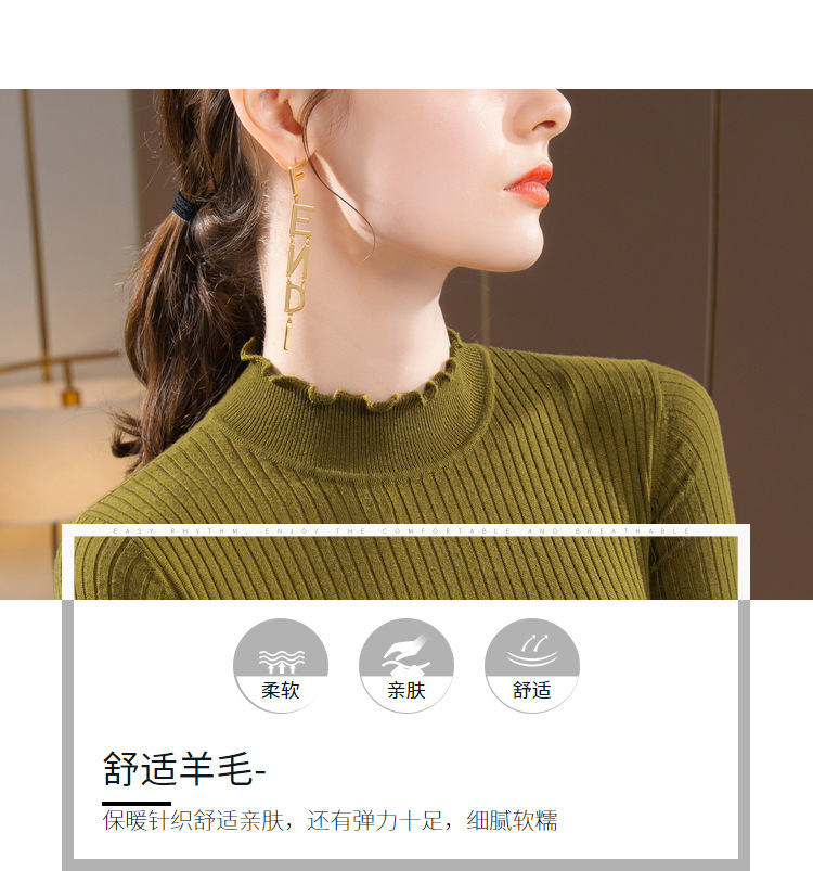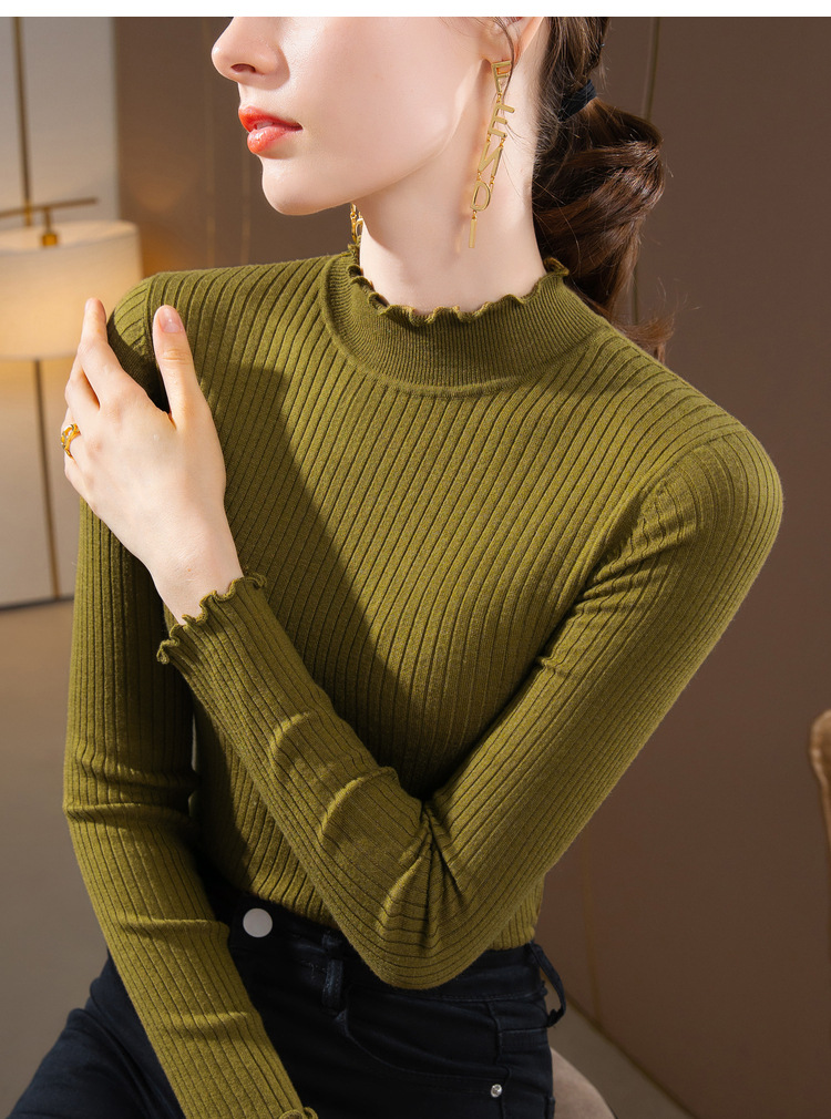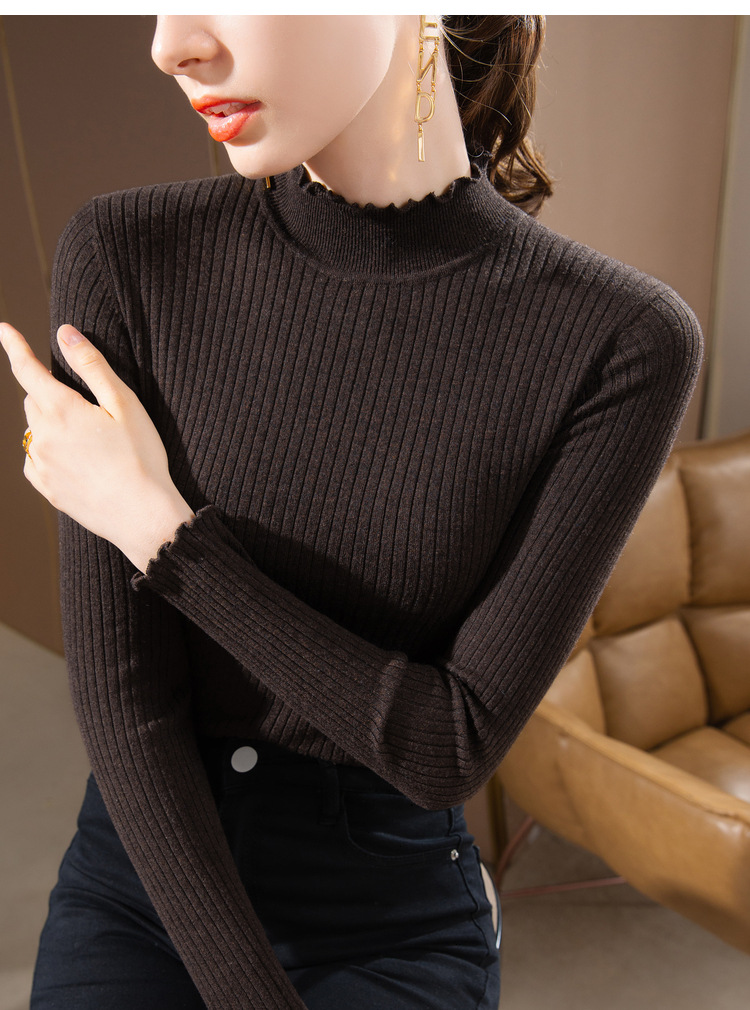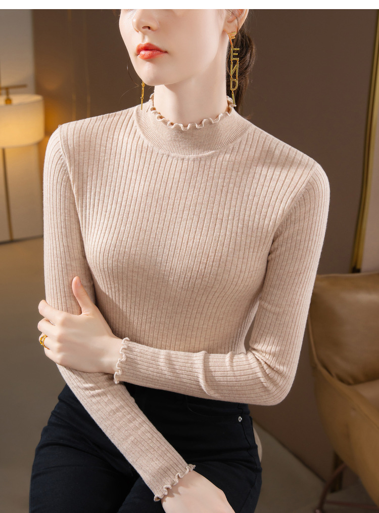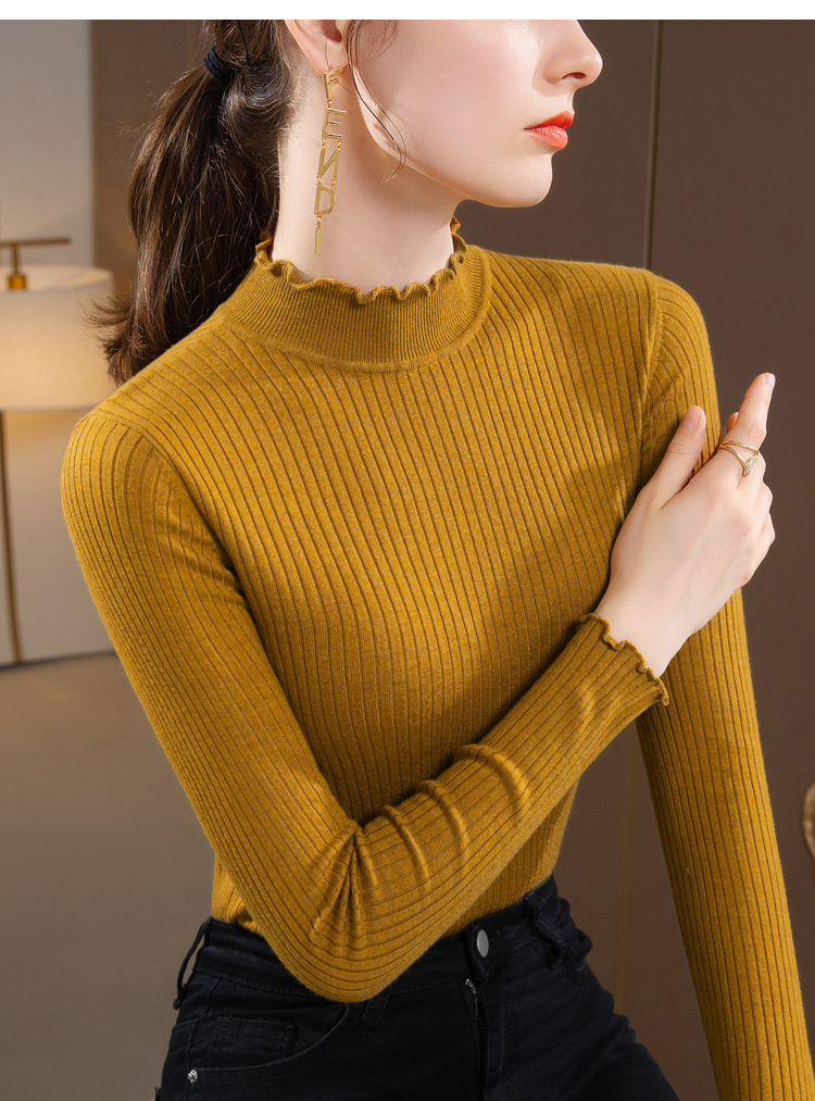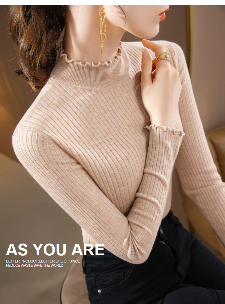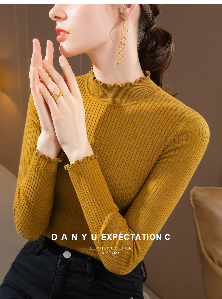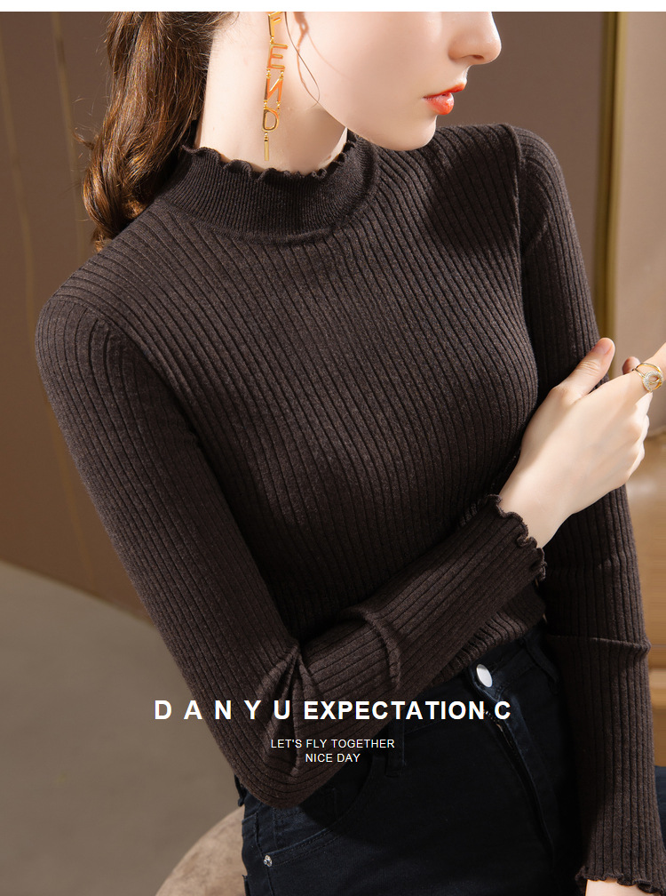 半高领针织打底衫新款木耳边套头羊毛衫保暖内搭上衣SG-I2D3165