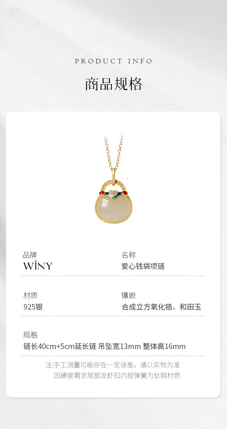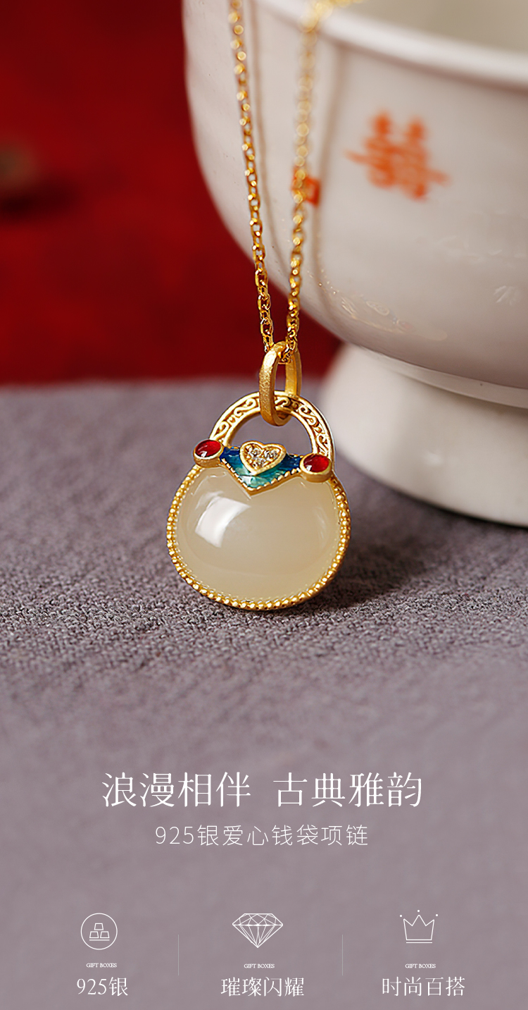 Winy925纯银爱心钱袋项链送女友闺蜜节日生日礼物