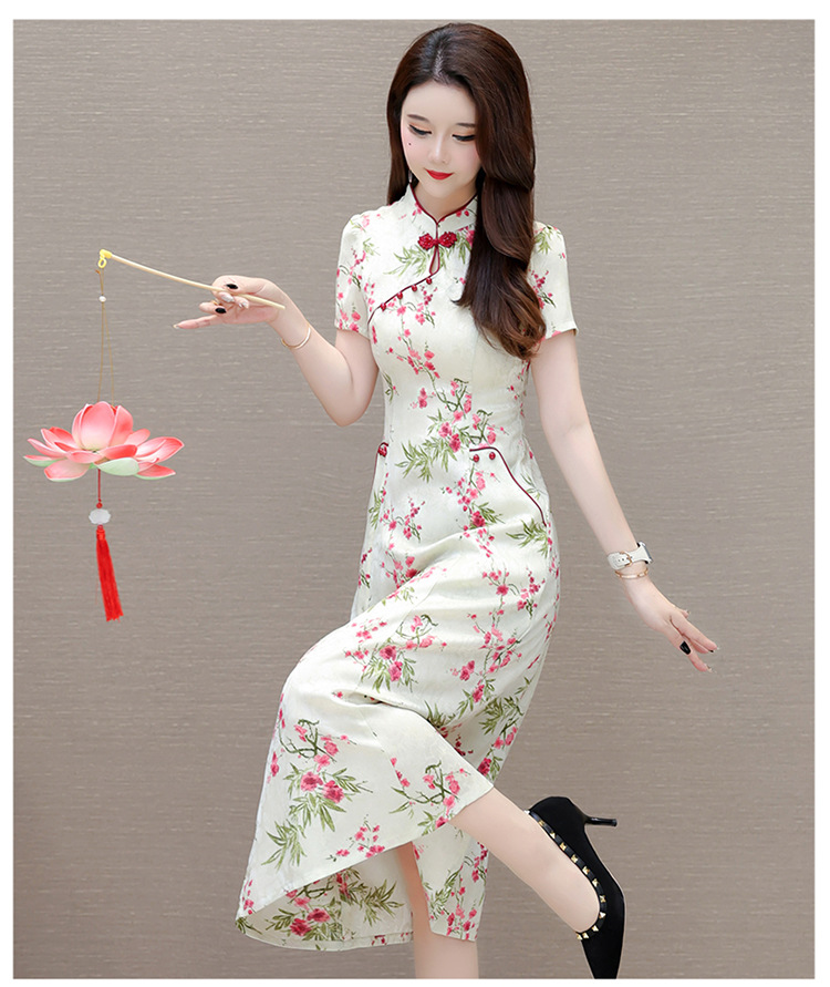 古风改良旗袍连衣裙,国风中长款印花裙QYM-KED-H1897-Y