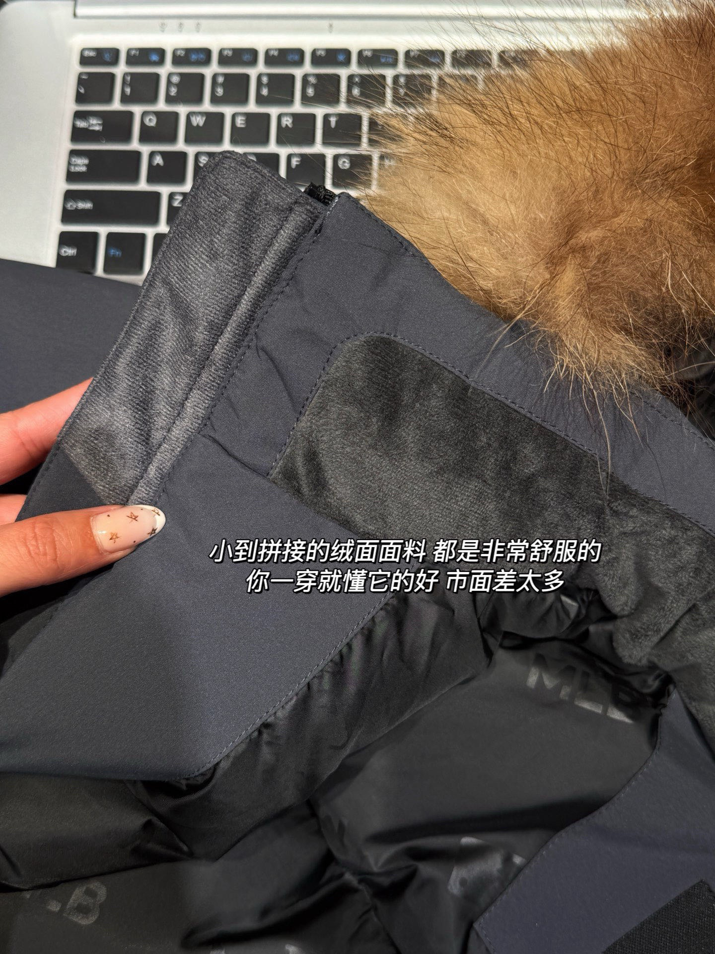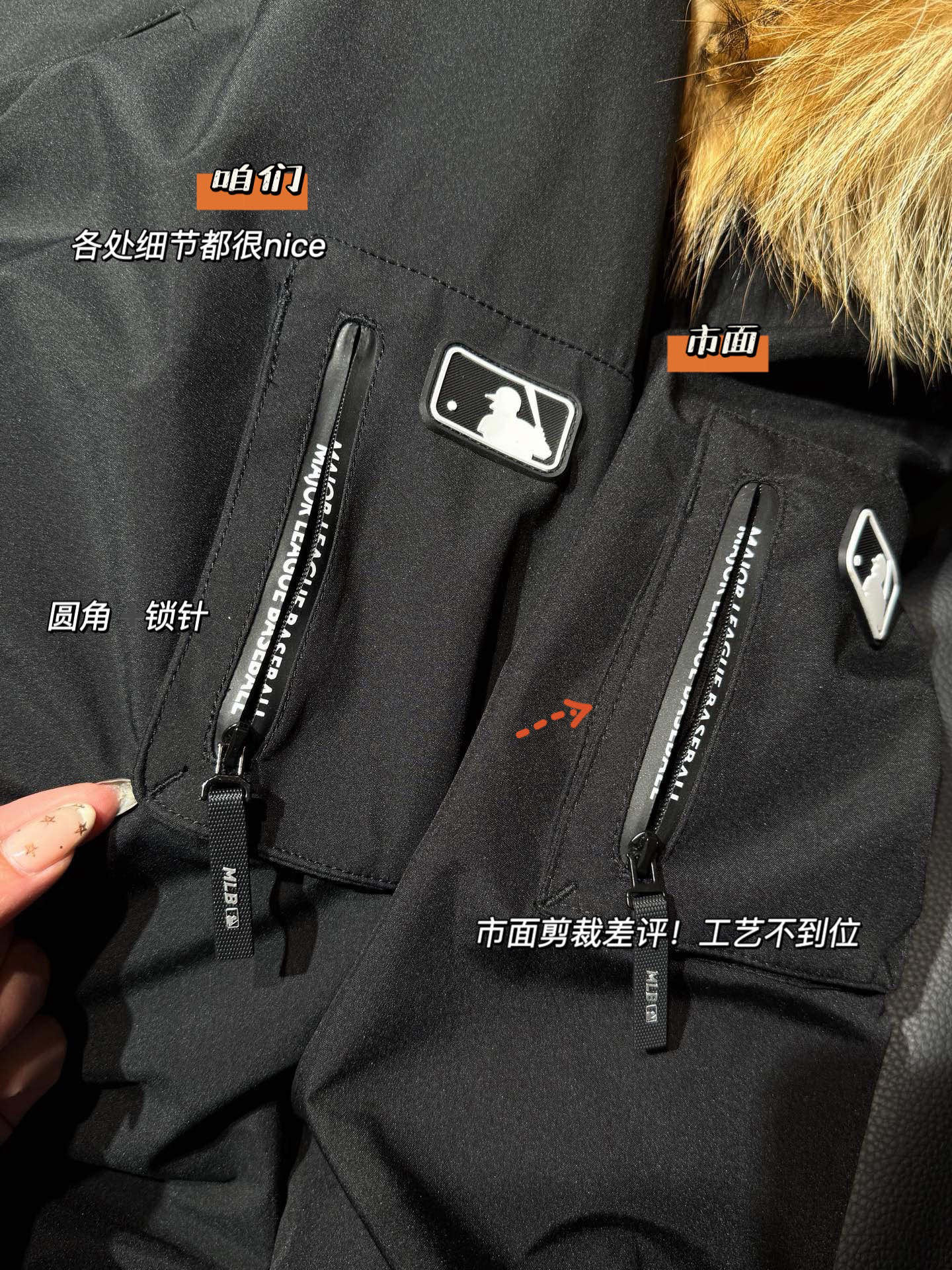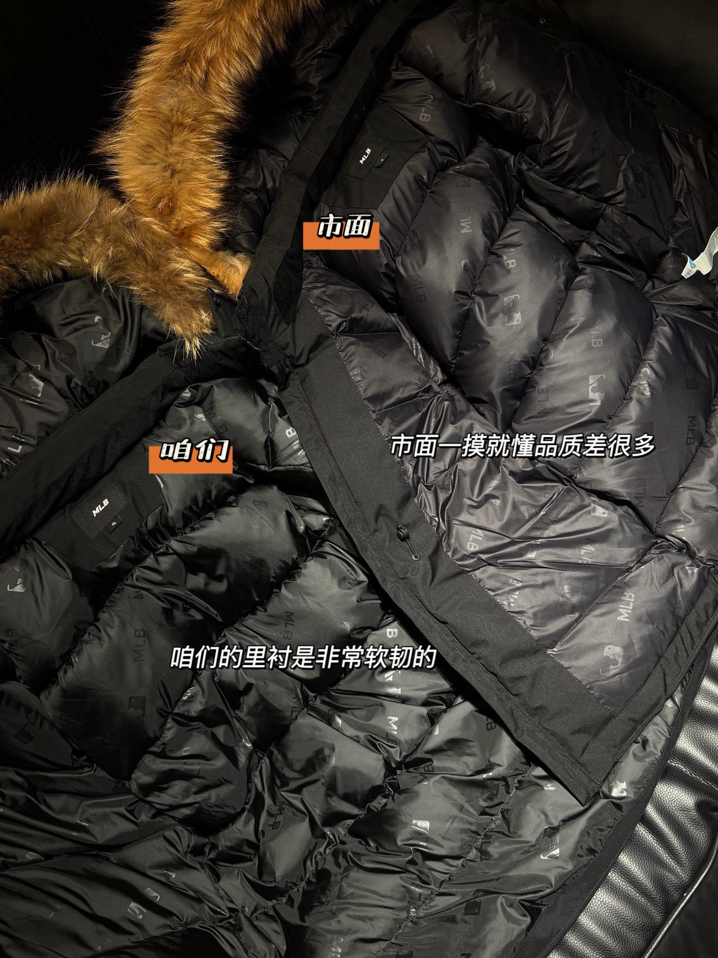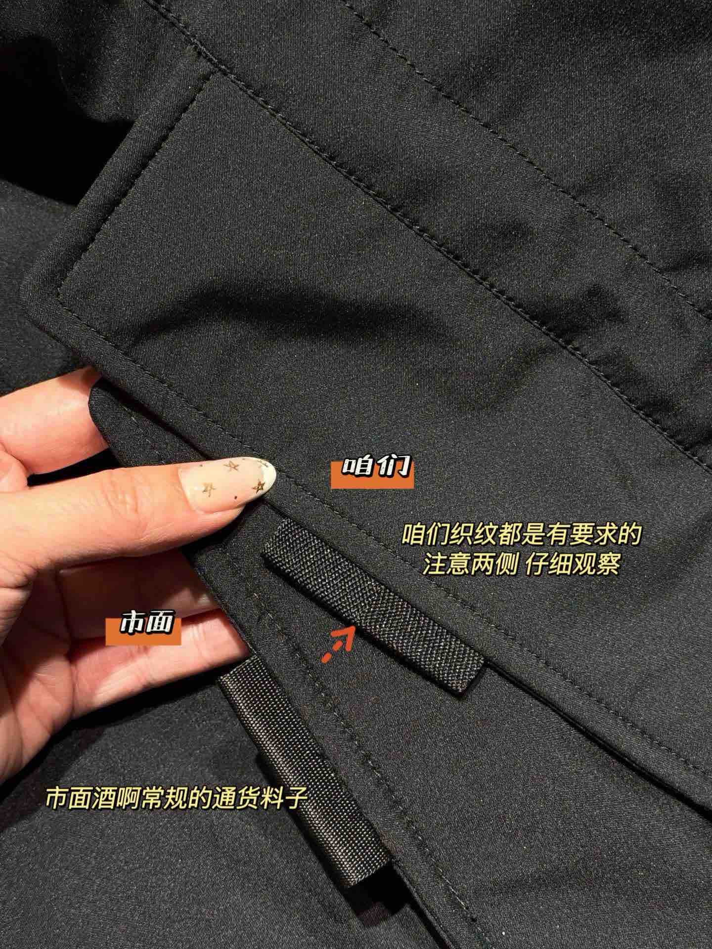 还有充绒 先不论市面是什么填充 就说这版型小一圈 充绒量自然就少了 相信我 市面是不会给你朵绒的毛领🆚对比