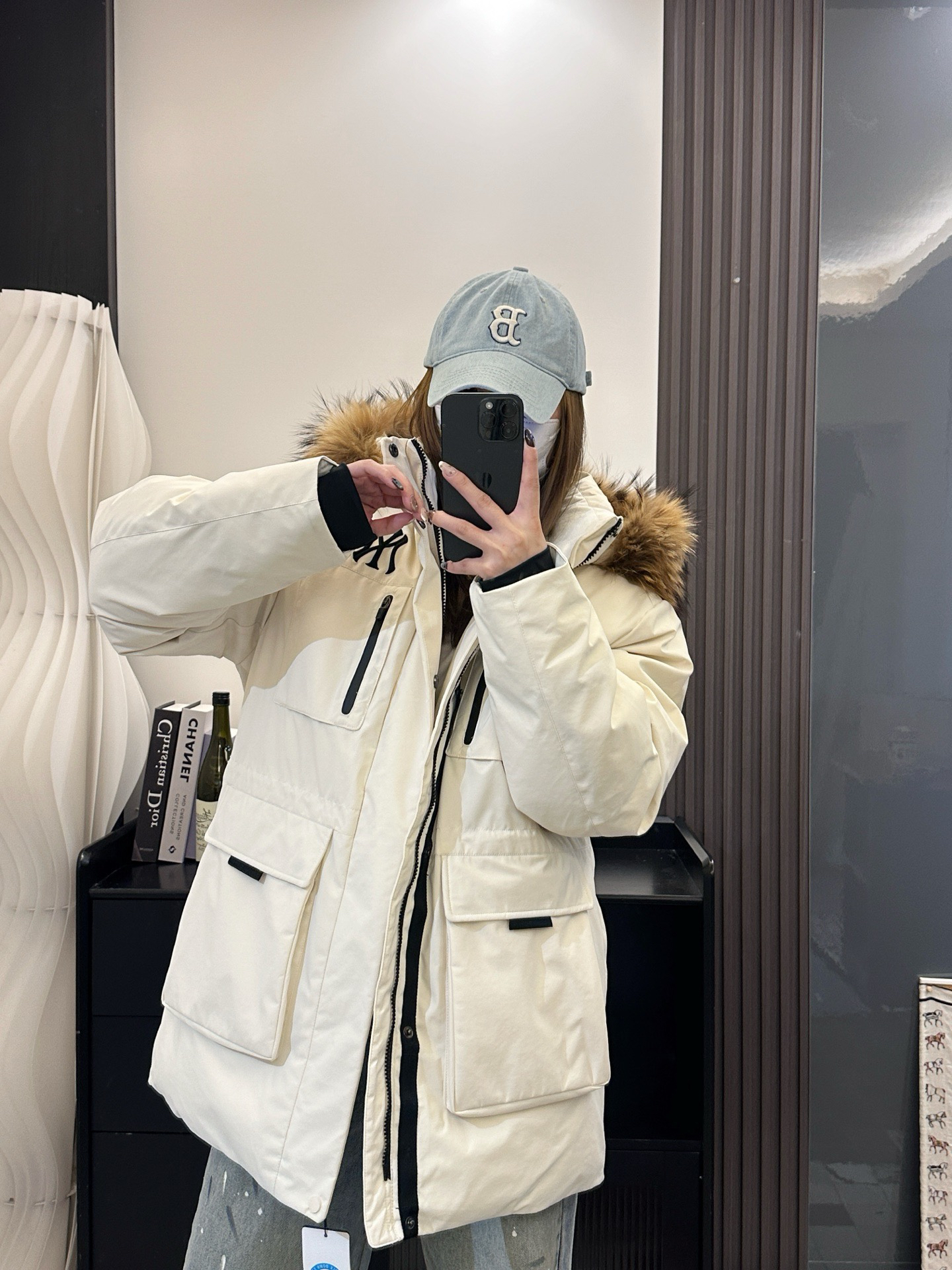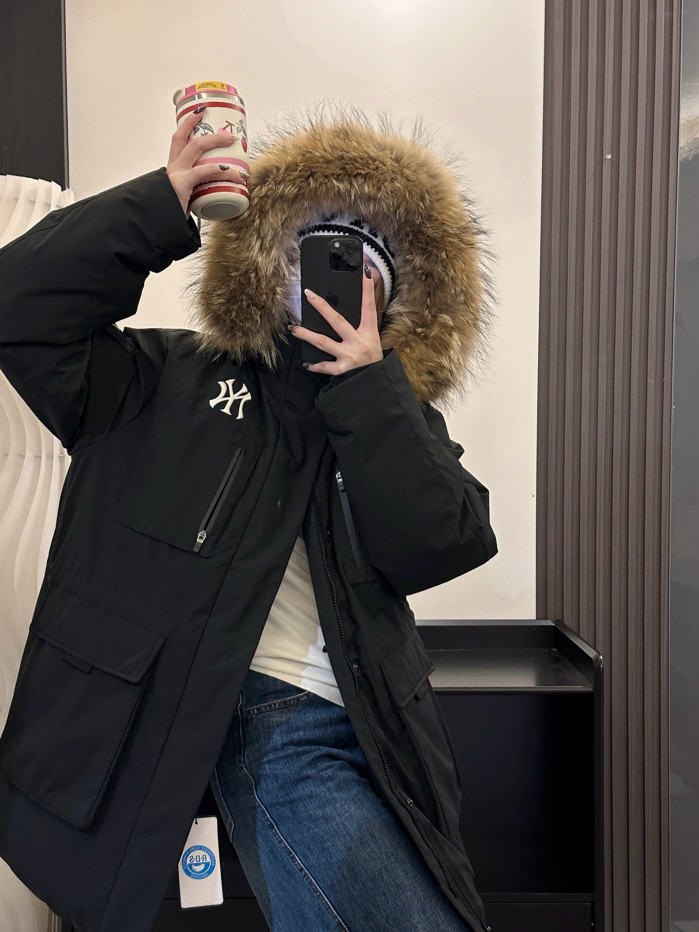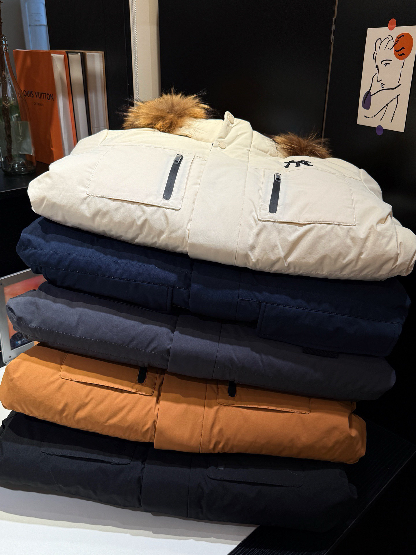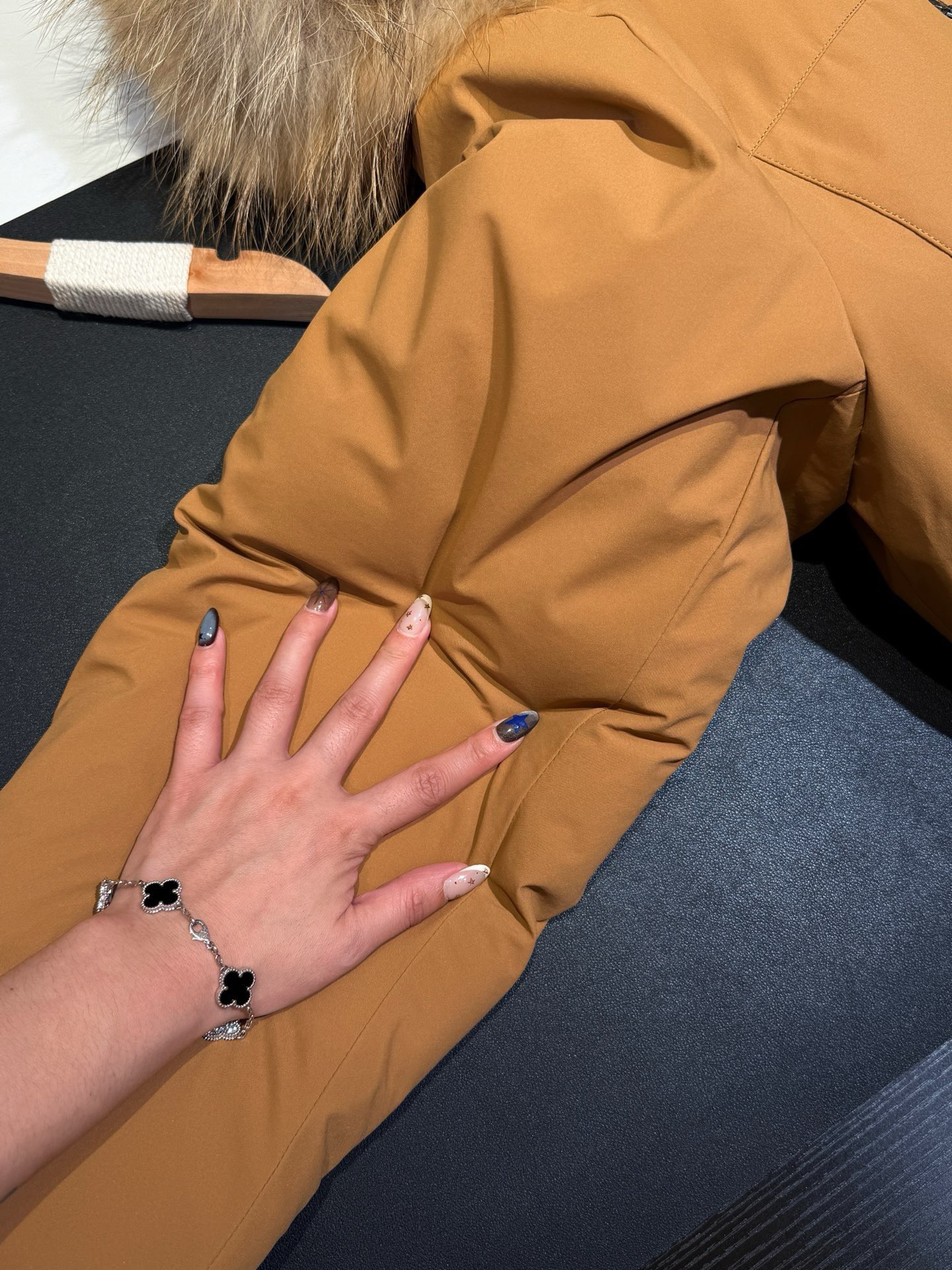还有充绒 先不论市面是什么填充 就说这版型小一圈 充绒量自然就少了 相信我 市面是不会给你朵绒的毛领🆚对比