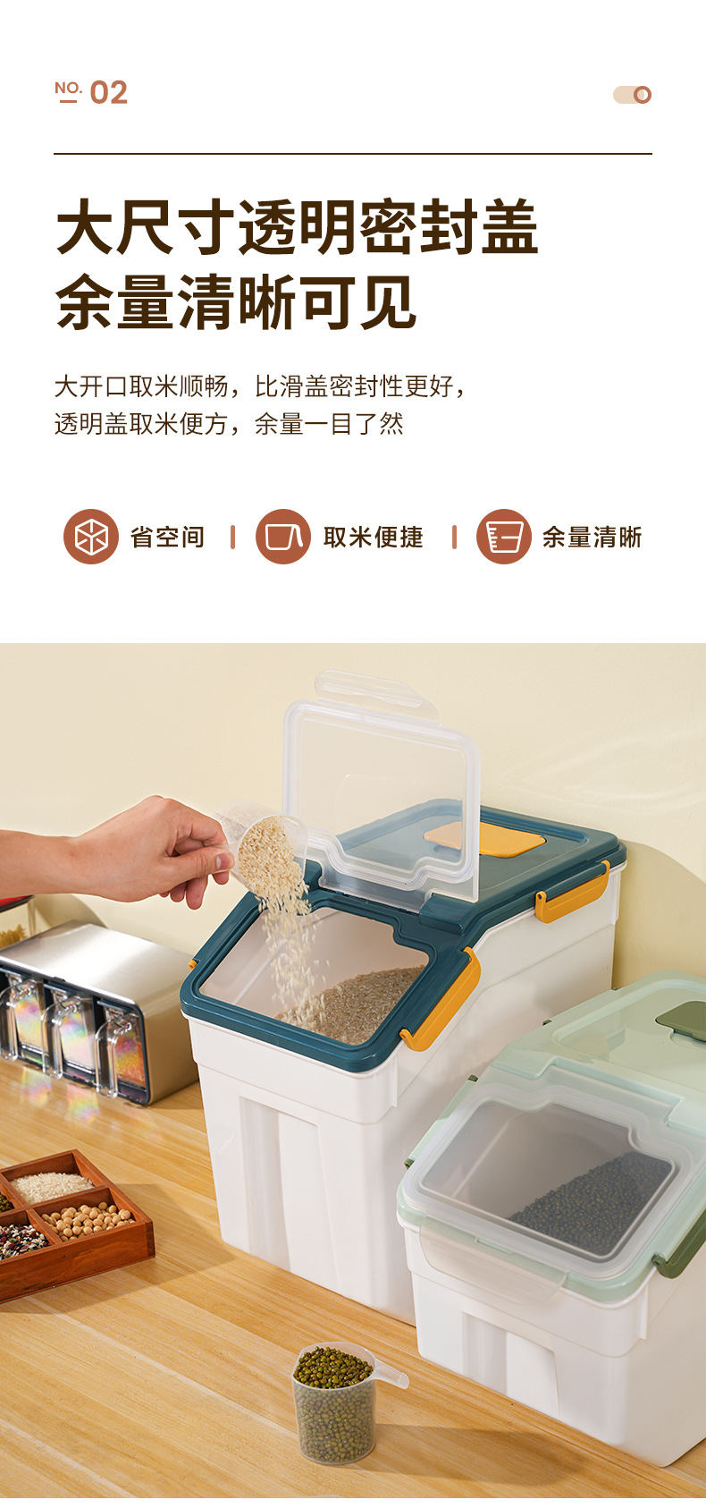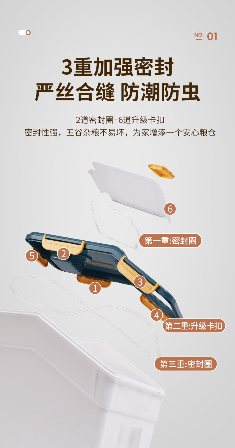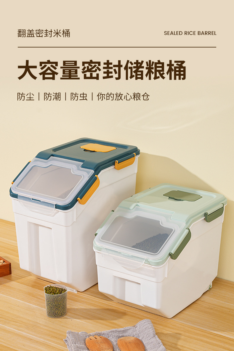 【大容量密封储粮桶!一箱多用】家用厨房米桶防潮防虫密封加厚米缸塑料米桶箱;严丝合缝 防潮防虫;省空间 取物品方便 余量一目了然 耐高温无异味,食品安心存放