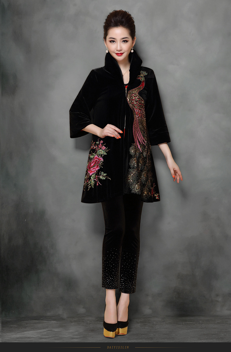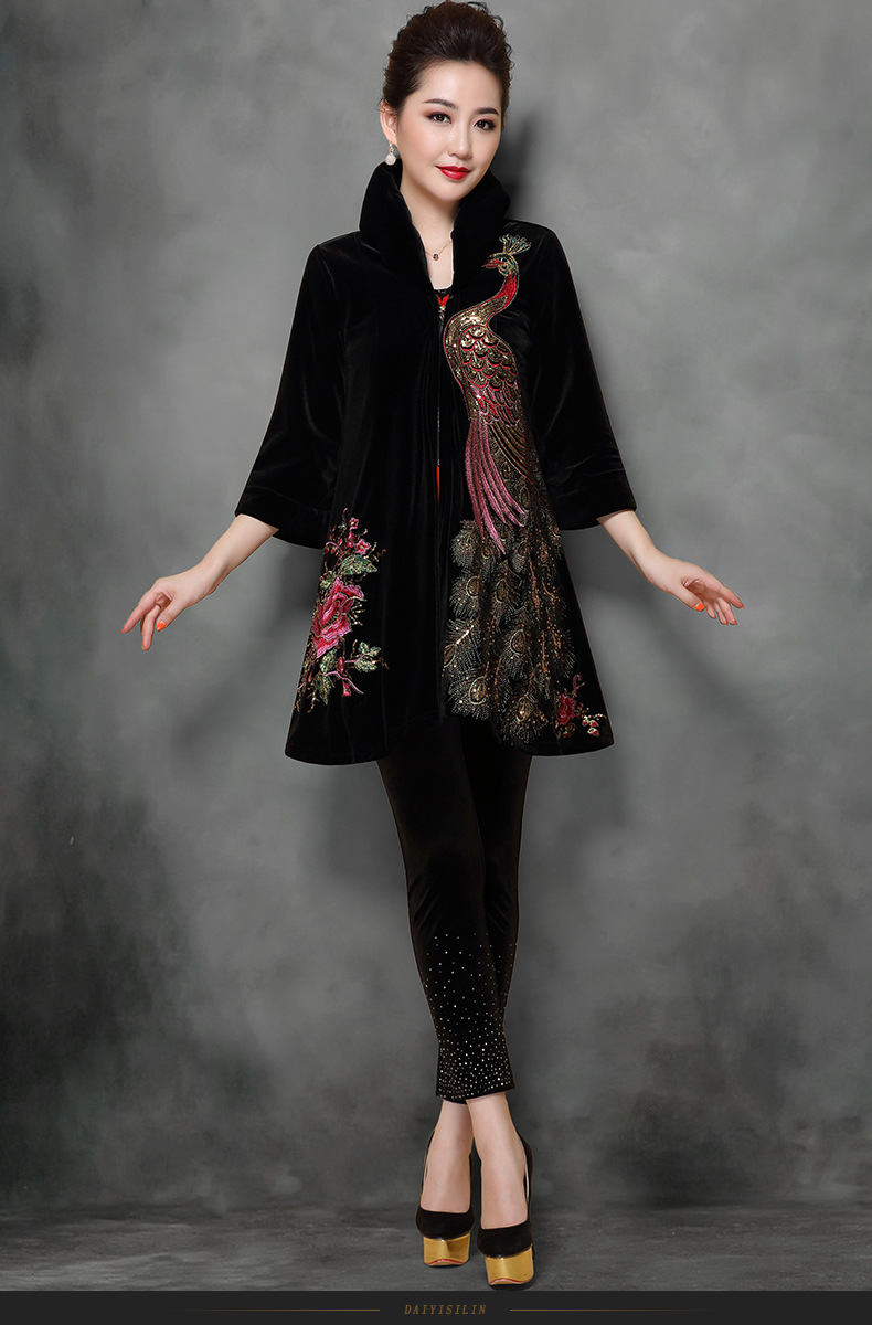 DY-Y0378金丝绒刺绣加绒加厚披风大衣