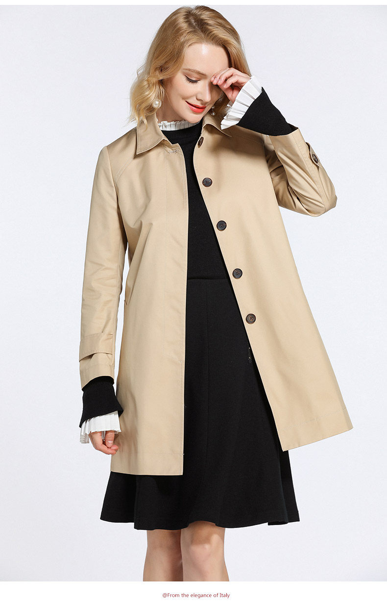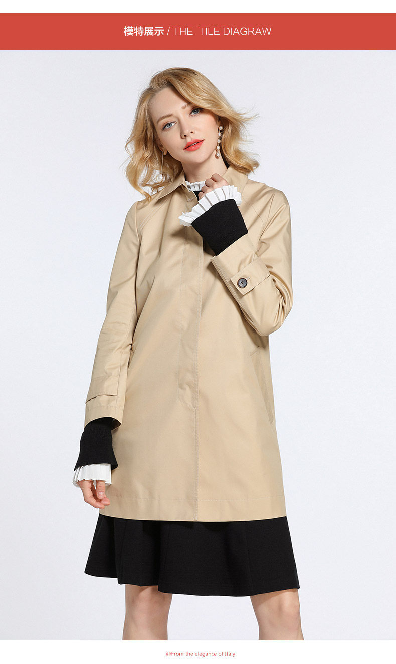 乔万尼风衣女春季简约卡其色欧美风经典百搭外套EB3A246