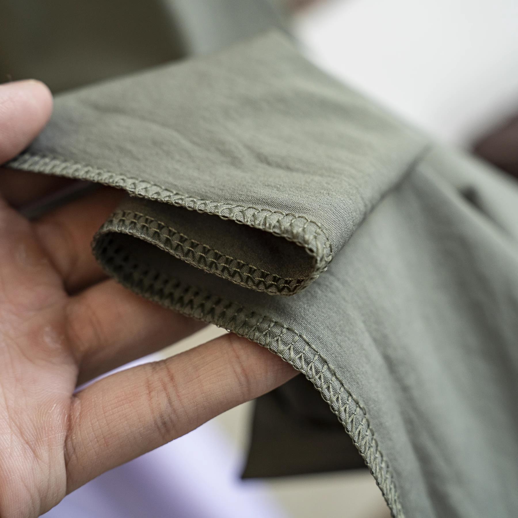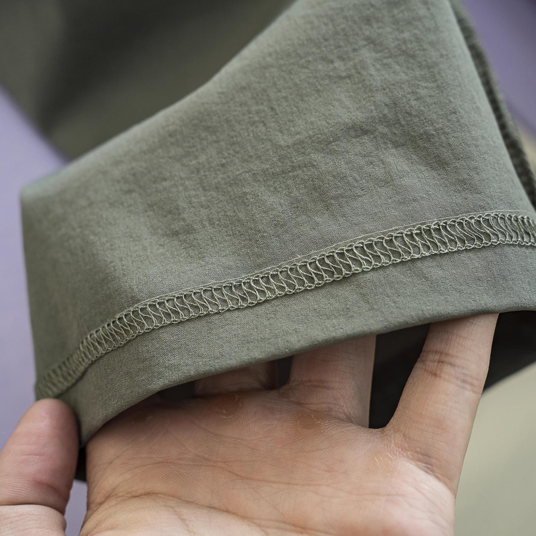 裤子的缝线工整细密,每一针每一线都彰显着品质。