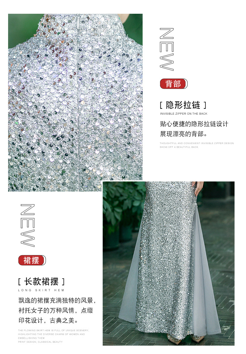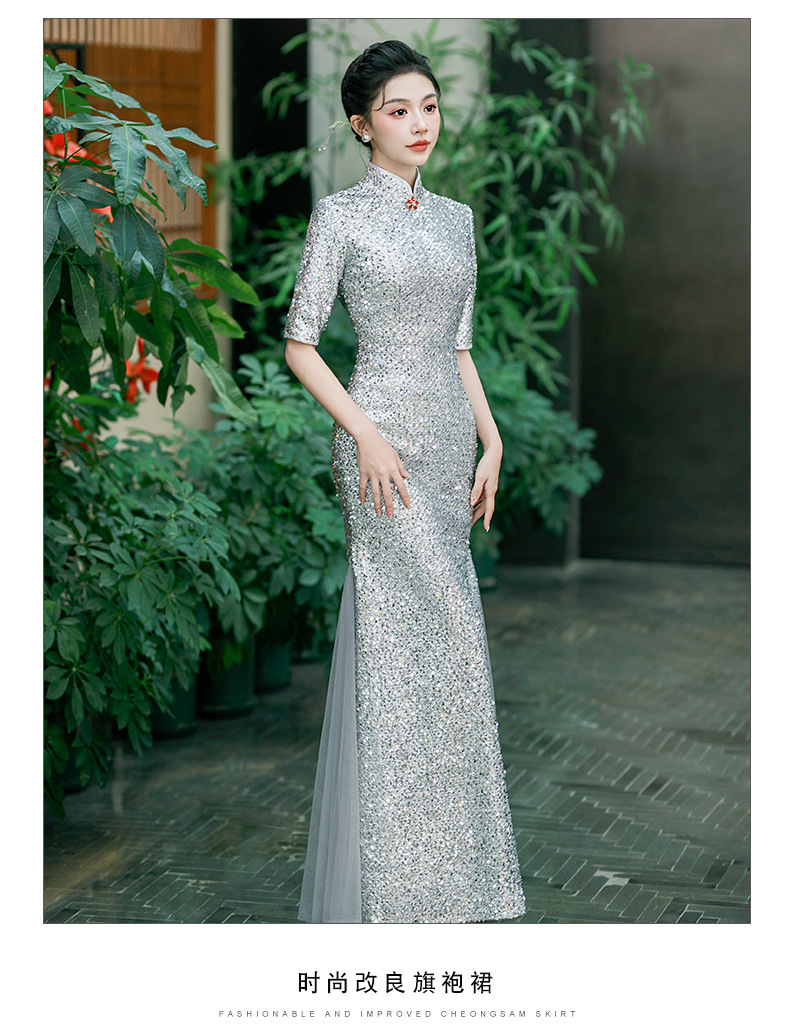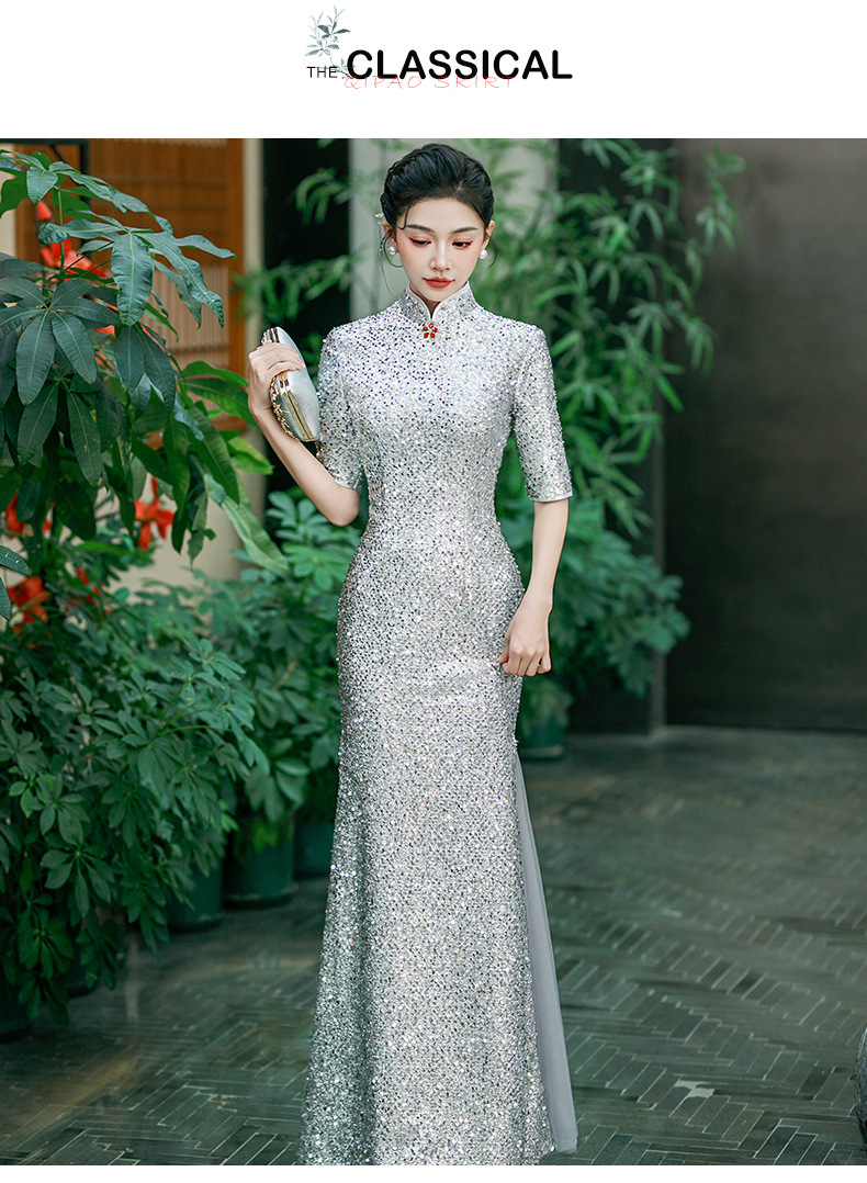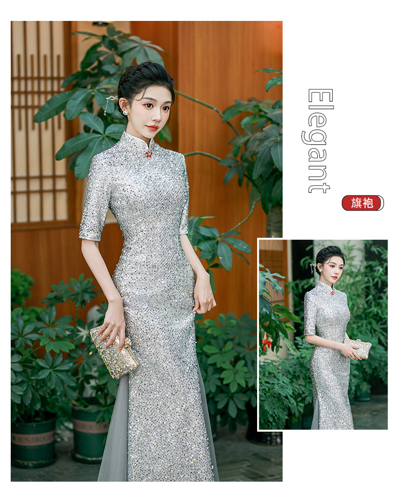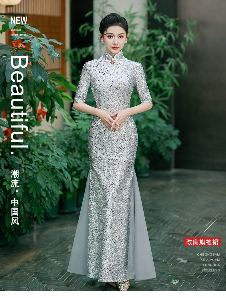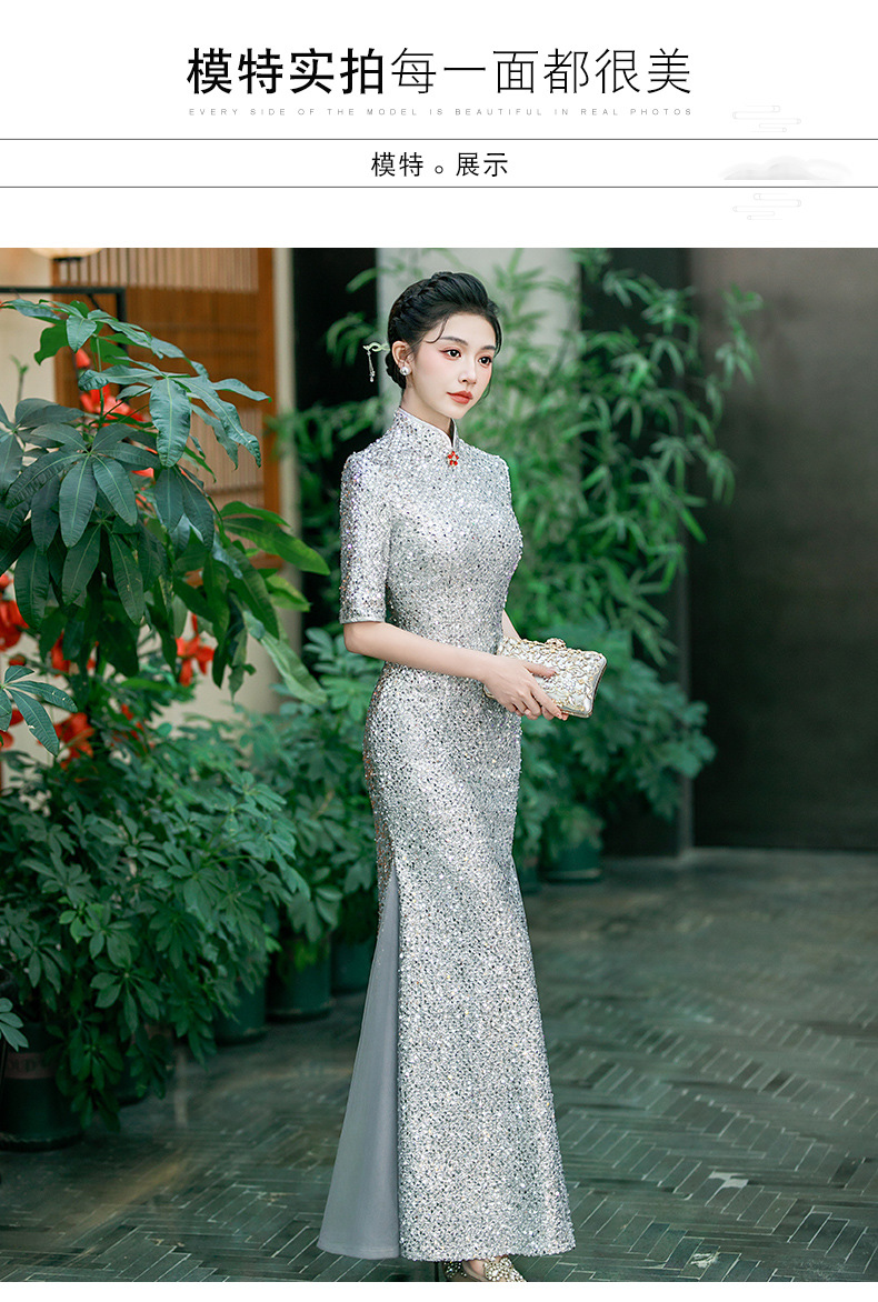 QC 188旗袍高端大气上档次亮片鱼尾