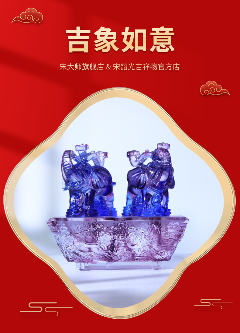 宋韶光大师 吉象如意 古法琉璃摆件礼品
