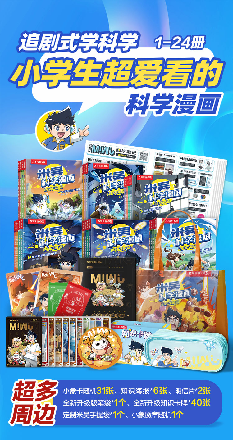 米吴科学漫画·奇妙万象篇 1-24册礼盒(新笔袋1、新知识卡片40张、徽章1、明信片2、赠品袋1)