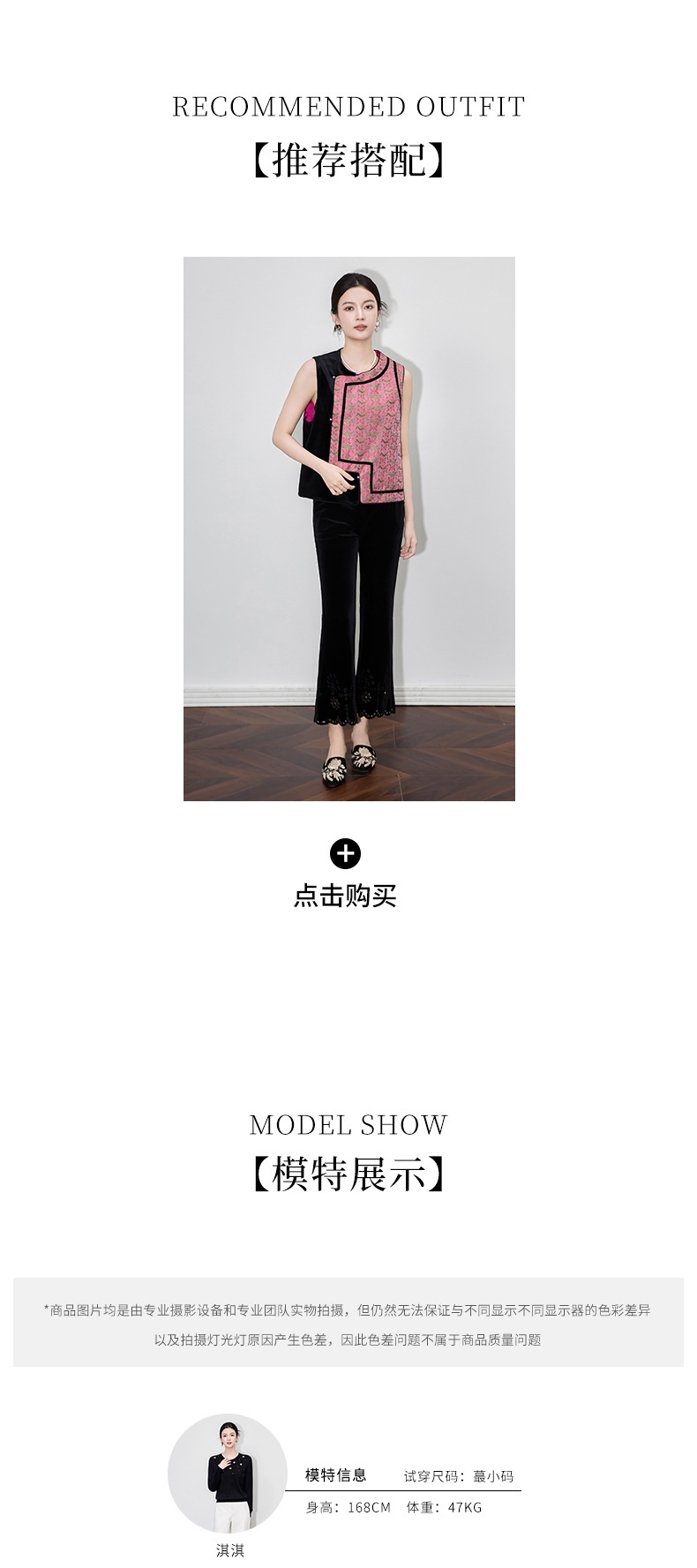 「高货wl」全新升级【铂金会员257/天猫339/差价82】(92804)洛诗琳设计感镂空丝绒微喇裤2025秋季气质高腰显瘦九分裤