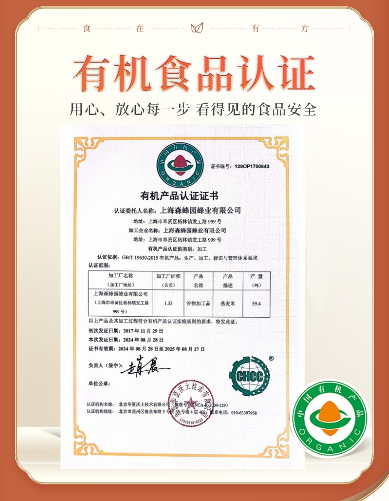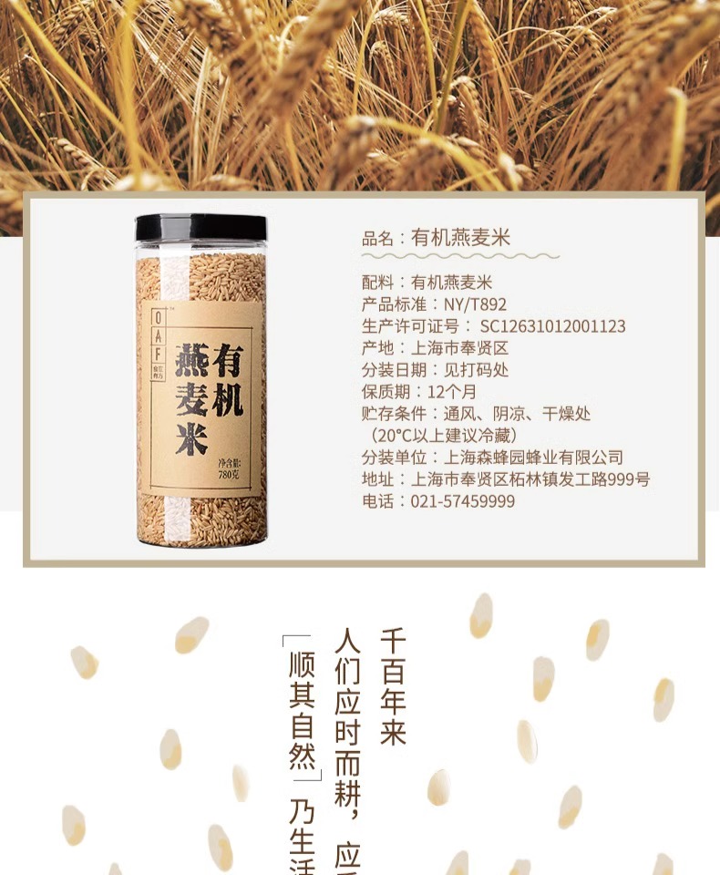 【新鲜市集】食在有方 有机燕麦米780g(保质期至2026年9月)