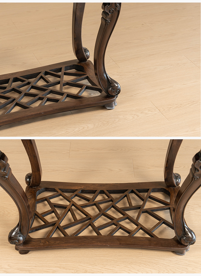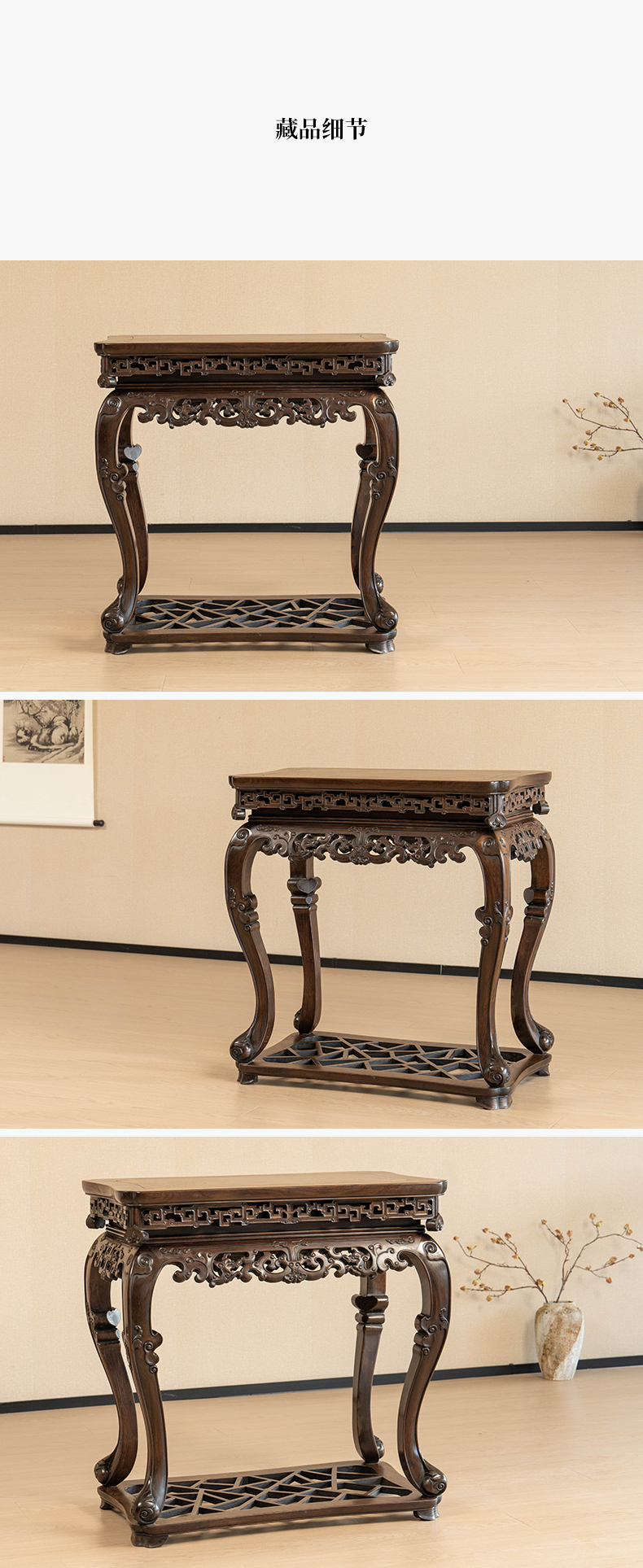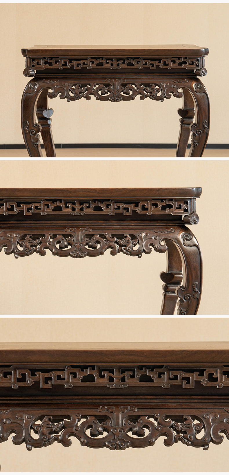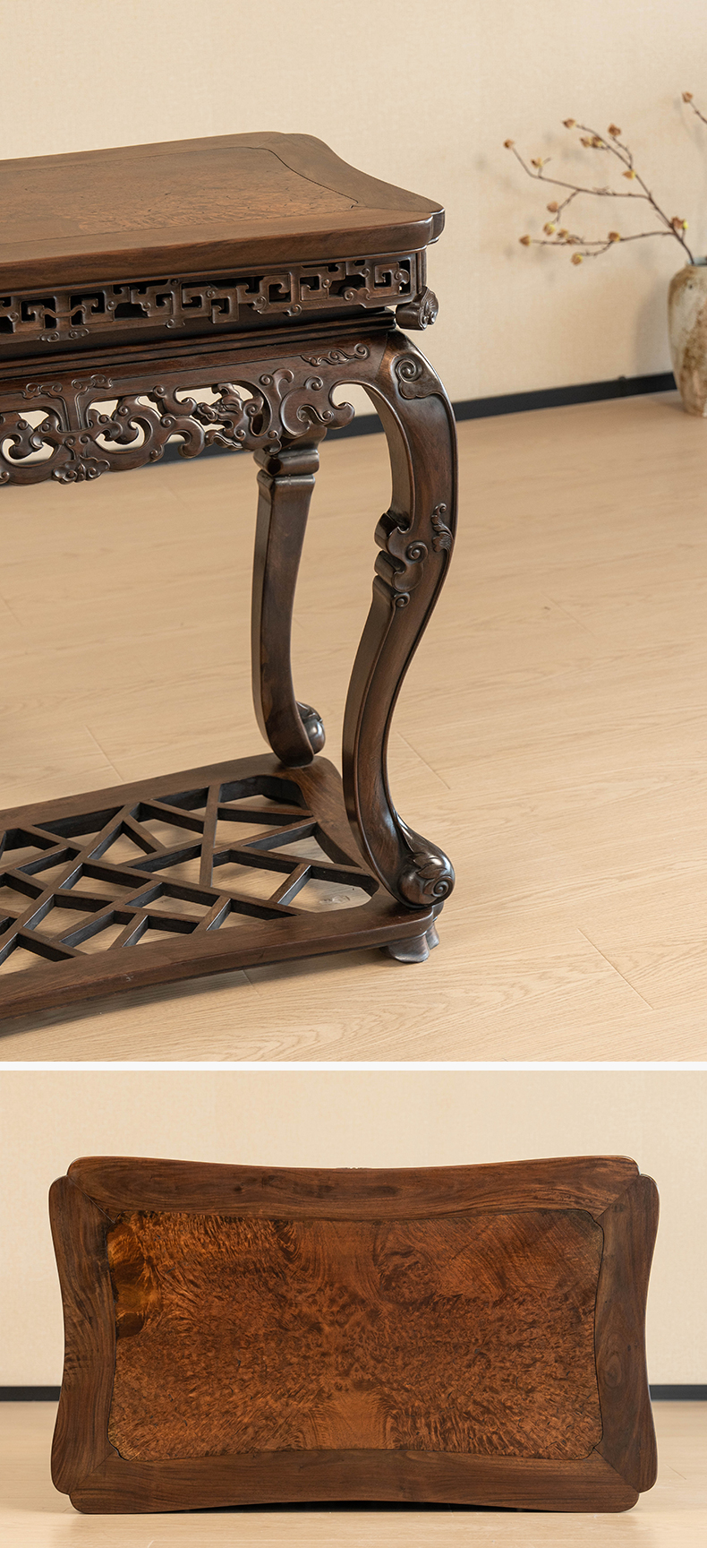 清 红木镶瘿木透雕螭龙纹三弯腿带托泥香几