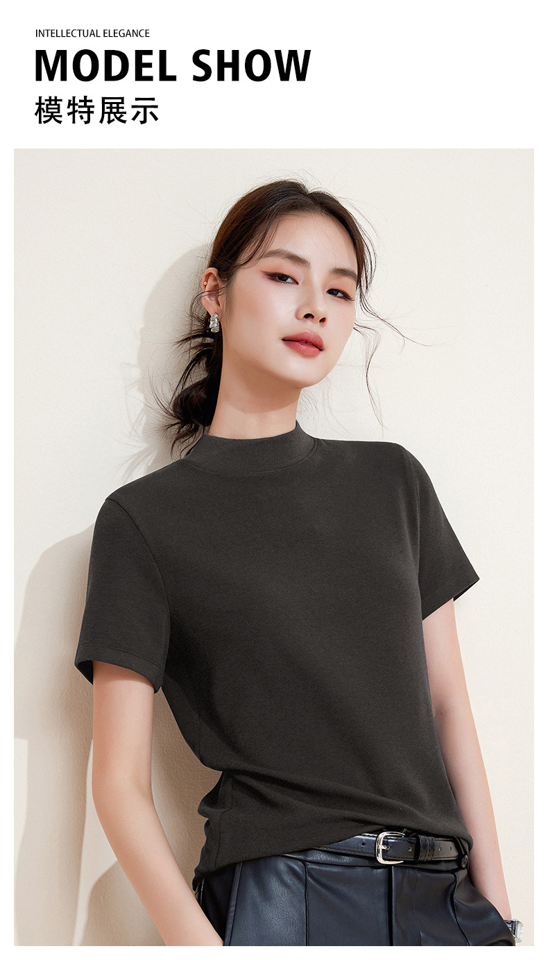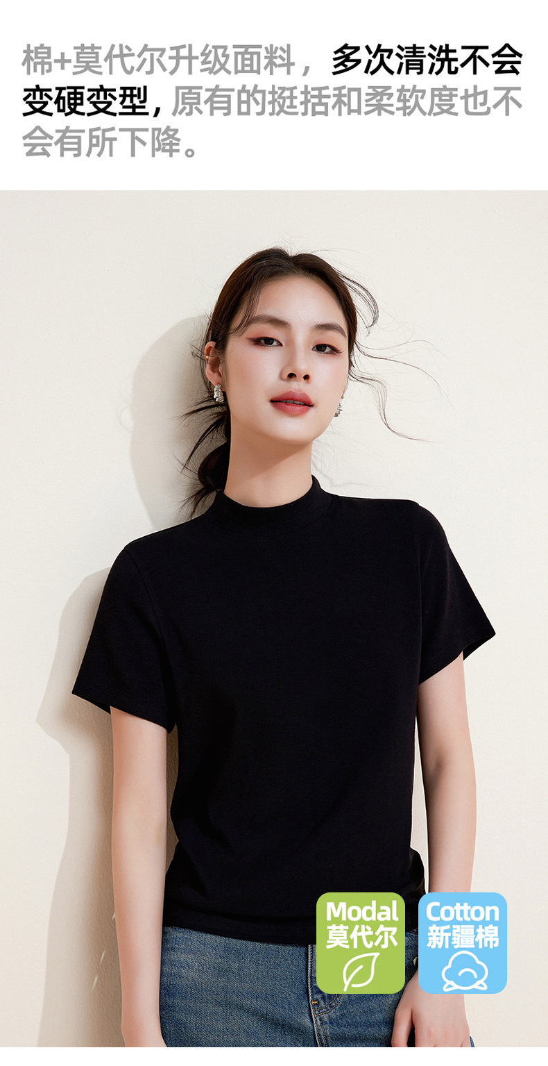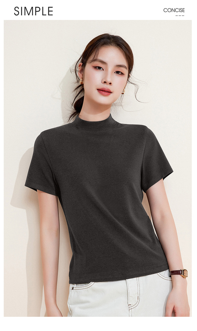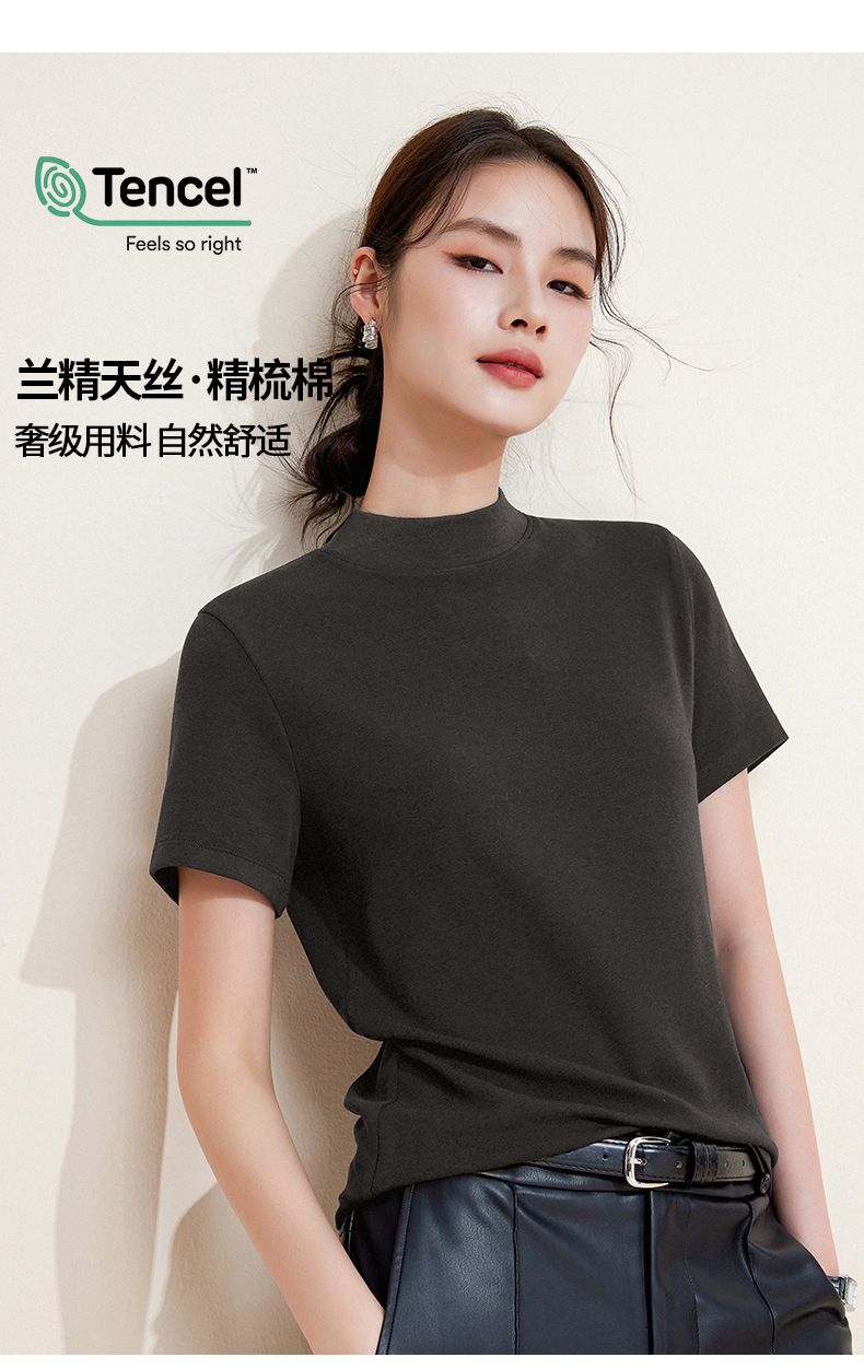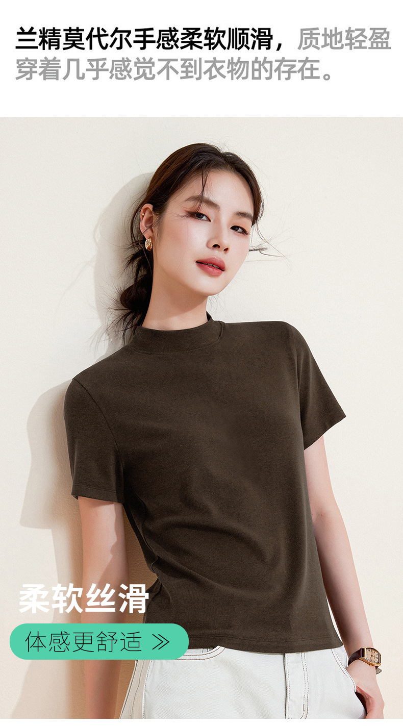 丁摩 【兰精天丝】短袖上衣女春季新莫代尔t恤气质简约中领打底衫6ZF-M935