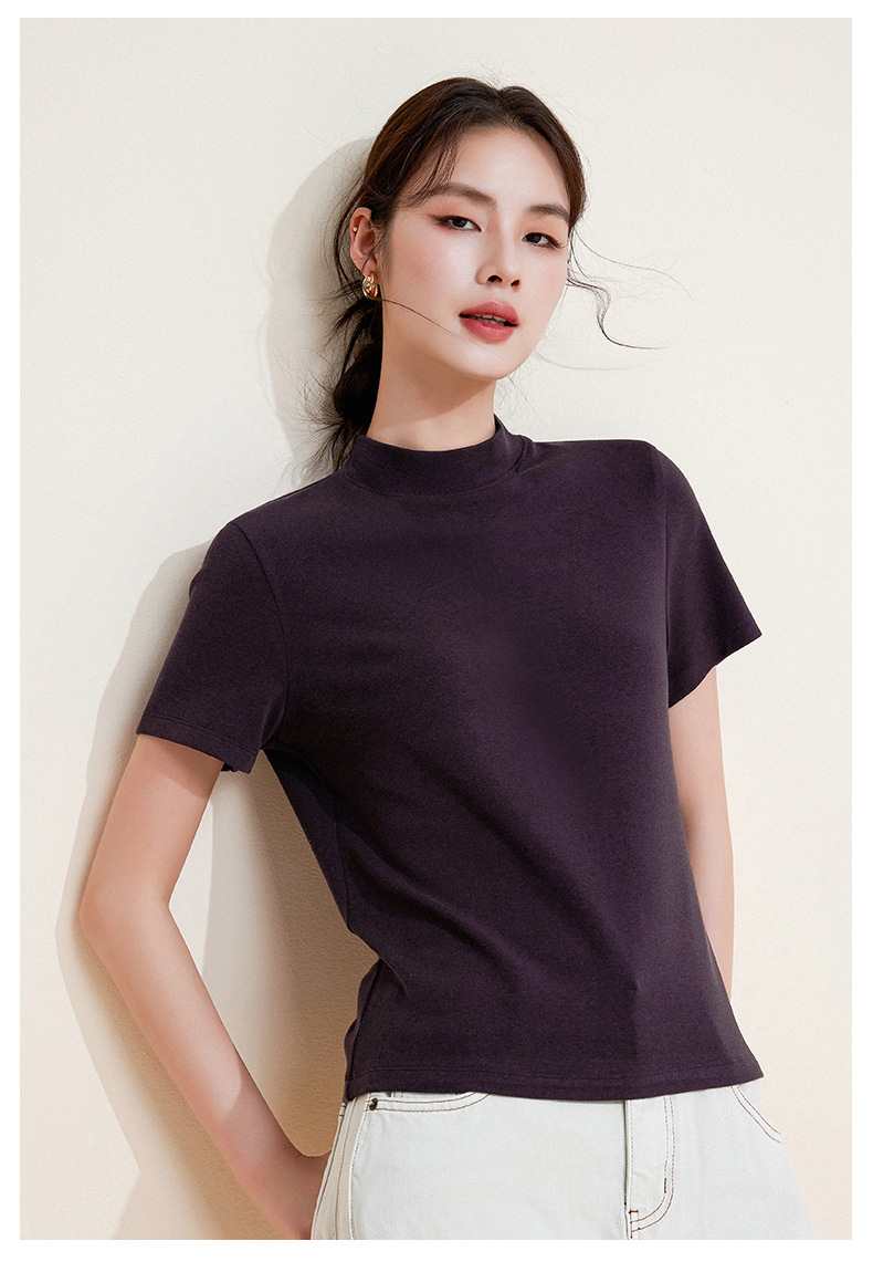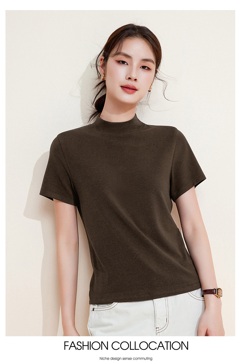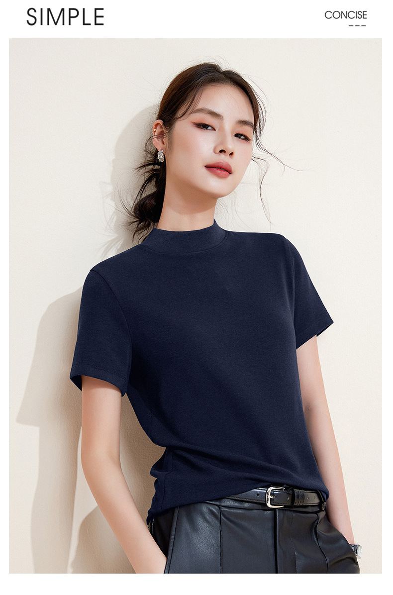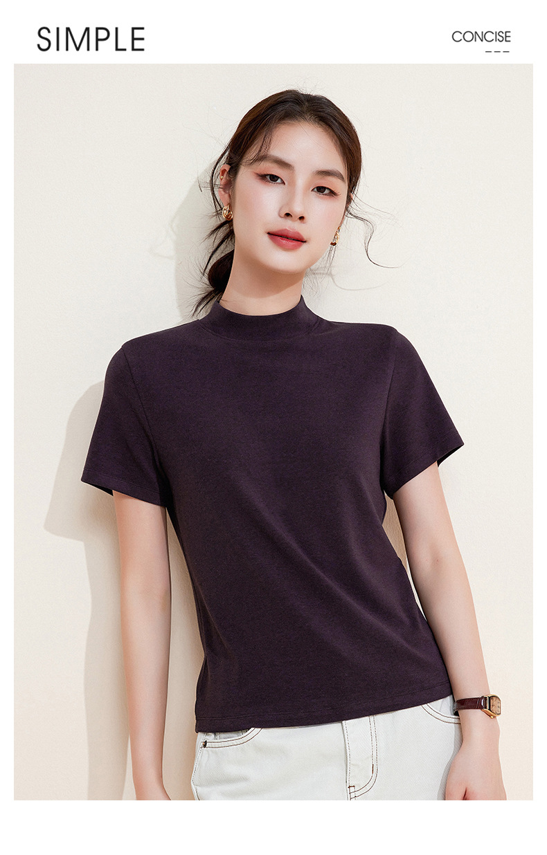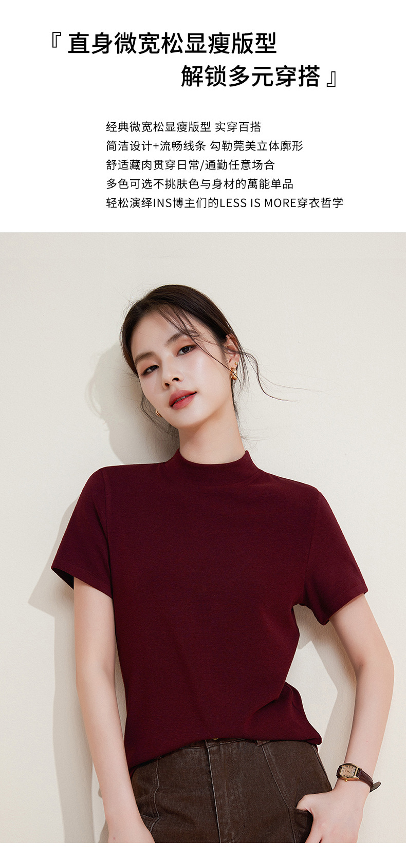 丁摩 【兰精天丝】短袖上衣女春季新莫代尔t恤气质简约中领打底衫6ZF-M935