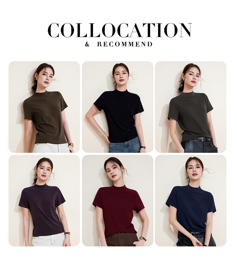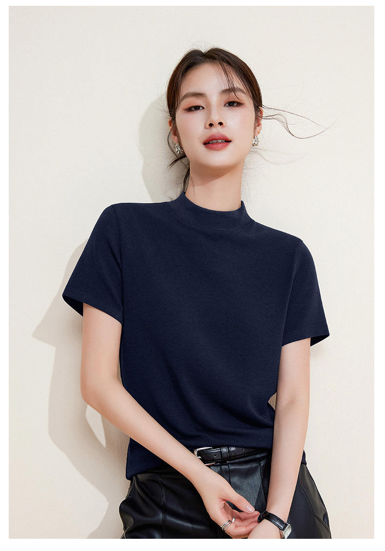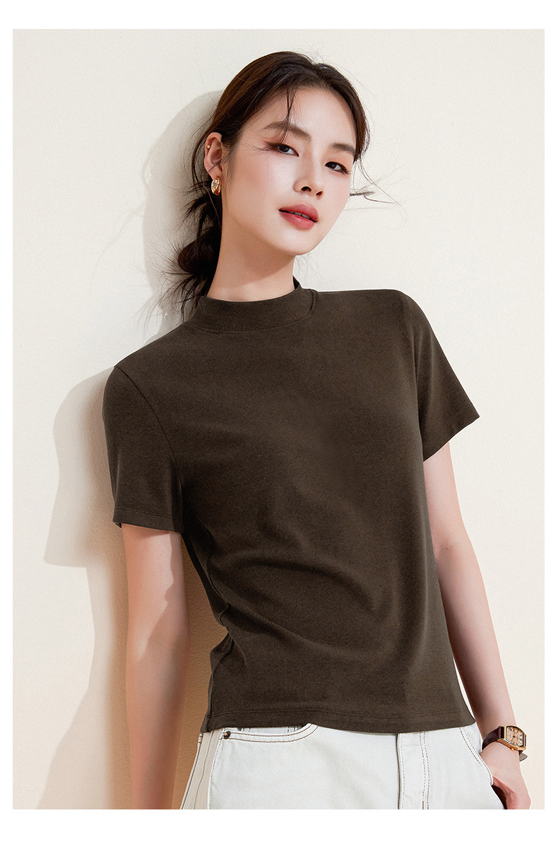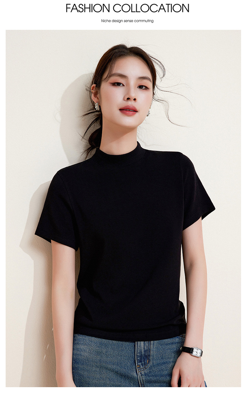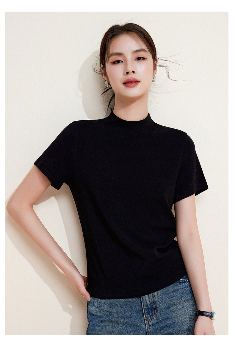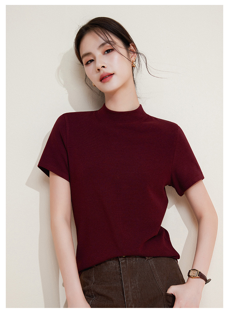 丁摩 【兰精天丝】短袖上衣女春季新莫代尔t恤气质简约中领打底衫6ZF-M935