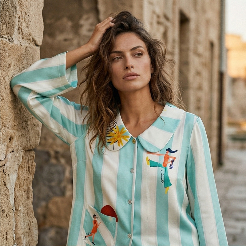 咕咕同款【晴屿Herbier Chic】/李兰迪·明星同款/SANGLUO热带岛睡衣套装桑蚕丝亲肤柔滑可外穿家居服春夏【19姆米素绉缎,100%桑蚕丝】03262815