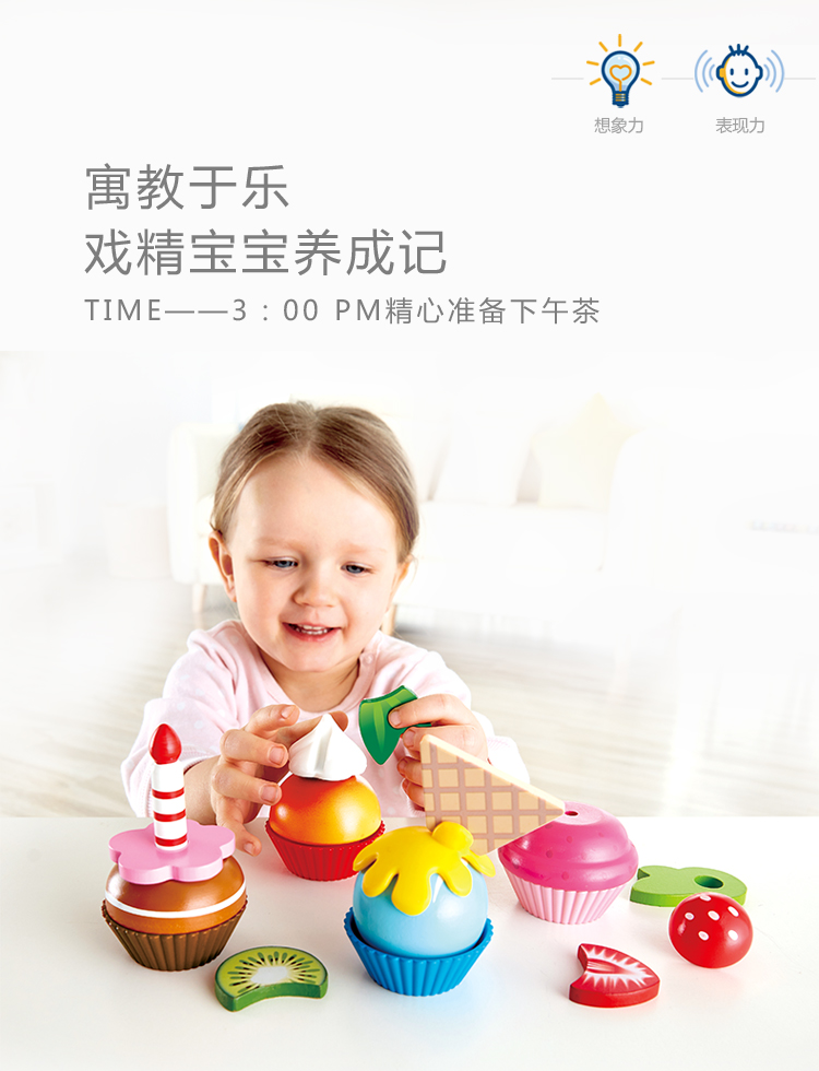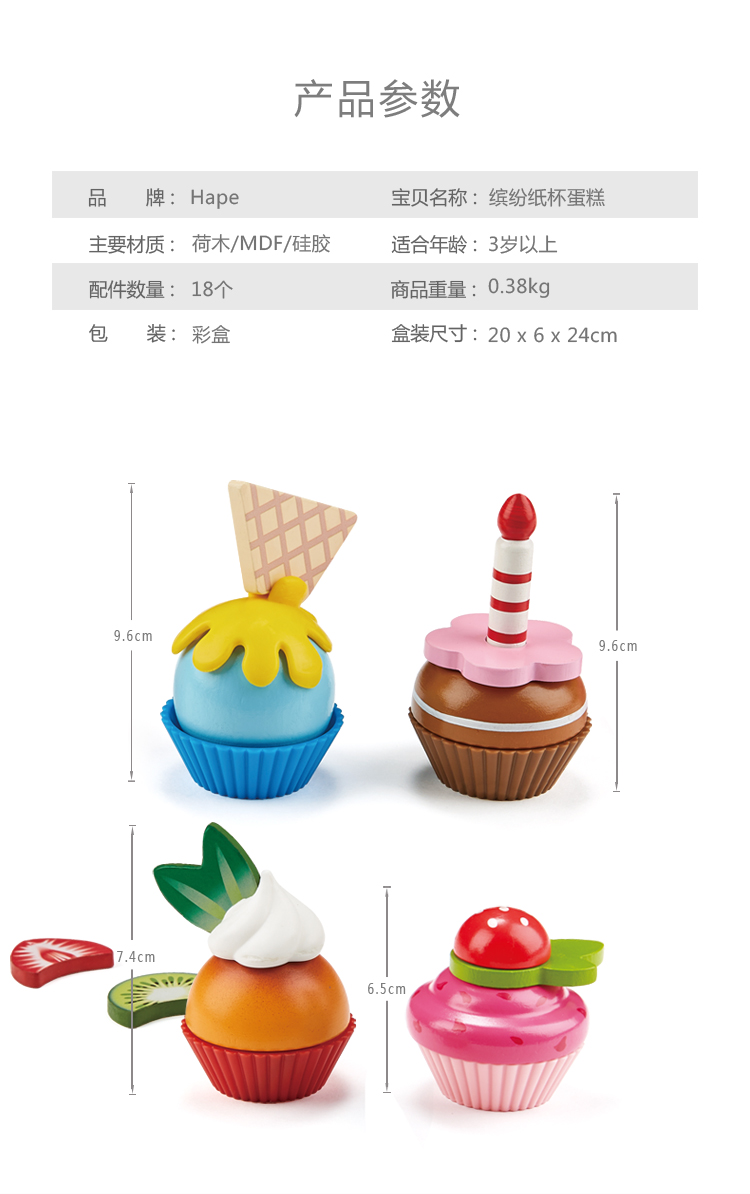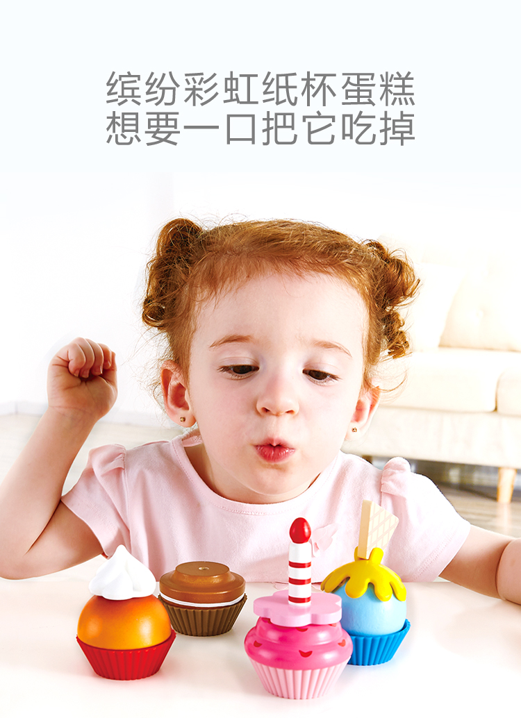 Hape过家家玩具 男孩女孩切切乐玩具小孩儿童礼物厨房做饭早教 E3157缤纷纸杯蛋糕