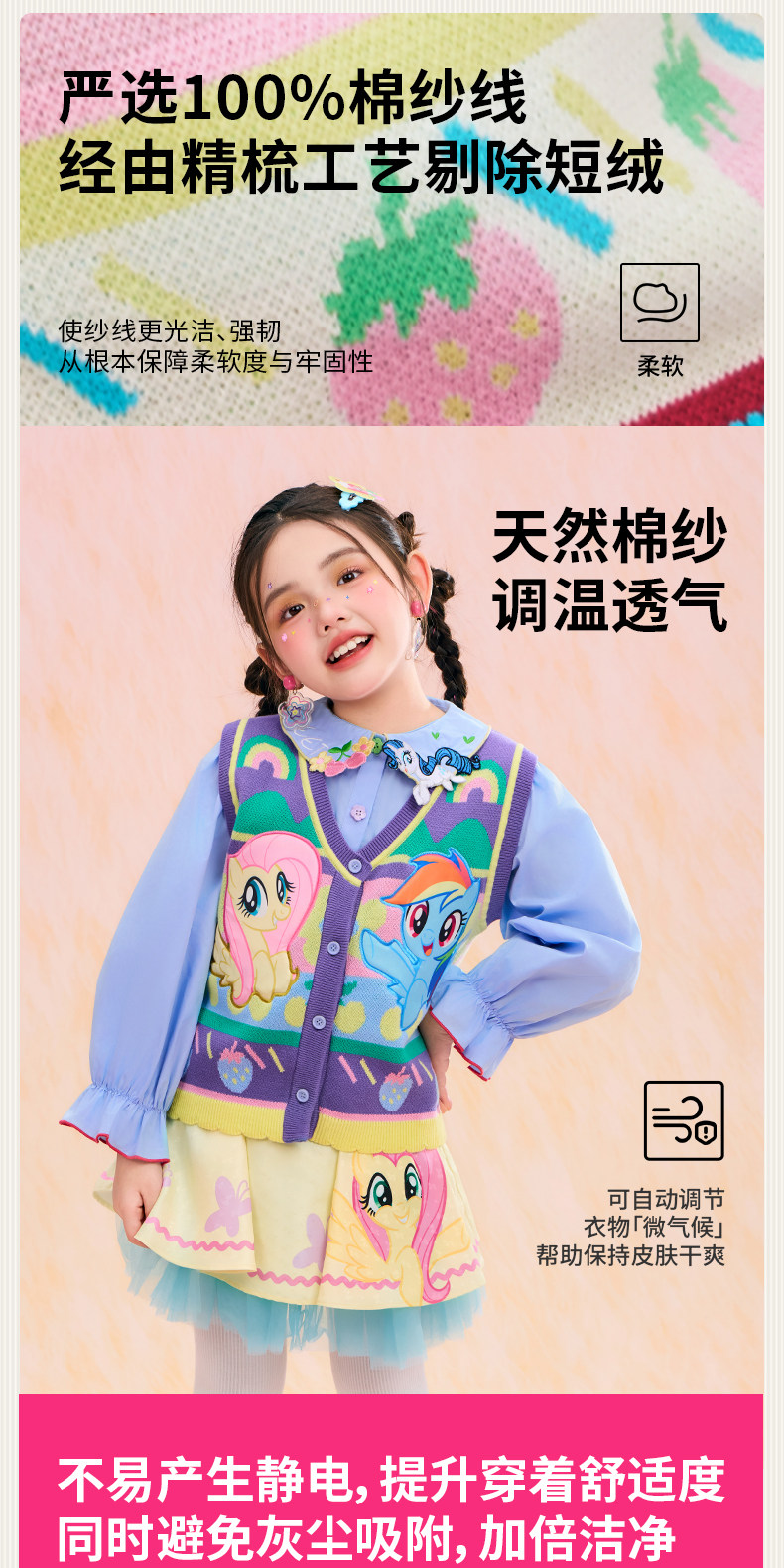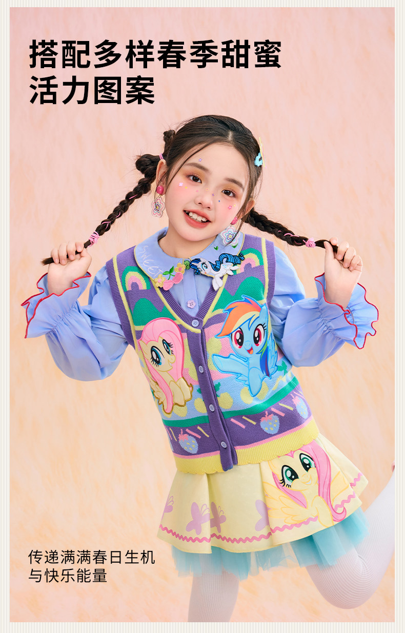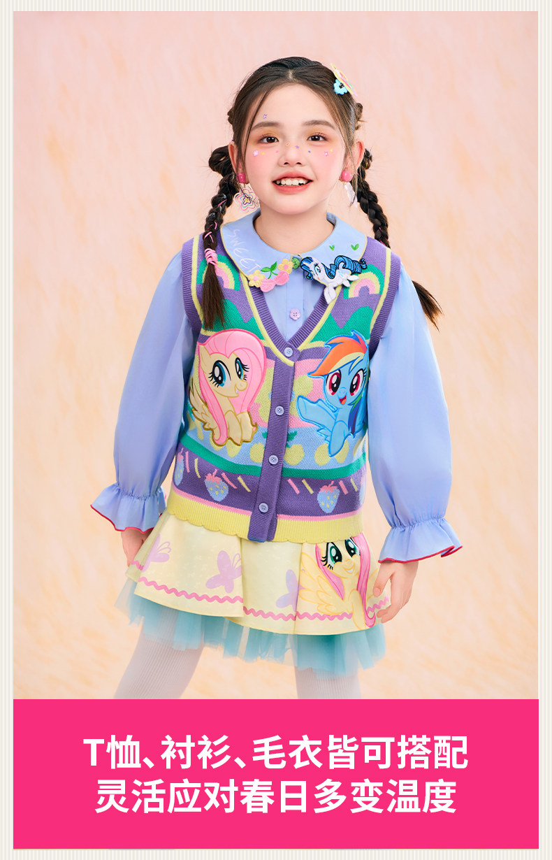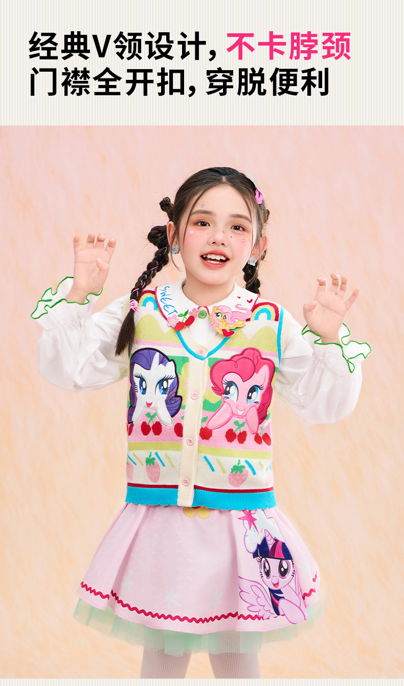 小马宝莉联名年衣童装针织马甲春季新款女童小马宝莉春季多彩马甲N1261010A05