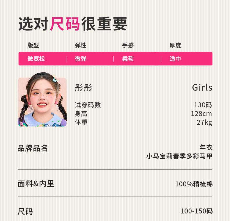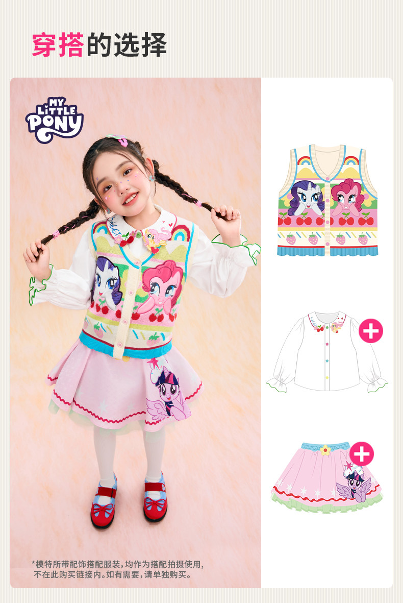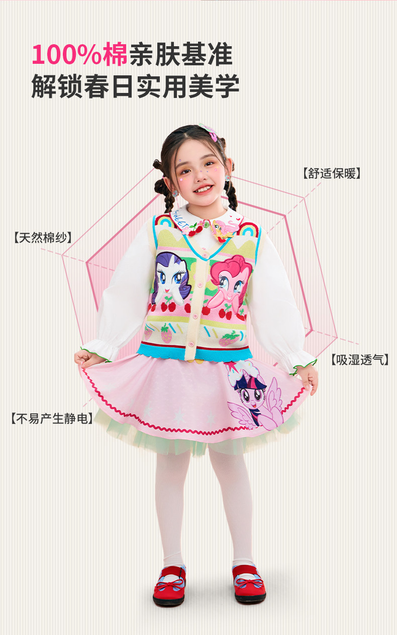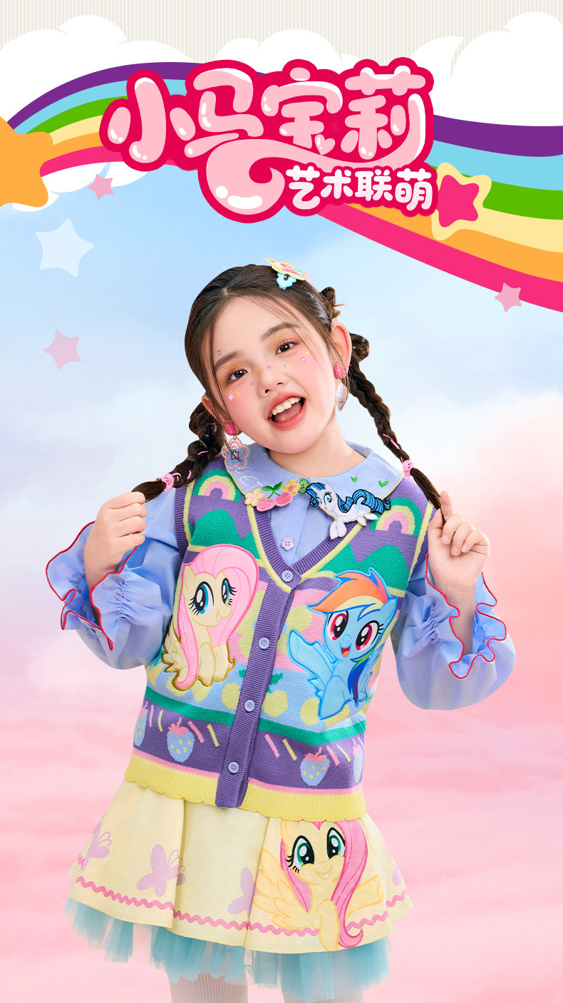 小马宝莉联名年衣童装针织马甲春季新款女童小马宝莉春季多彩马甲N1261010A05