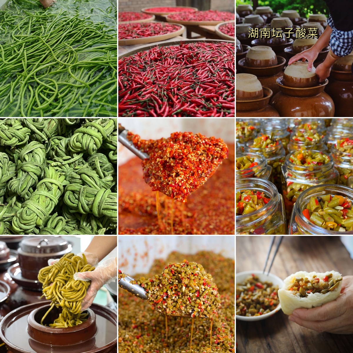 精选本地当季的新鲜豆角——用清水人工手洗豆角——切除豆角头部和尾部——洗净清理后自然晾晒至6成干——再进行手工捆绑——入坛密封——自然发酵30天,自然成黄成酸——取出坛香四溢!