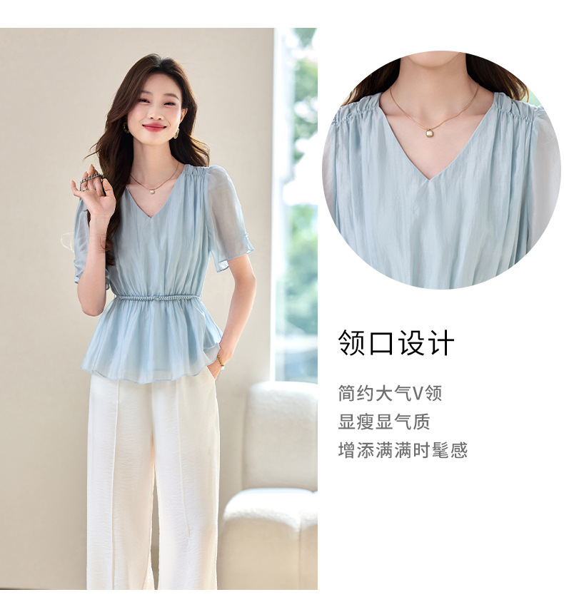 气质V领收腰显瘦衬衫,百搭时尚两件套HR-X780