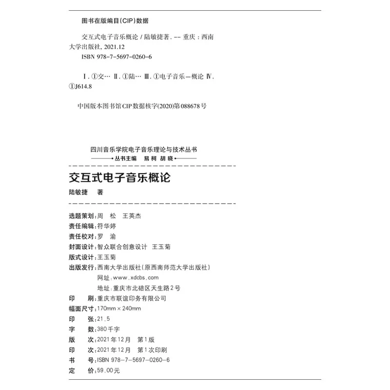 *书名:交互式电子音乐概论 | *ISBN:978-7-5697-0260-6 |