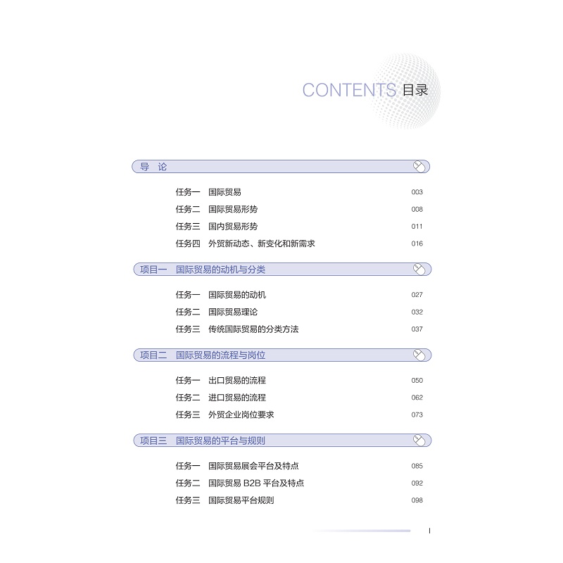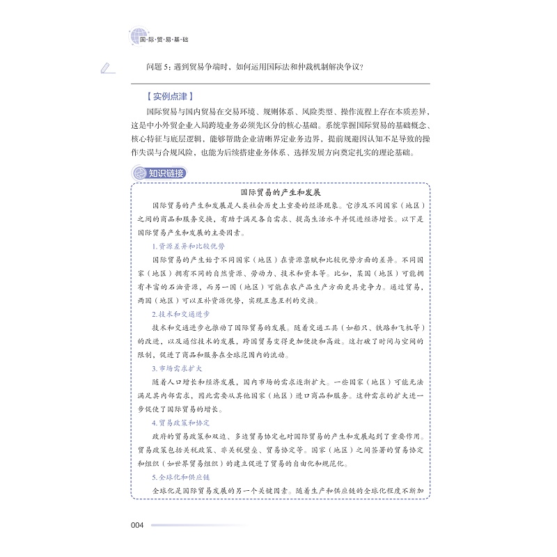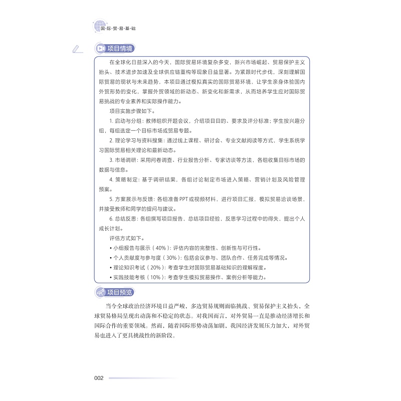 “国际贸易基础”是高职高专类院校、国际贸易实务、国际经济与贸易及国际商务专业的专业大类课程,教材编写紧跟时代步伐,将我国的上海等自由贸易试验区、跨境电子商务、市场采购贸易等资料加入到教材内容中。每一个模块又分为任务导入、知识链接、操作示范、实训演练和模块练习五个环节,坚持理论够用及为实践服务的原则,以务实为特色,适合于高职高专国际贸易实务、国际商务及相关专业的高素质技术技能性人才的培养。教材搭建了国际贸易职业准备所需知识能力架构,适合高职高专国际贸易专业以及经济管理类专业公共基础课教学使用