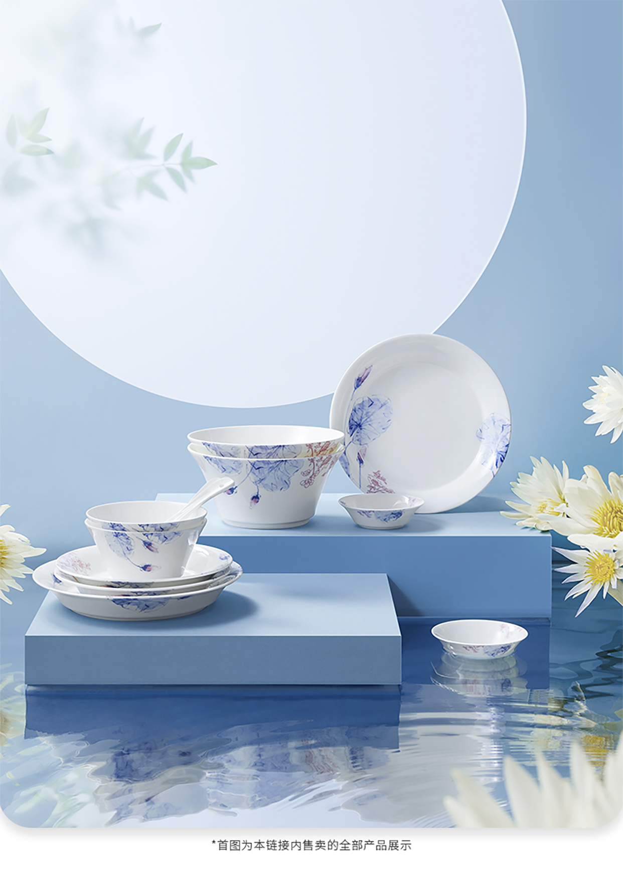 【玛戈隆特】特荷莲盛宴2人食骨瓷中式家用餐具套装碗盘碟组合礼盒包装